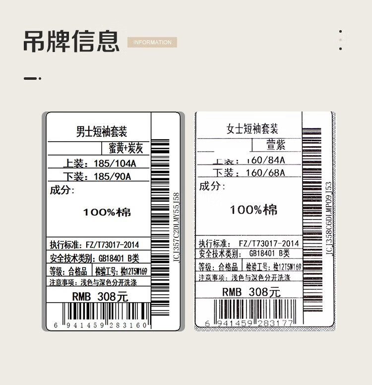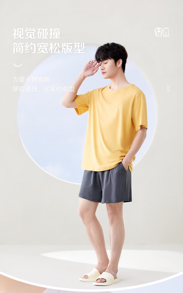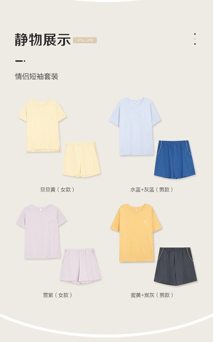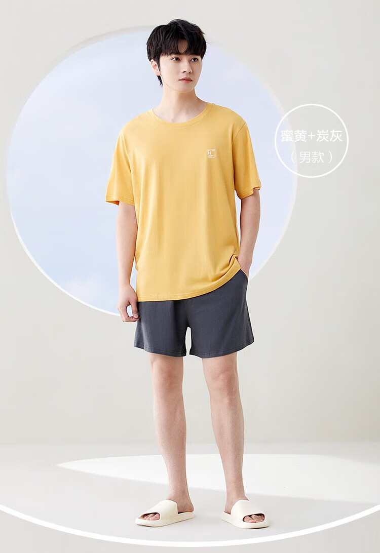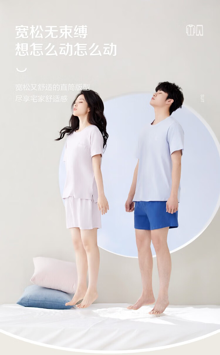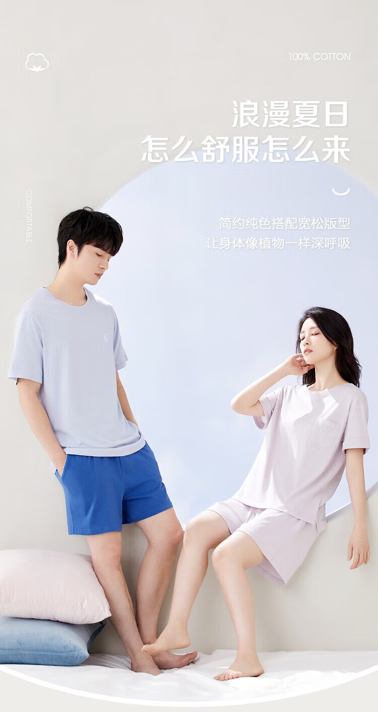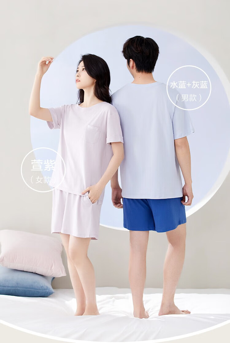 红豆男女士睡衣全棉可外穿情侣夏款短袖宽松家居宽松套装 男士水蓝+灰蓝 L 170/92A