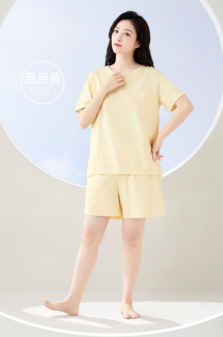 tutuanna春夏睡衣女 带胸垫一体杯纯色短袖短裤透气家居服套装女 【开衫款】蓝色 M (适合身高160-165cm)