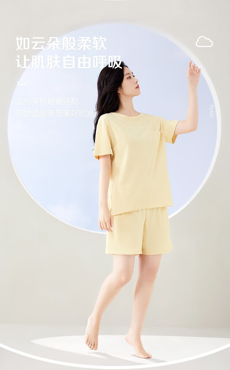 tutuanna春夏睡衣女带胸垫一体杯纯色短袖短裤透气家居服套装女 【开衫款】浅紫色 S (适合身高150-160cm)