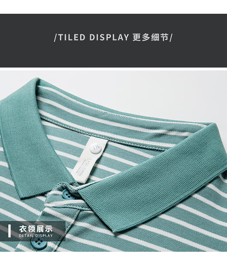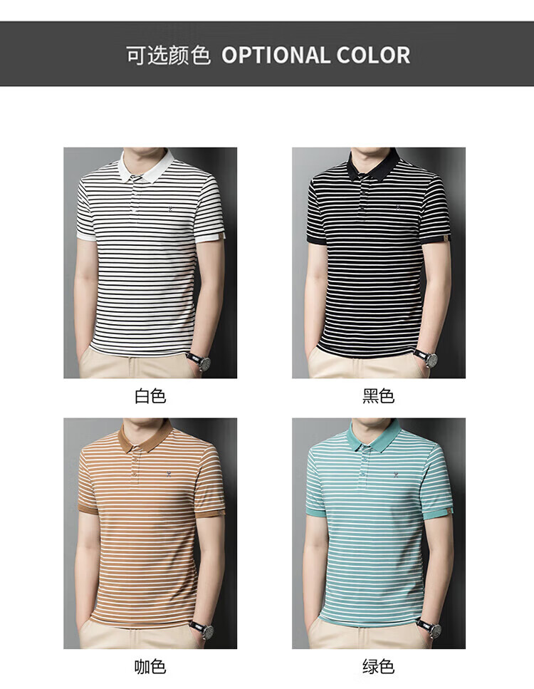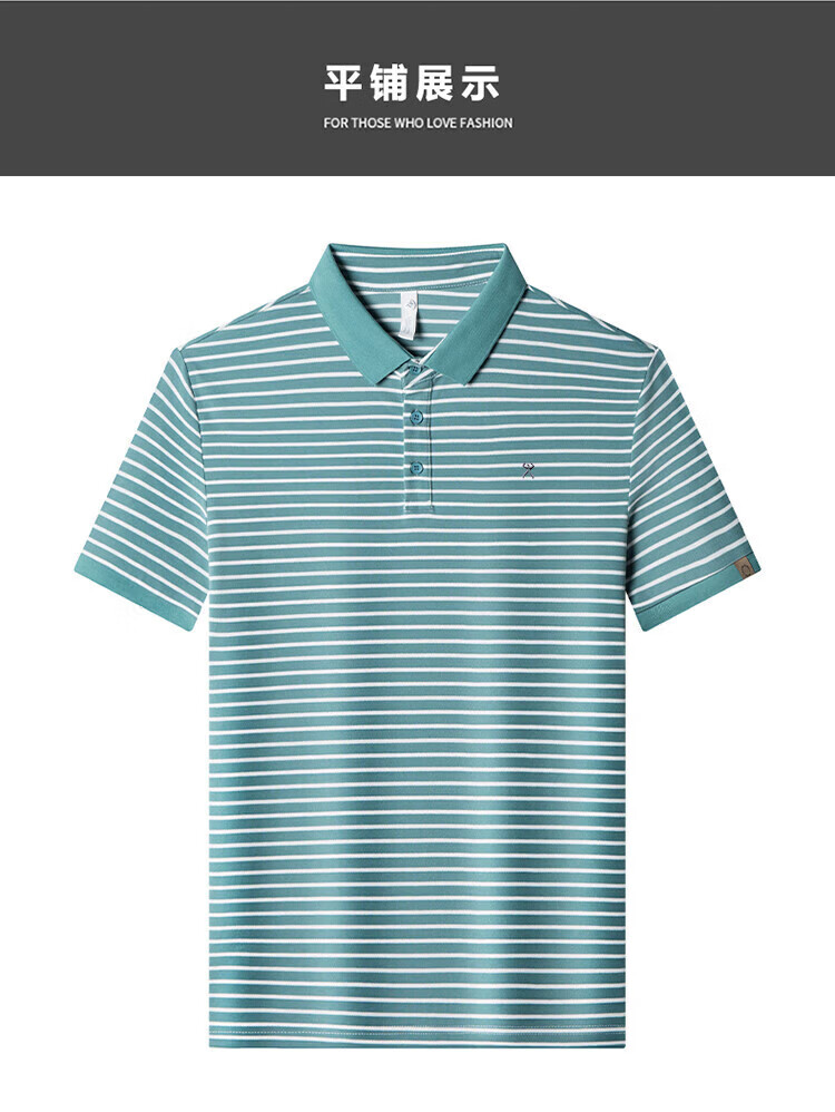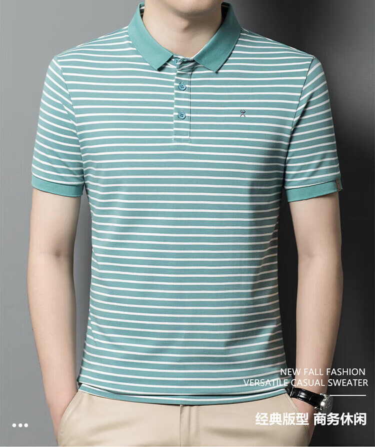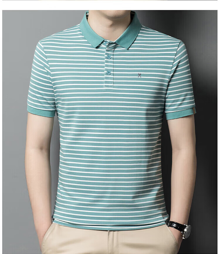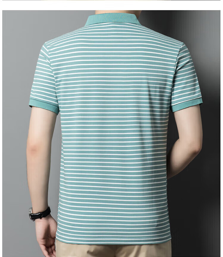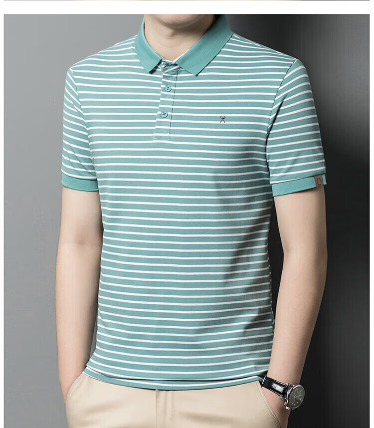 KBXNG劲霸官方旗舰高端纯棉短袖男t恤夏季新款拼色条纹中年休闲翻领T 绿色 3XL 190/100A 建议195-210斤