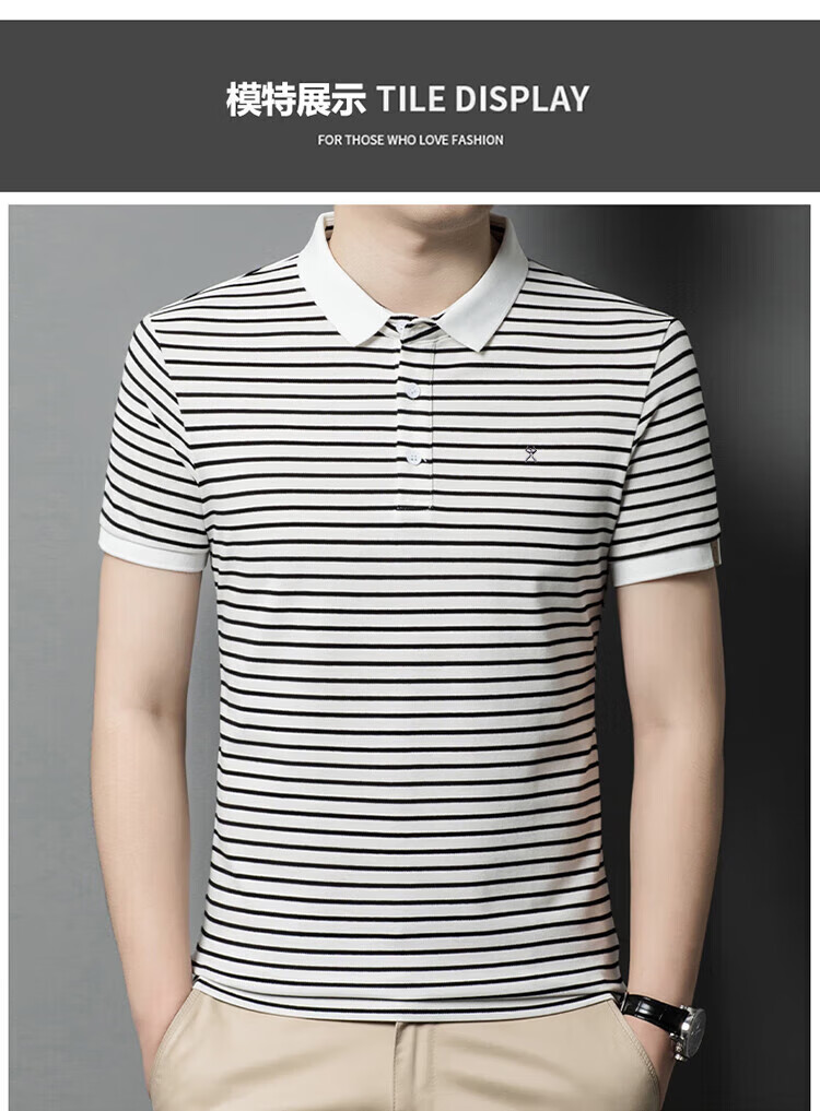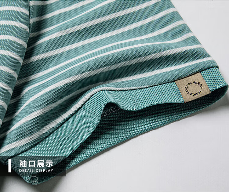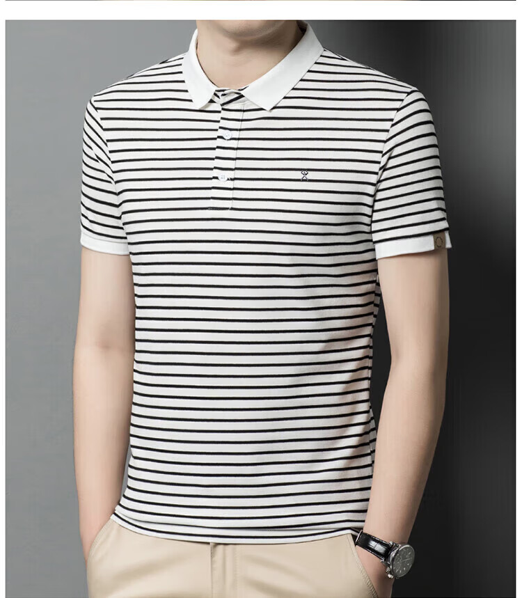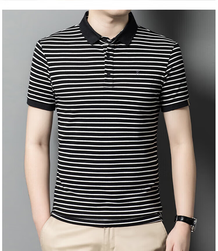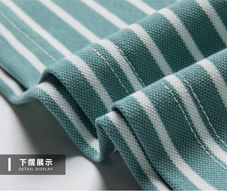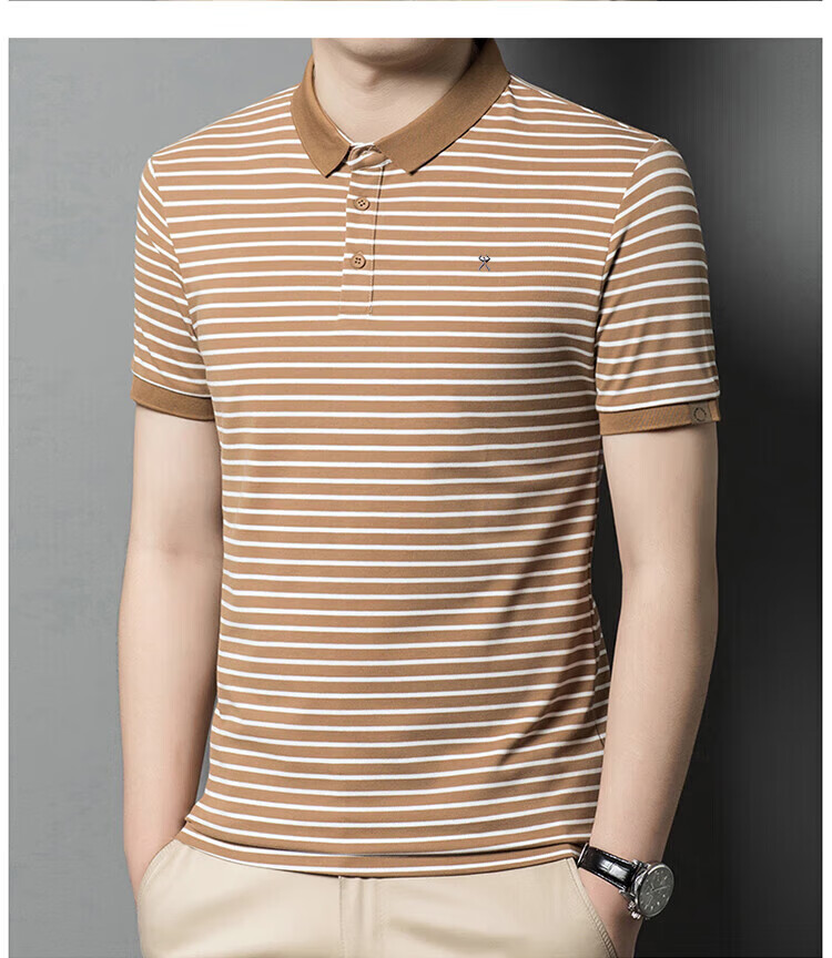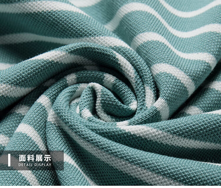 KBXNG劲霸官方旗舰高端纯棉短袖男t恤夏季新款拼色条纹中年休闲翻领T 绿色 3XL 190/100A 建议195-210斤