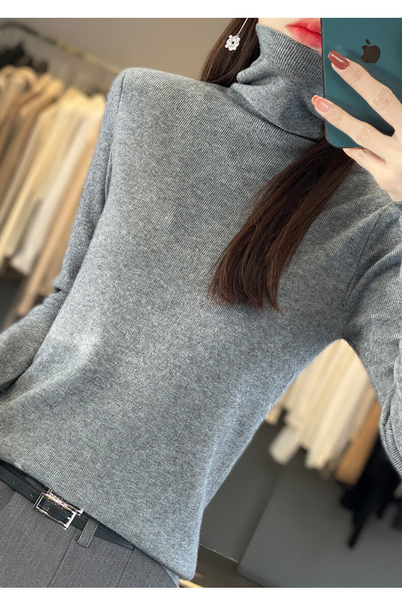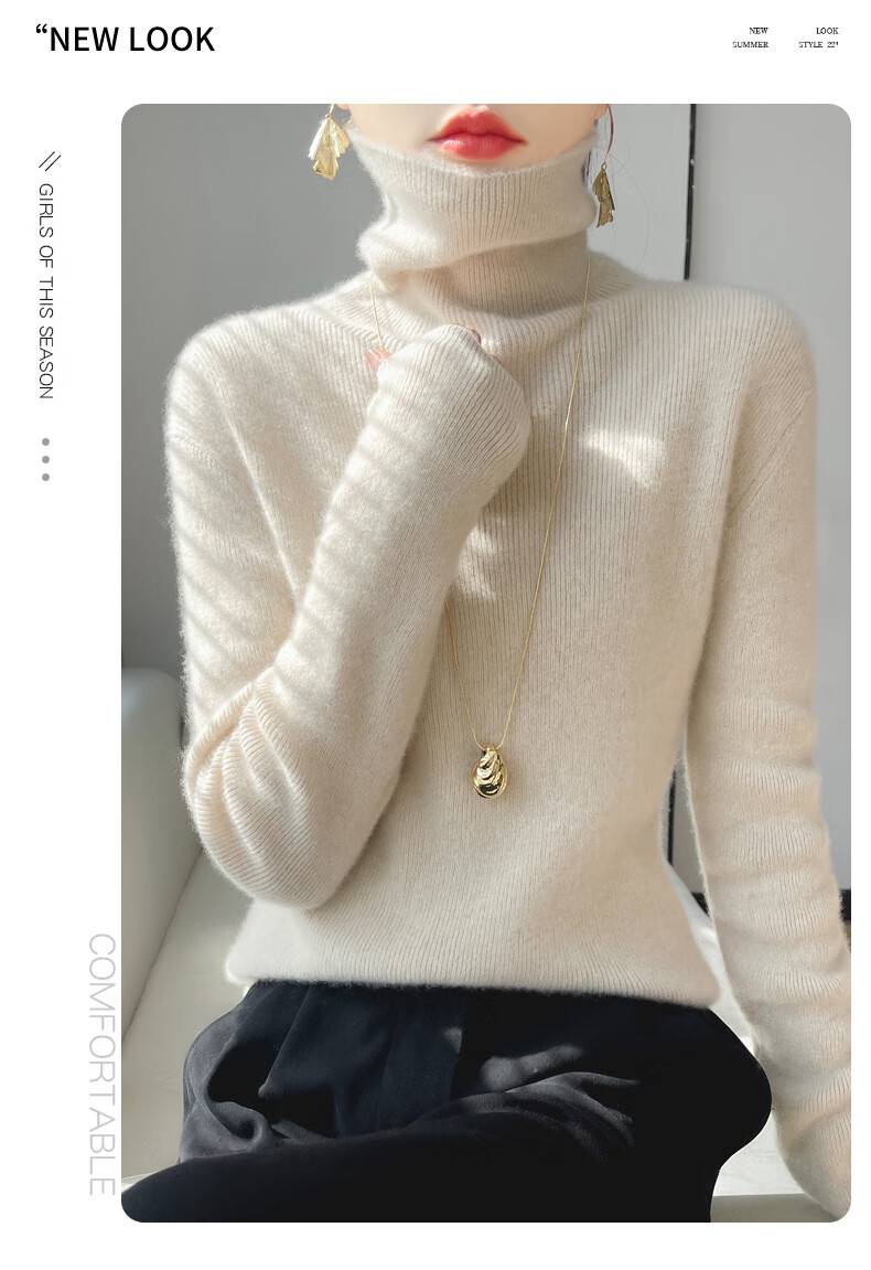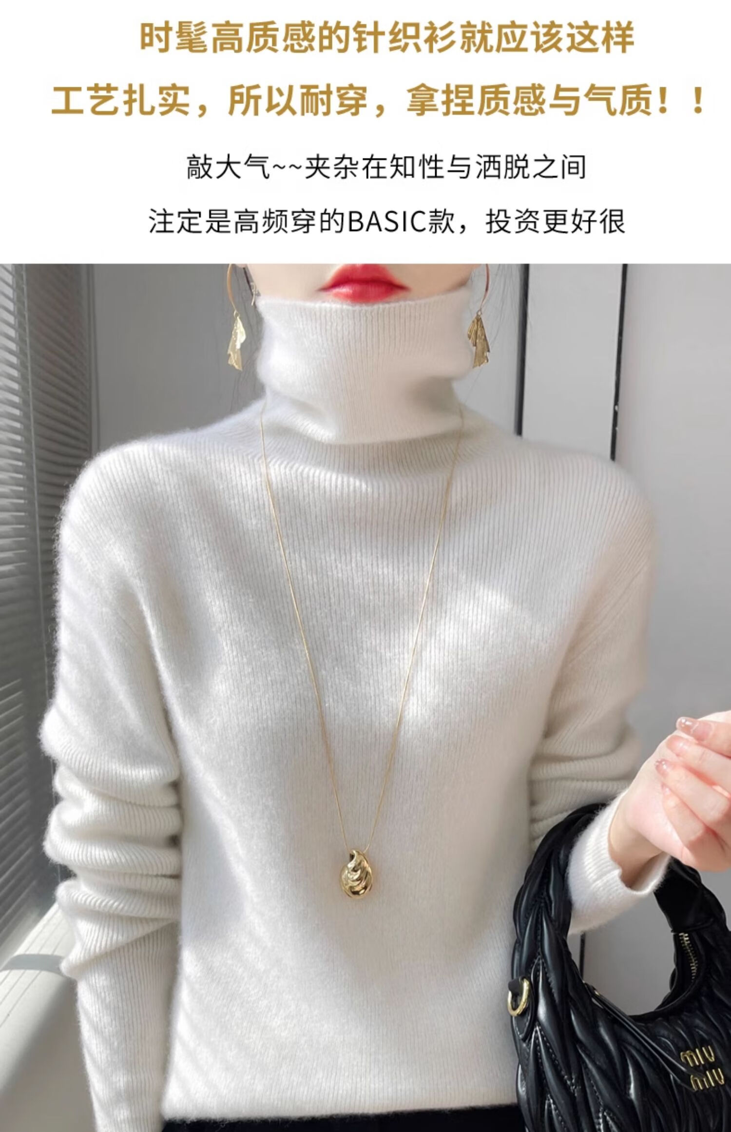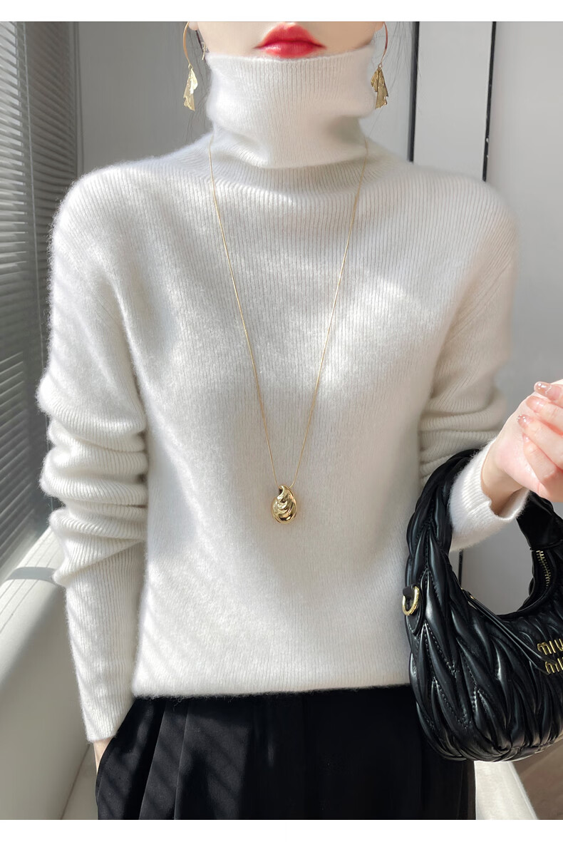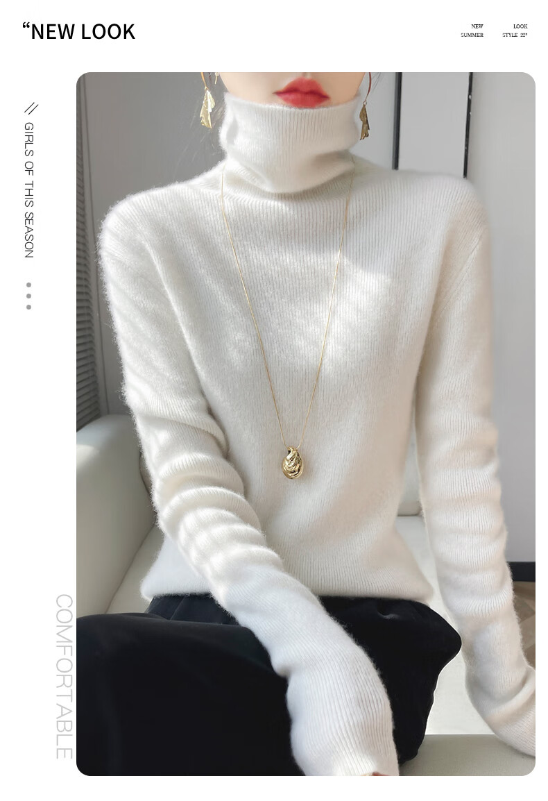 香影芬秋冬高领套头毛衣女2025新款高级感一线成衣堆堆领内搭加厚打底衫 白色 XL (建议115-125斤)