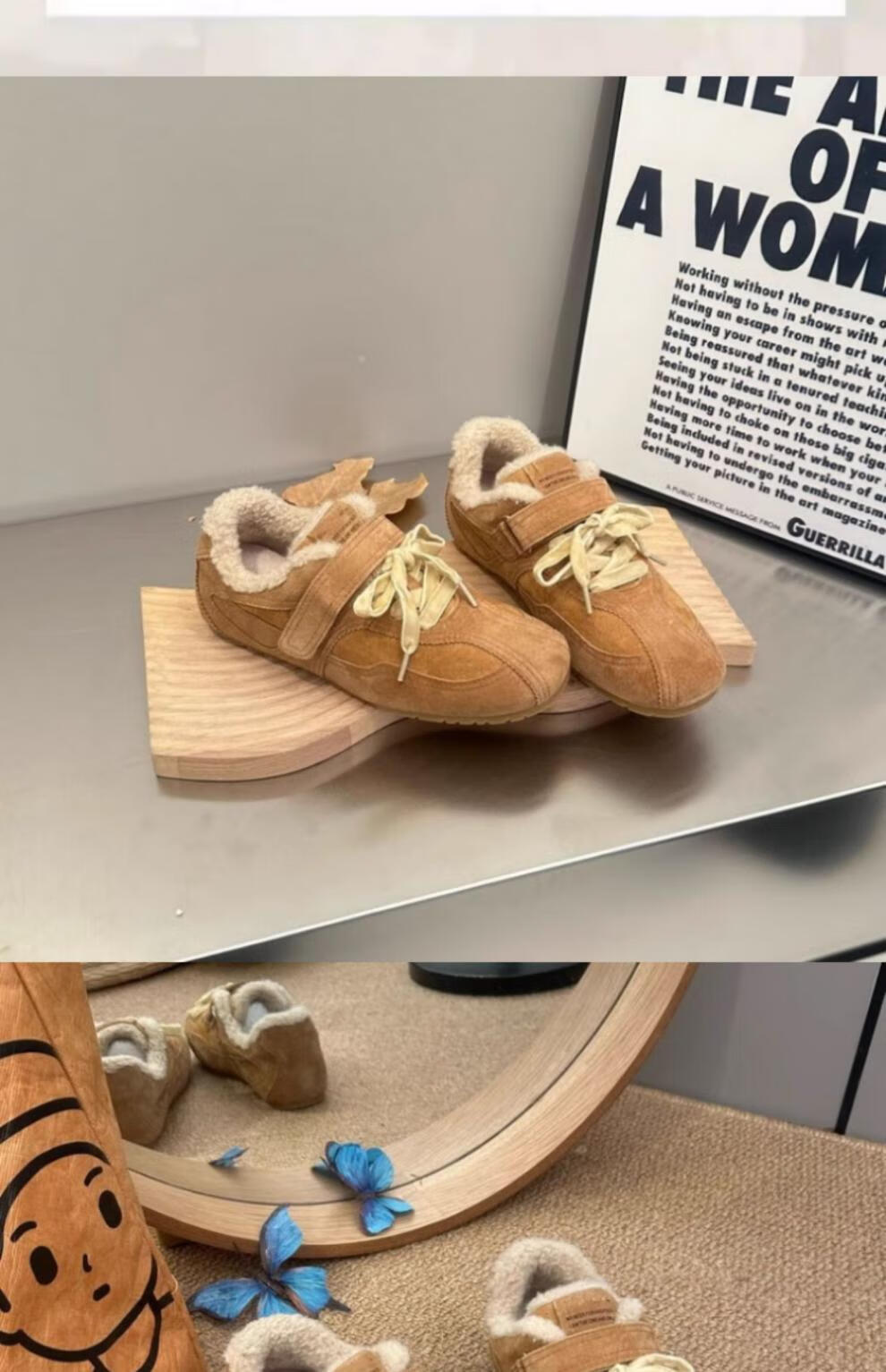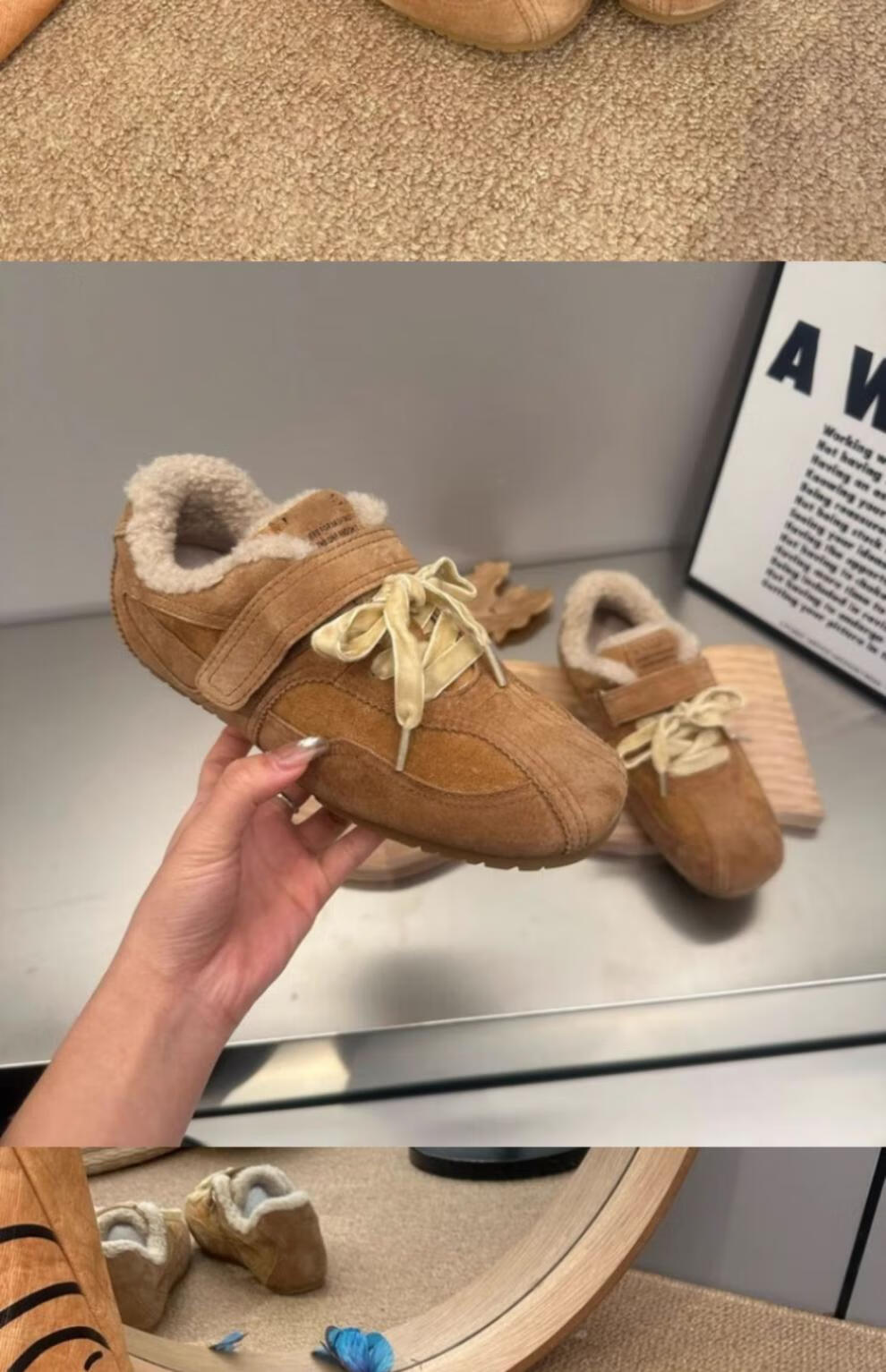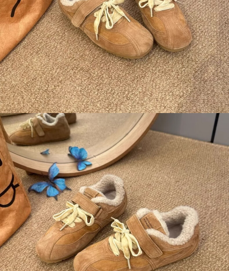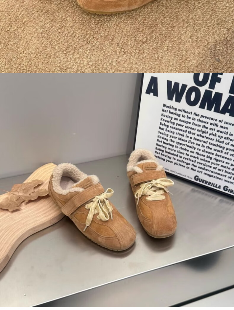 稻草人(MEXICAN)复古平底加绒德训鞋女2026冬季新款魔术贴毛毛鞋勃肯鞋保暖棉鞋子 驼色升级版 35