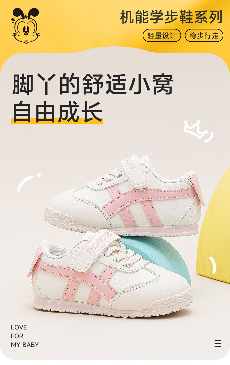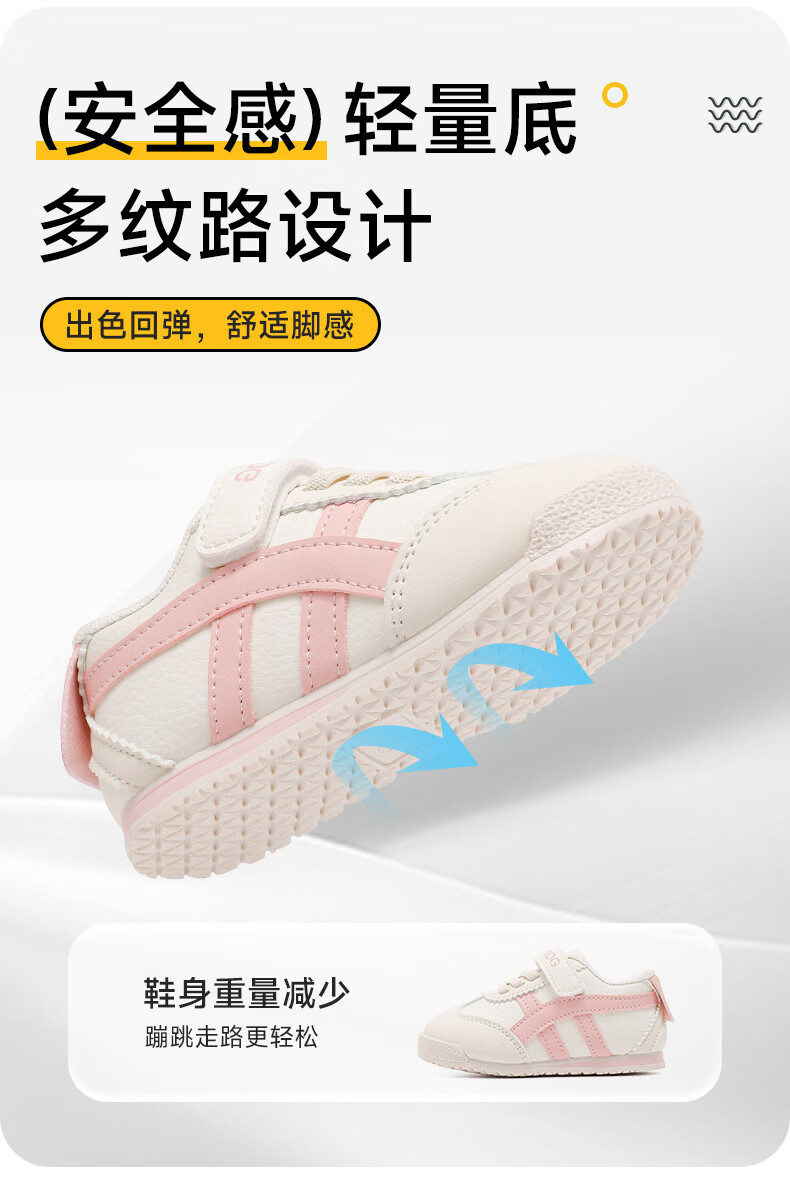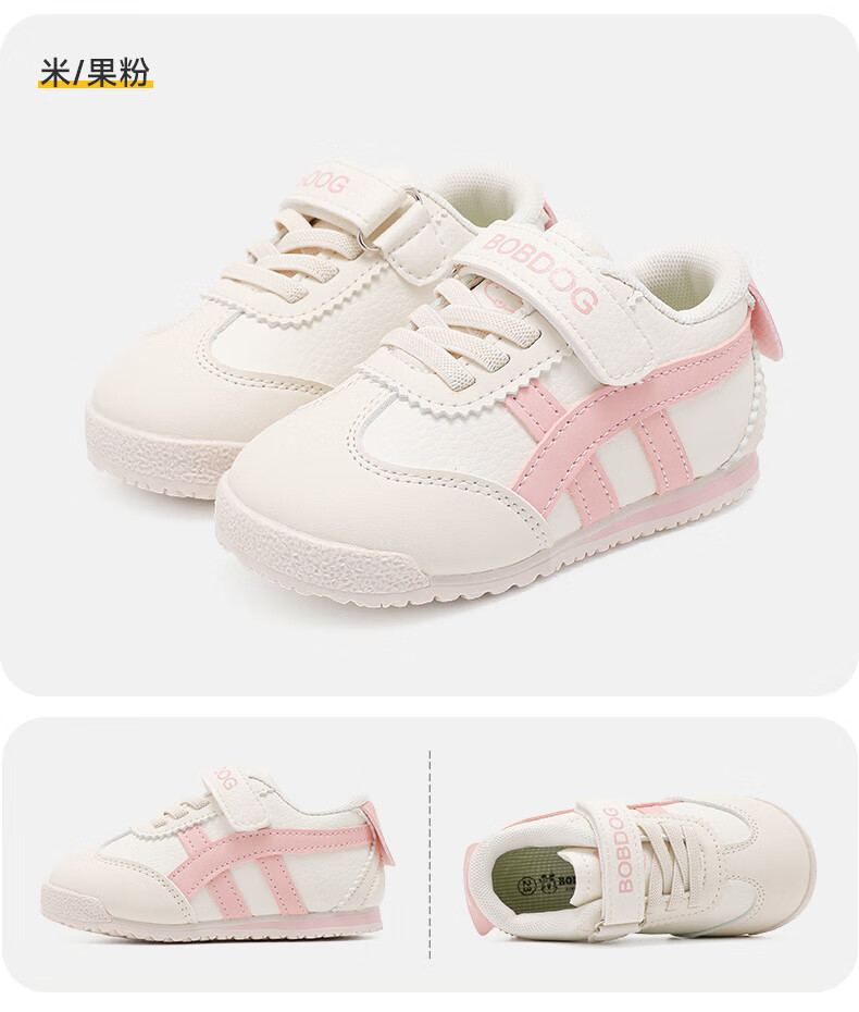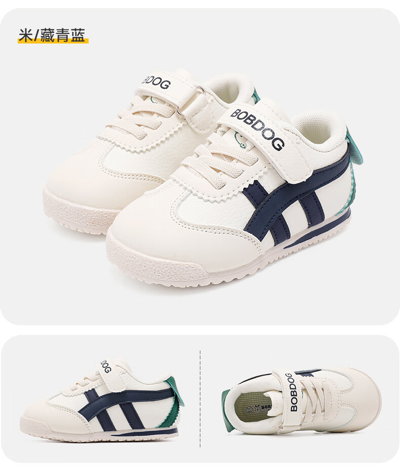 巴布豆童鞋秋季男宝宝儿童学步鞋软底轻便2025新款女童机能鞋 米/藏青蓝 28 适合脚长16.6cm