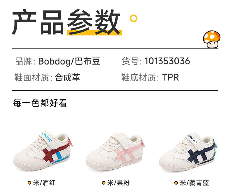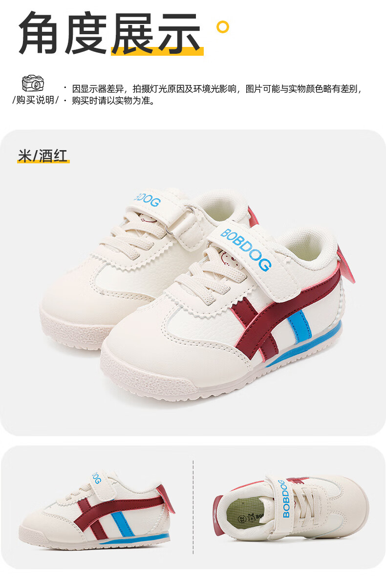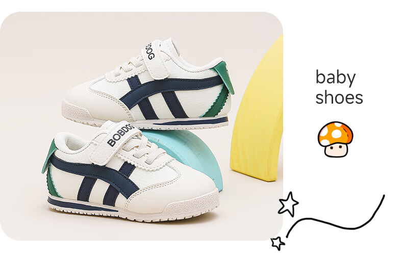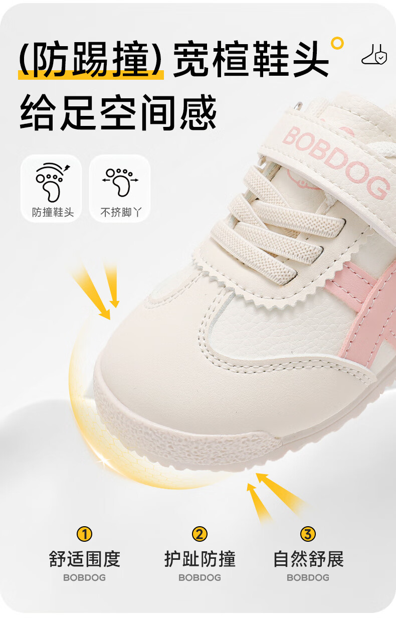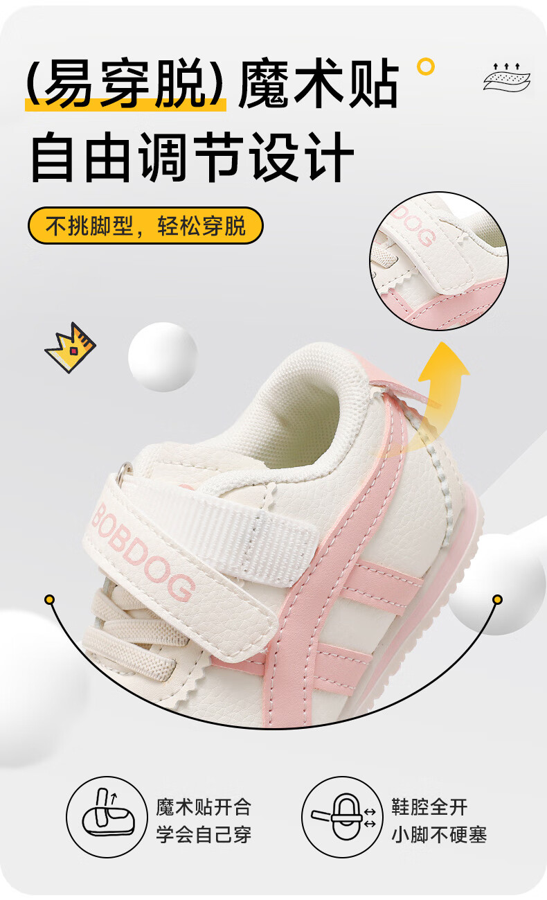 巴布豆童鞋秋季男宝宝儿童学步鞋软底轻便2025新款女童机能鞋 米/藏青蓝 28 适合脚长16.6cm