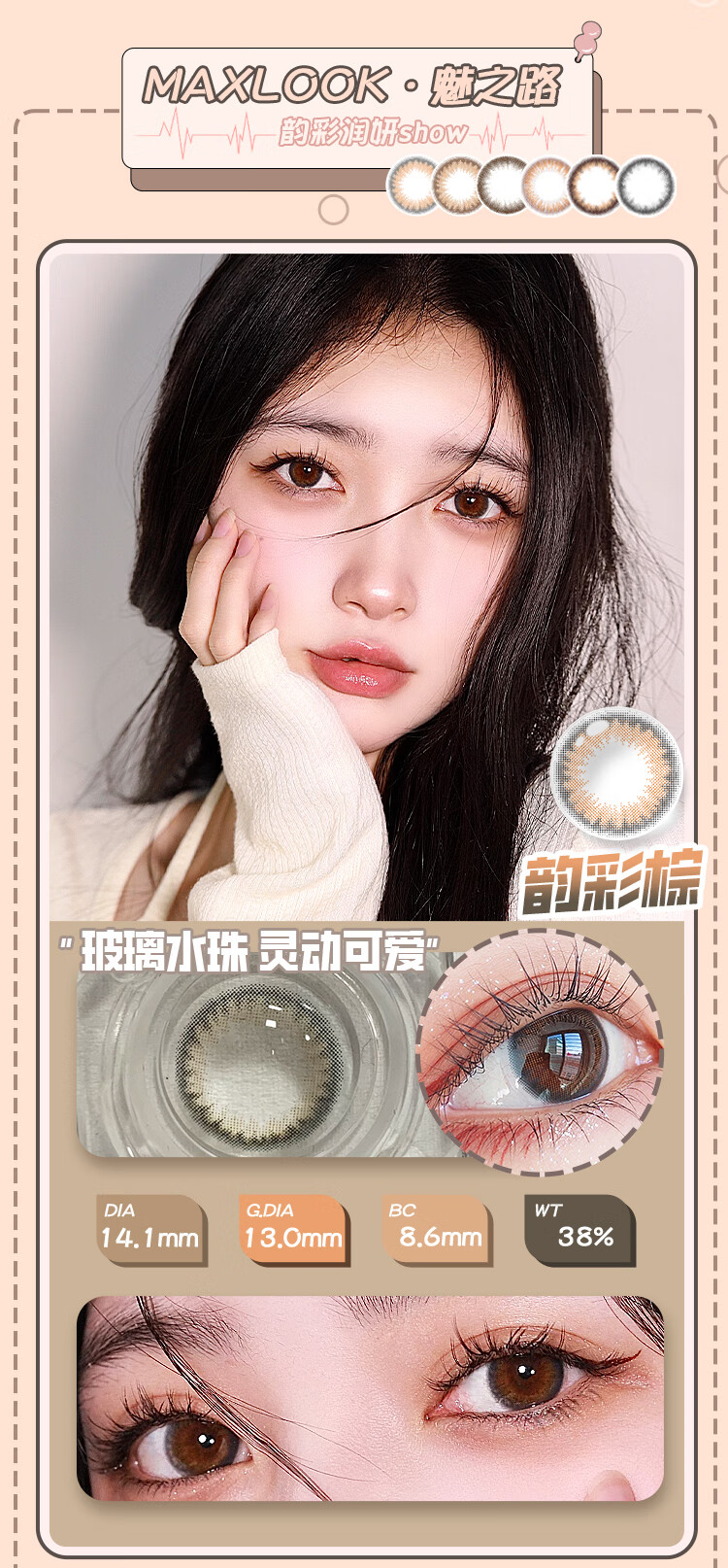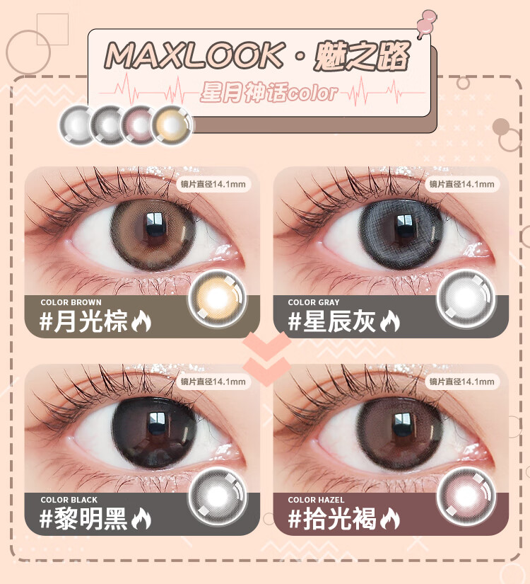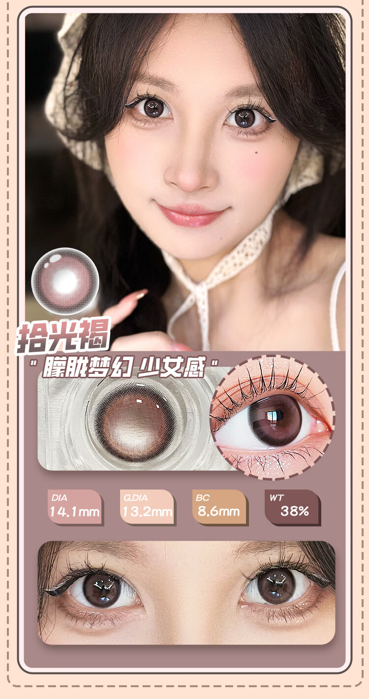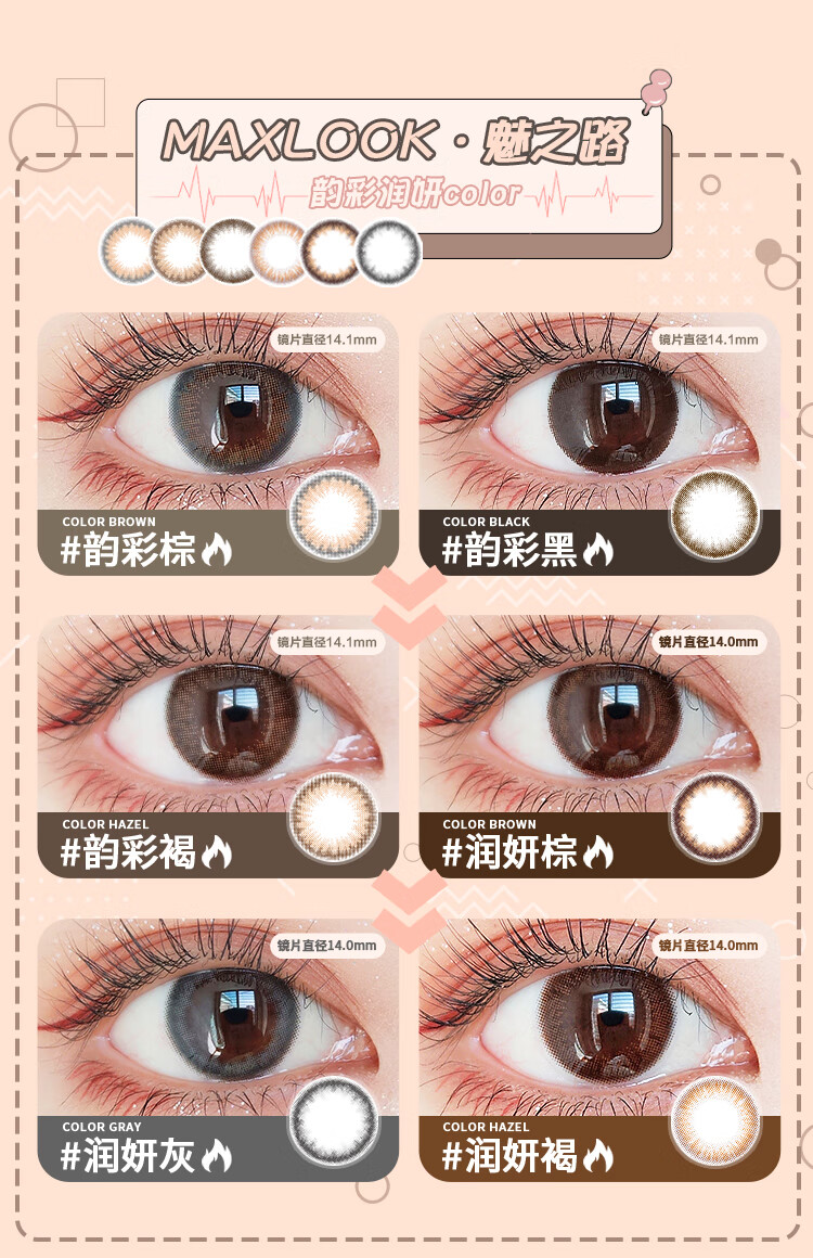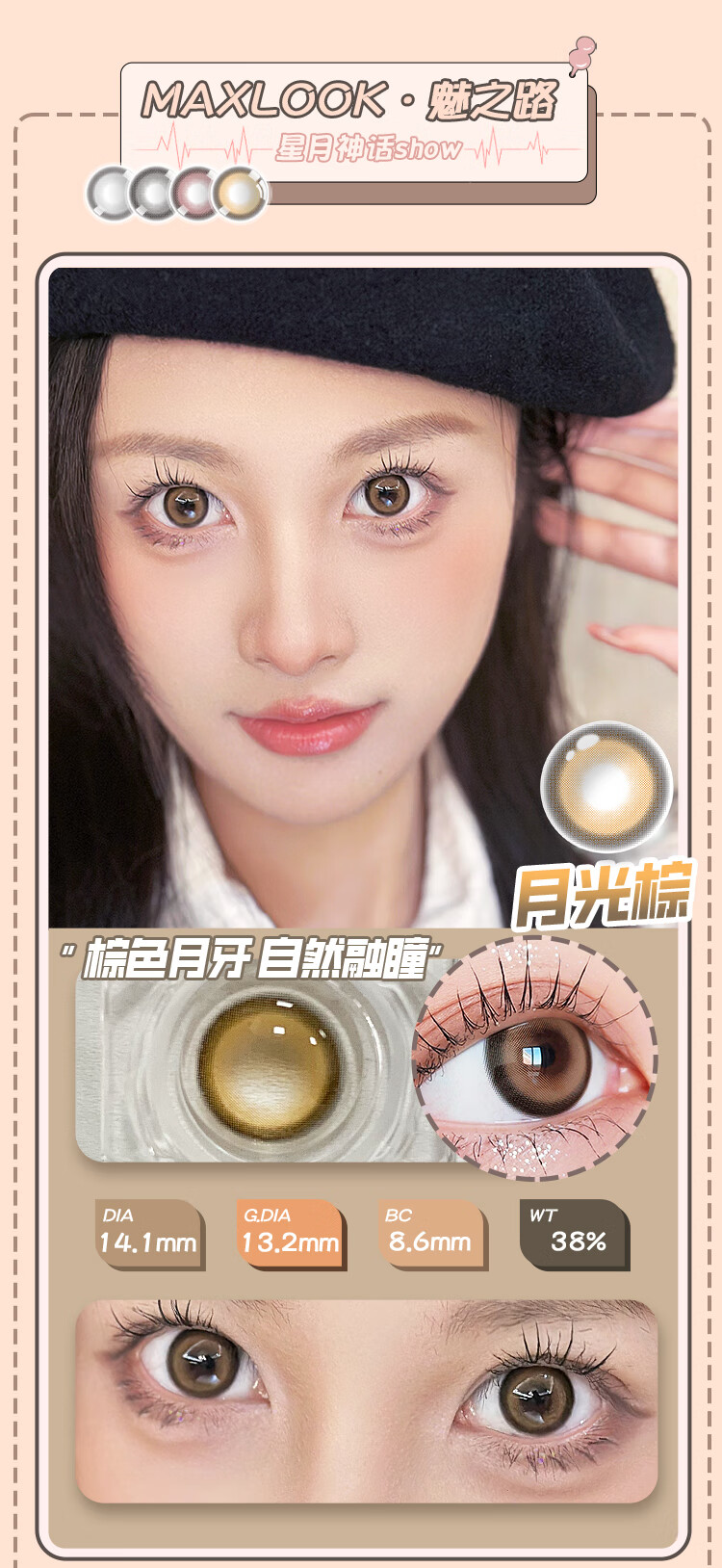 MAXLOOK 美瞳半年抛 韩国进口 自然大小直径男女近视彩色隐形眼镜2片装 拾光褐2片 1000度