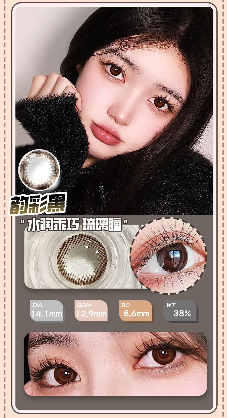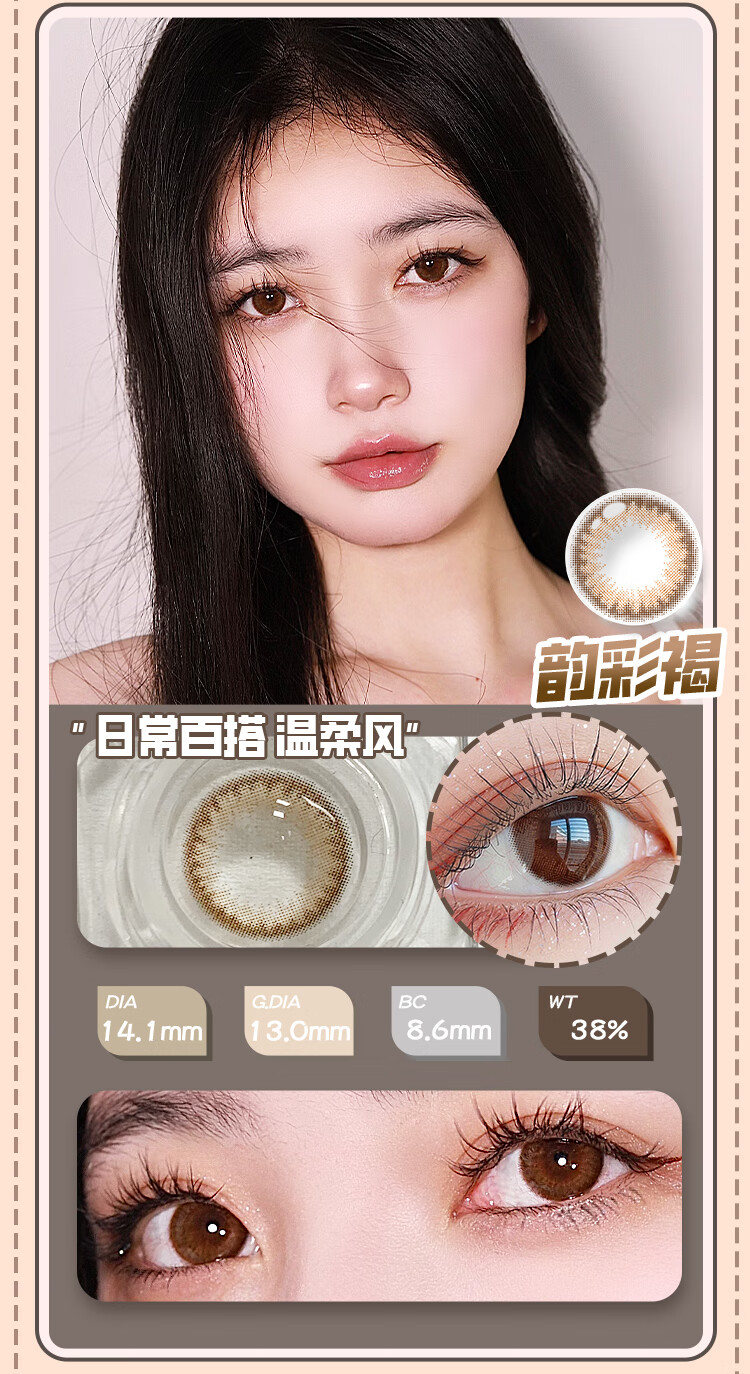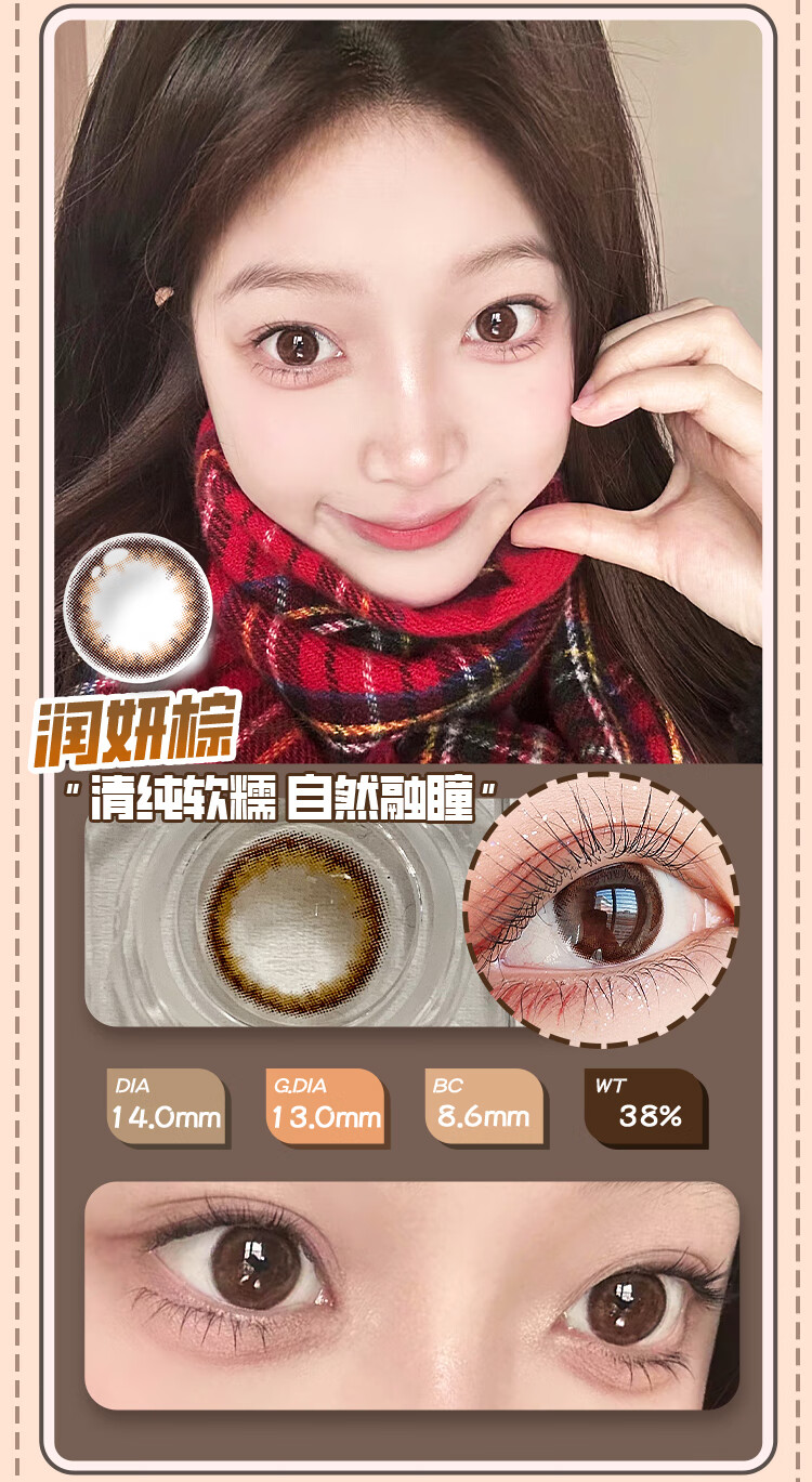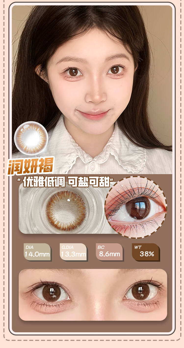 MAXLOOK 美瞳半年抛 韩国进口 自然大小直径男女近视彩色隐形眼镜2片装 拾光褐2片 1000度