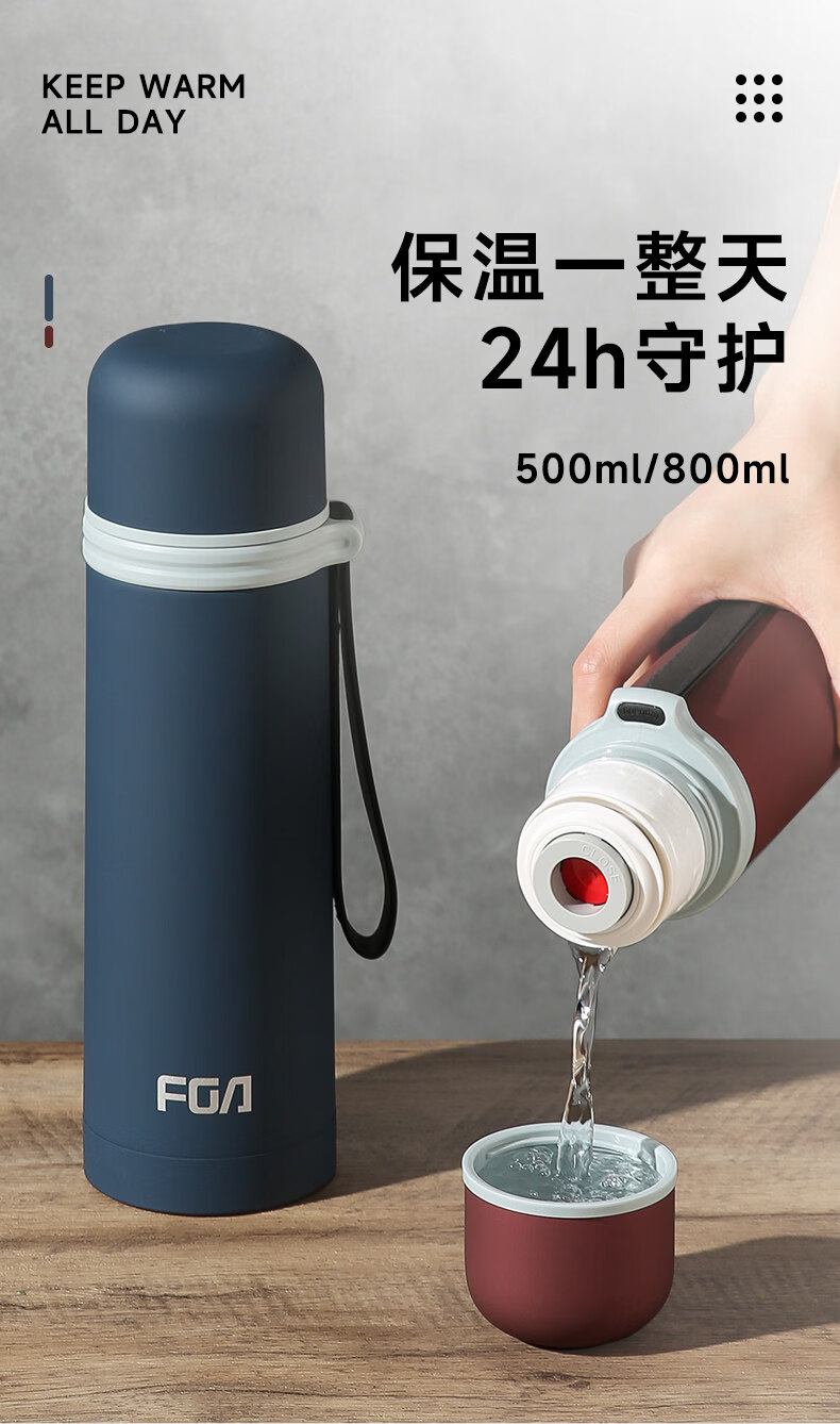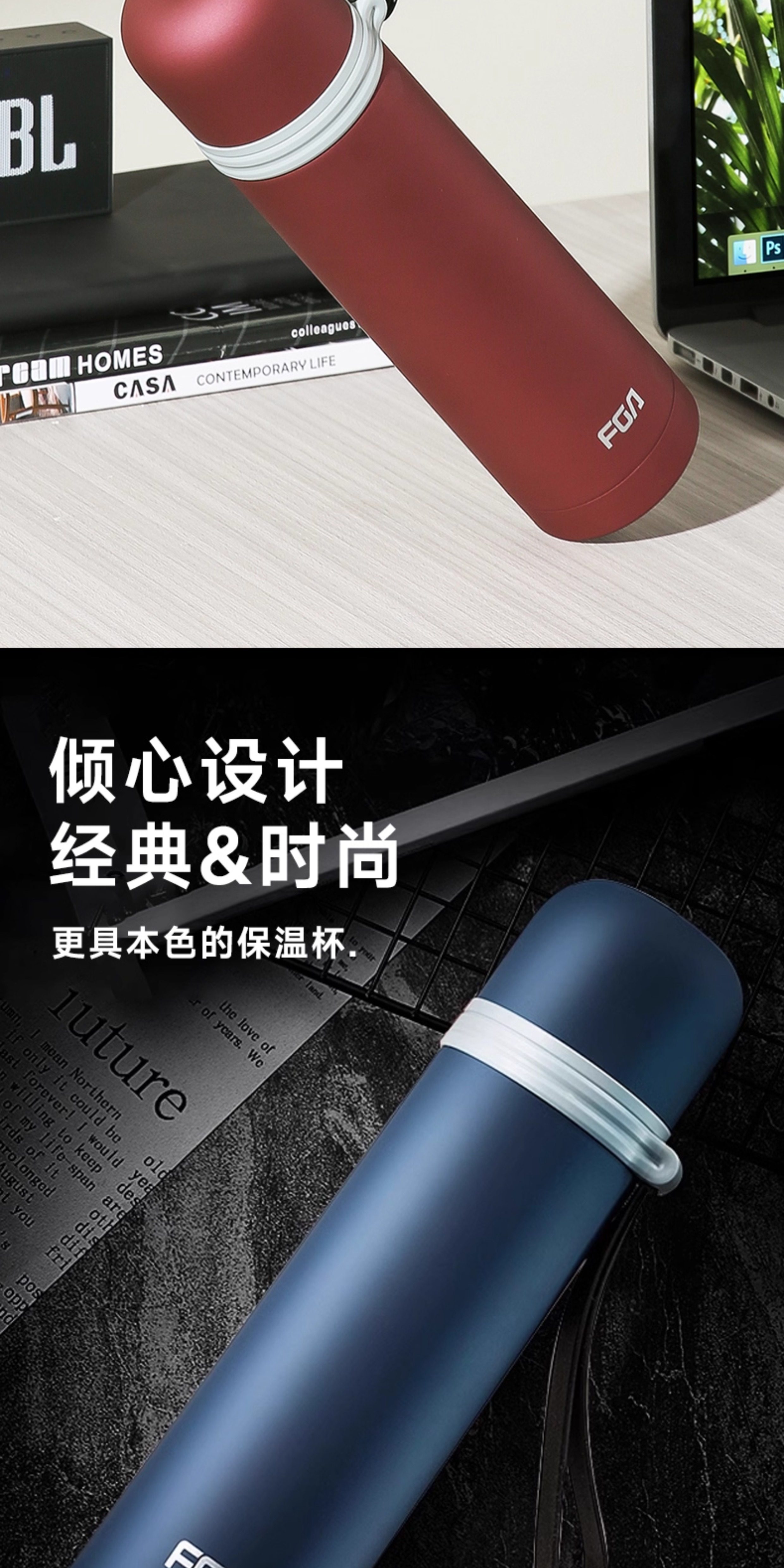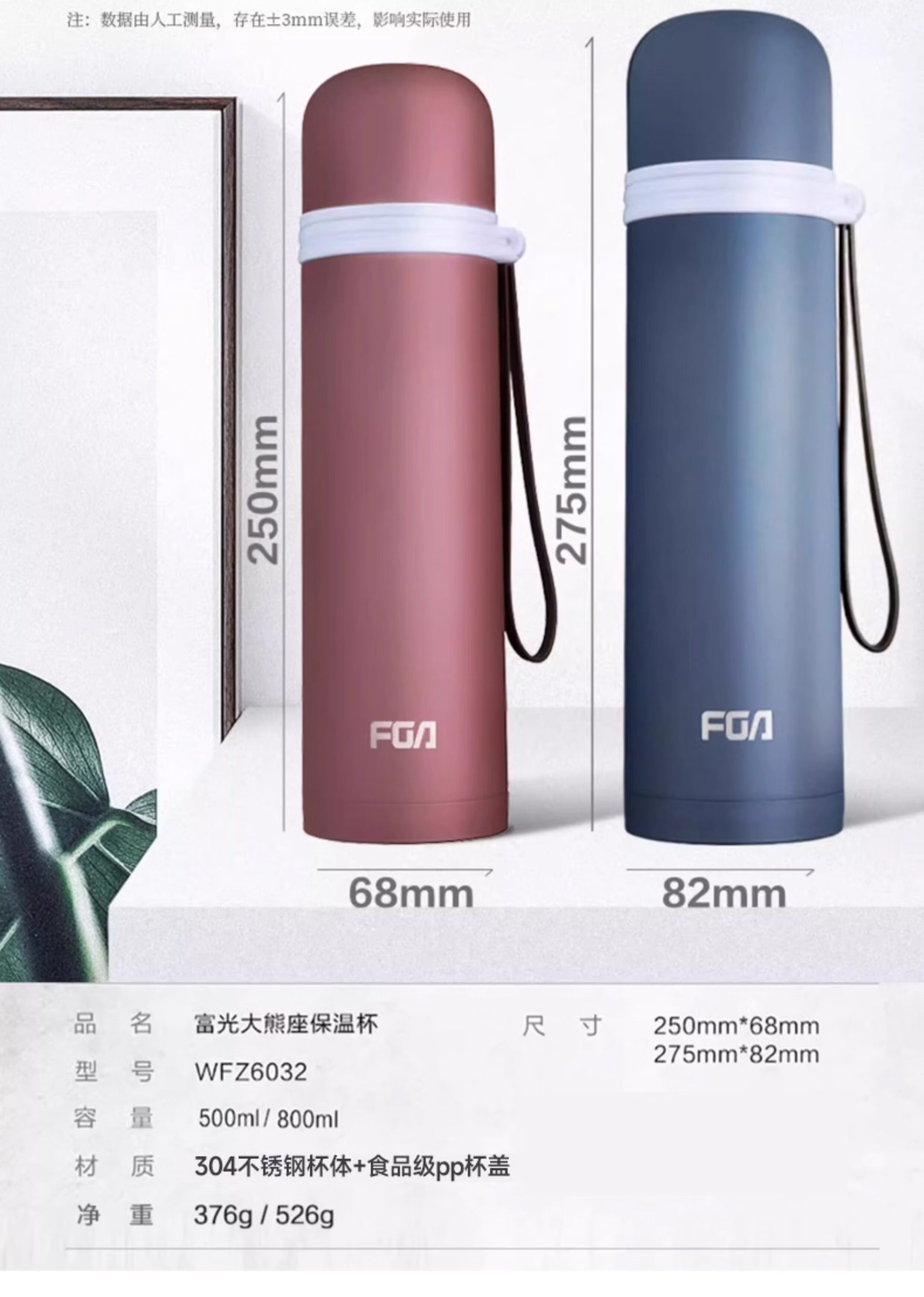 富光保温杯子弹头大容量保温杯男女304不锈钢真空杯子户外旅行茶水杯 磨砂紫红500ml