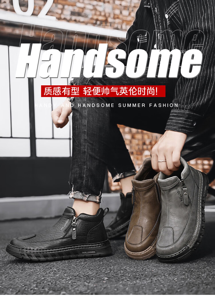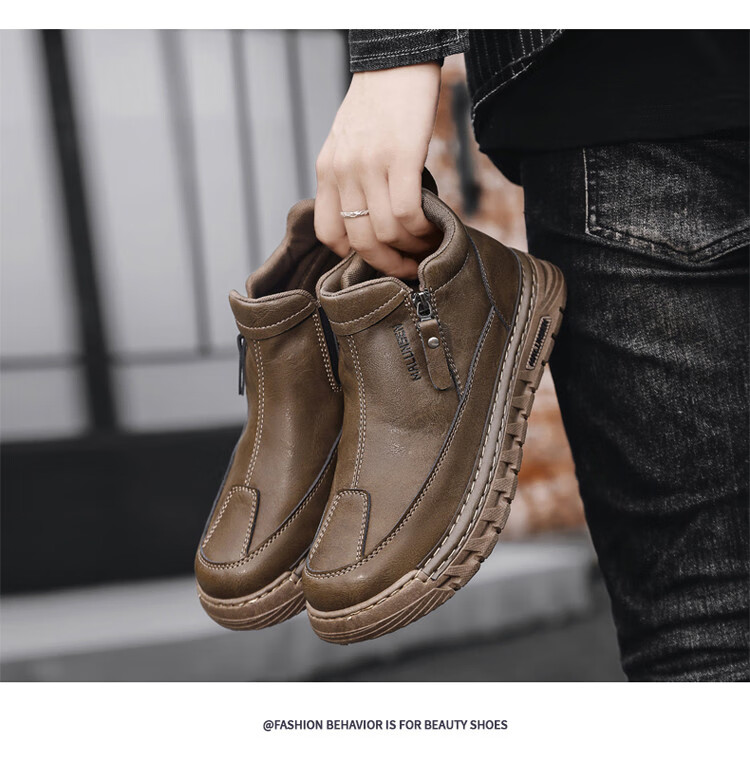 沙驰(SATCHI)男鞋【羊毛皮】防寒保暖雪地靴秋冬棉鞋舒适轻底休闲鞋男靴 卡其(H12A9G0320) 加绒 38 欧码(选小一码)