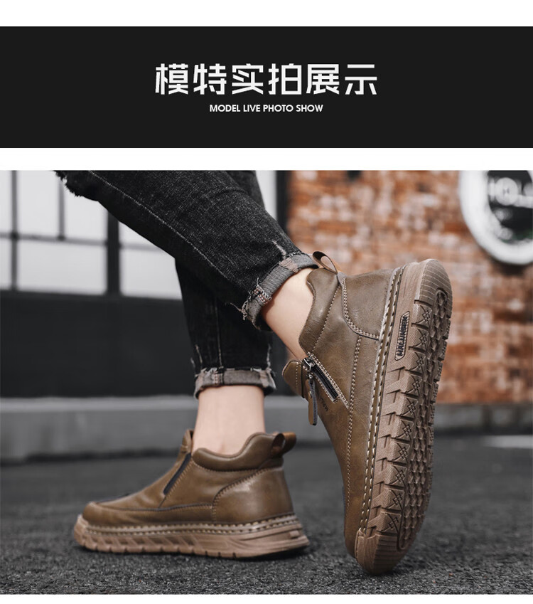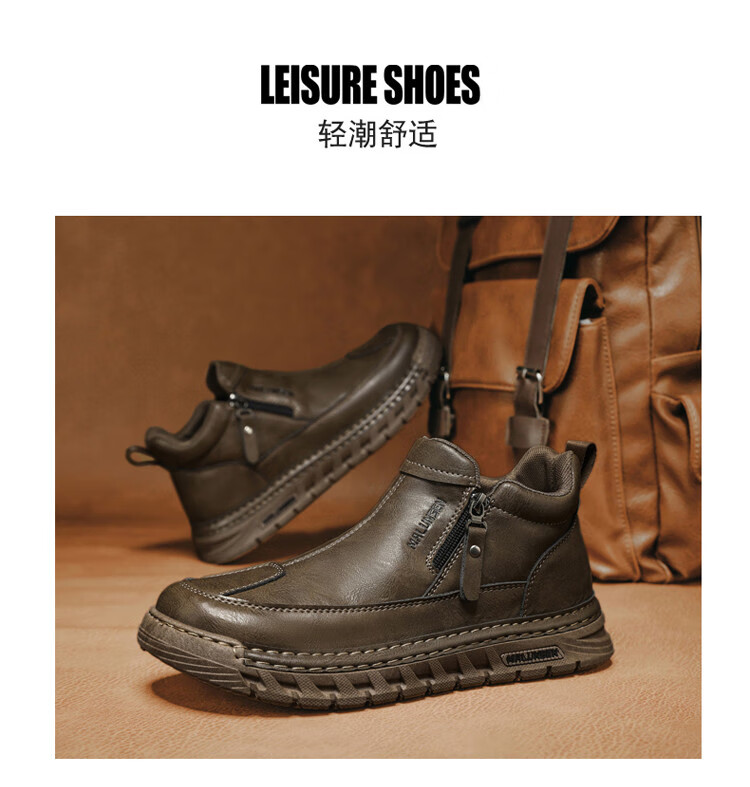 沙驰(SATCHI)男鞋【牛皮/牛剖层皮】新款轻底秋冬休闲鞋户外工装鞋板鞋运动鞋 土黄/驼色(X255C2311) 41 欧码(选小一码)