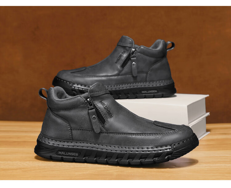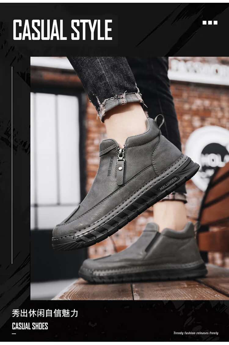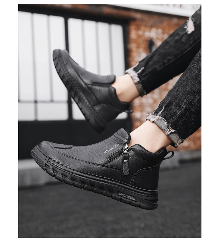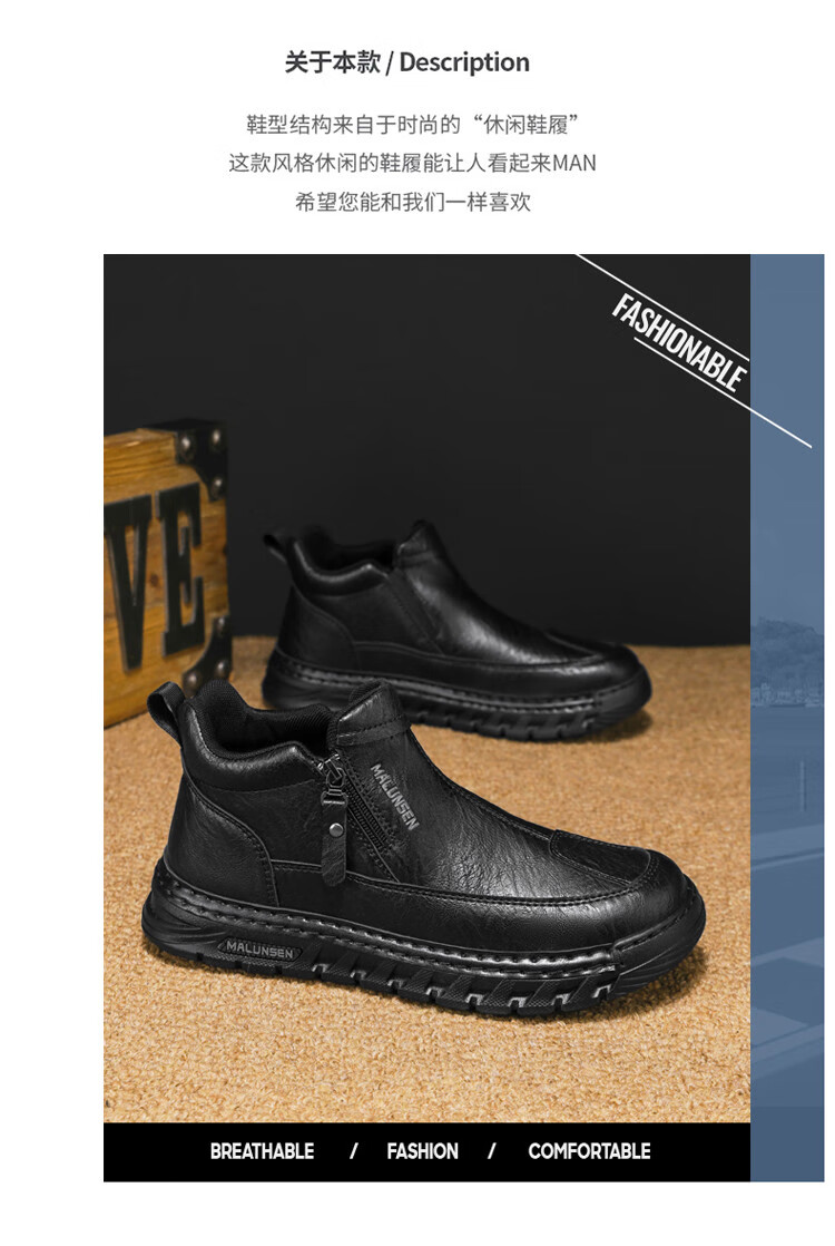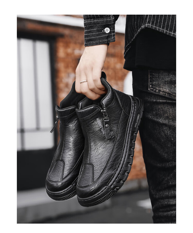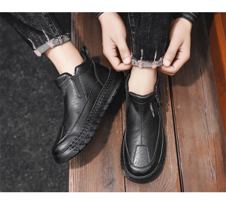 稻草人(MEXICAN)男鞋2026新款冬季英伦复古棕色休闲皮鞋男士真皮厚底上班工作潮鞋 黑色 44