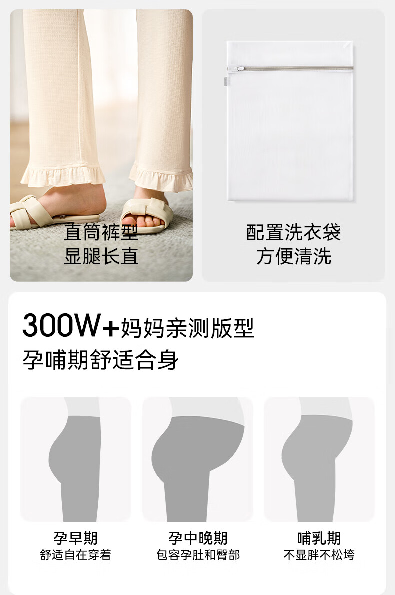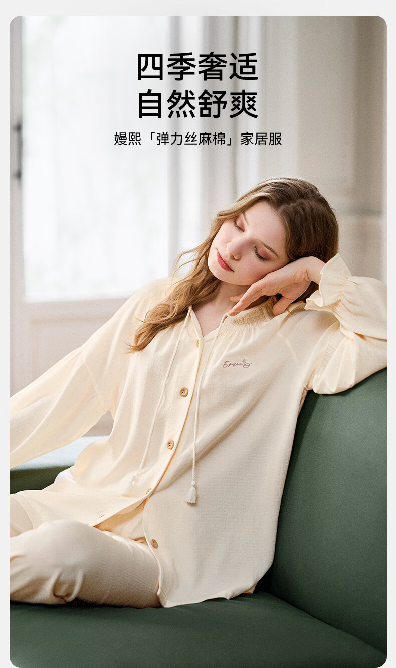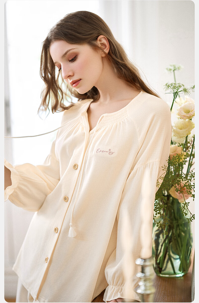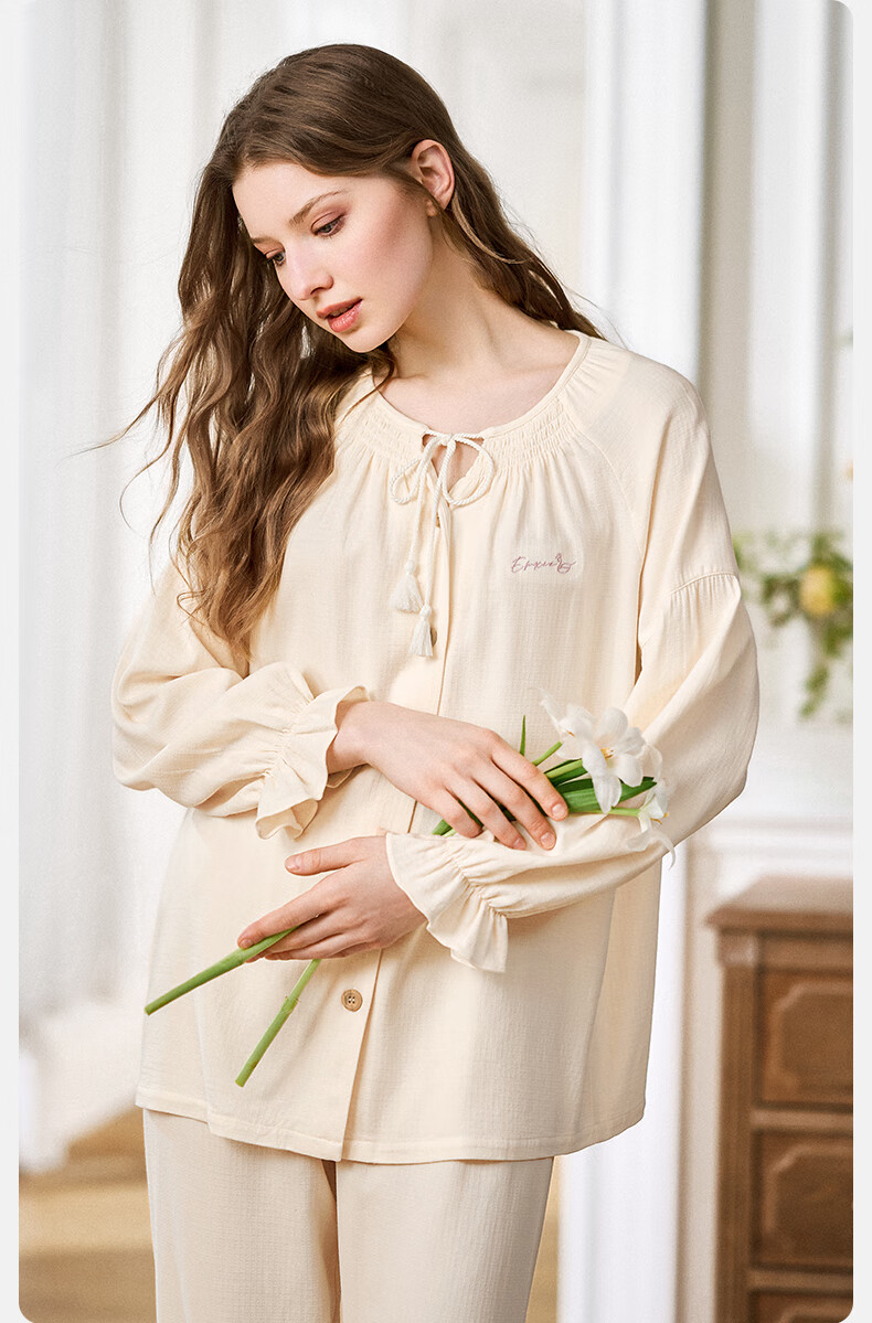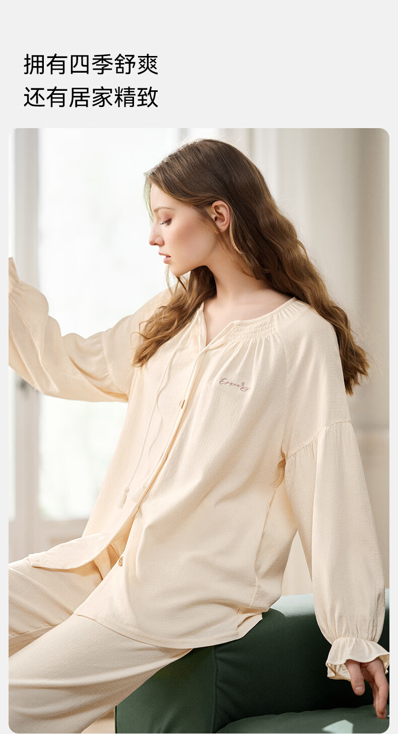 嫚熙(EMXEE)春夏季孕妇丝麻棉哺乳睡衣产妇产后月子服家居服套装 香草白 XL