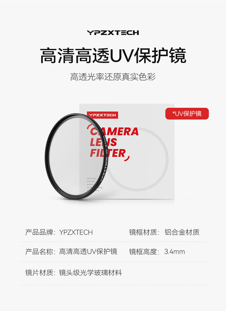 YPZXTECH67mmUV镜薄外框无暗角滤镜适用佳能索尼相机腾龙(Tamron)B070 B061X A071等 新老包装随机发货