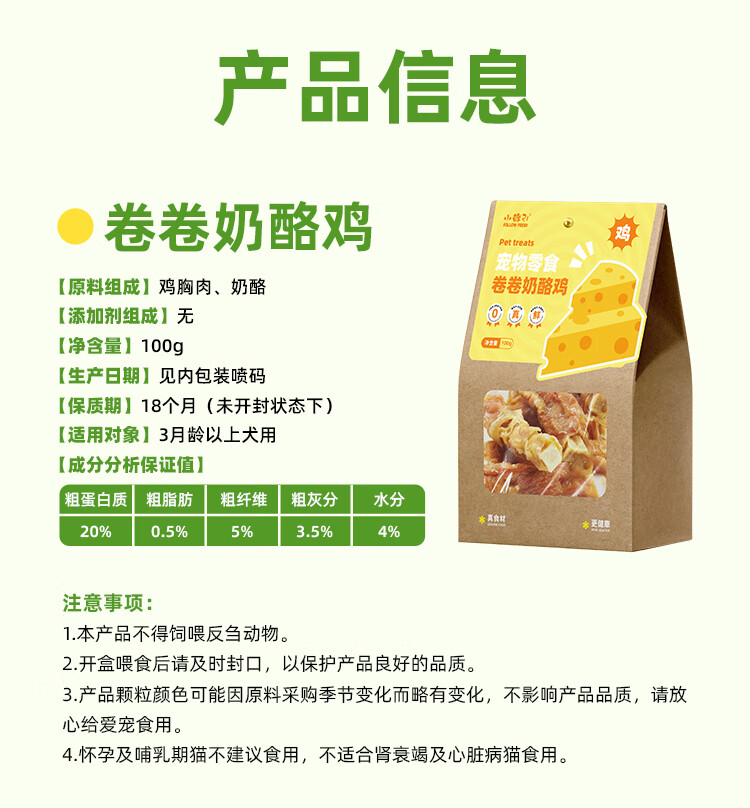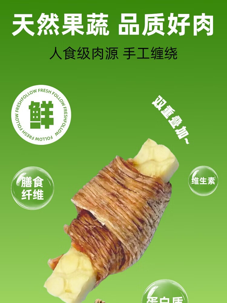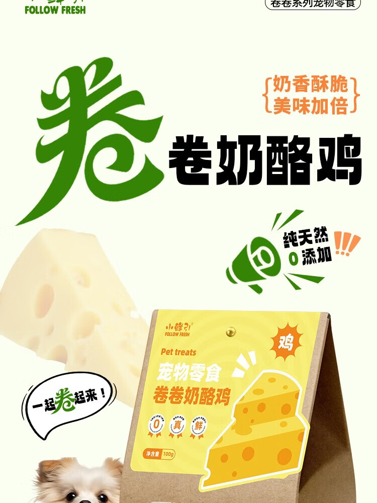 小鲜引;FOLLOW FRESH狗狗零食奶酪鸡肉干100g成幼犬磨牙棒训练解馋宠物零食 风味奶酪鸡肉卷卷