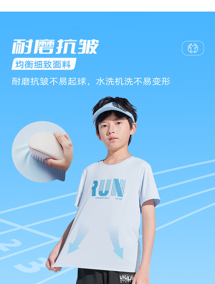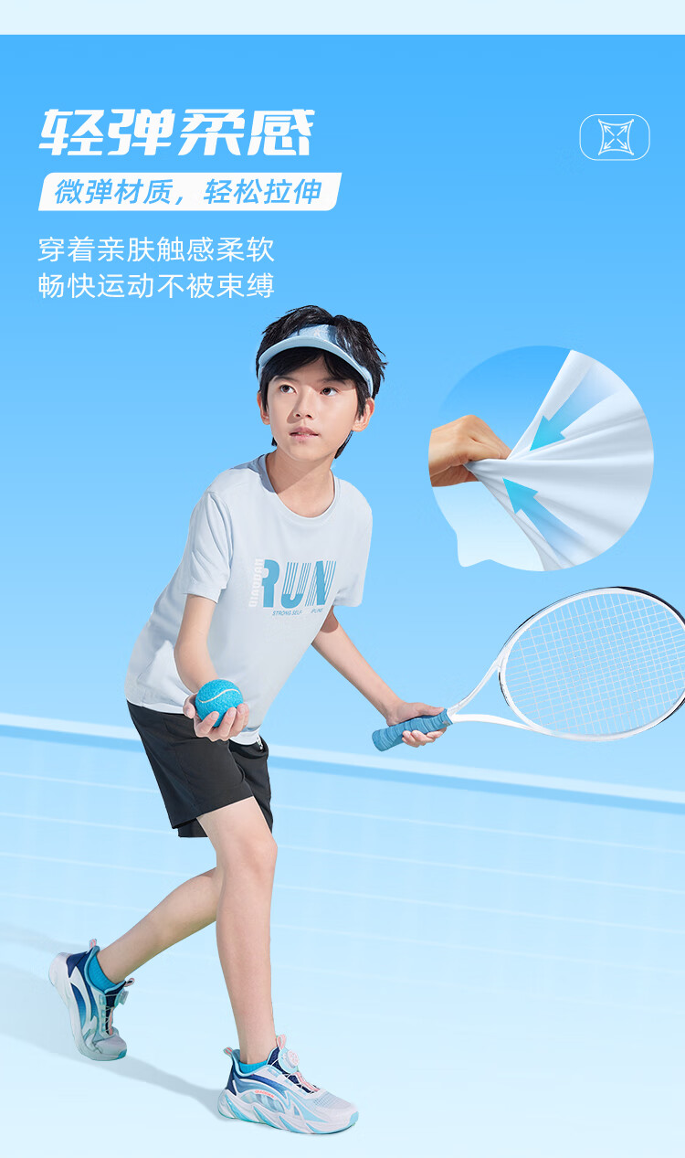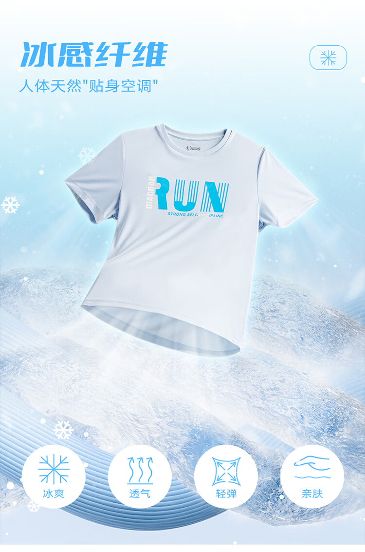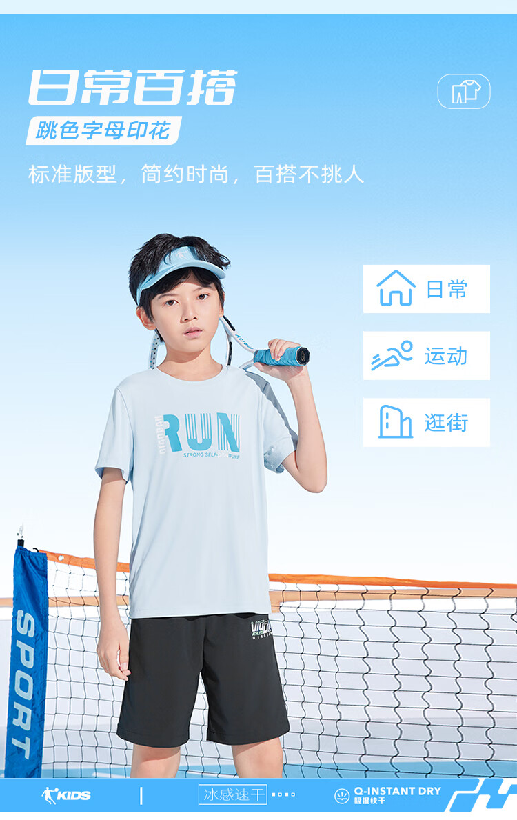 乔丹QIAODAN童装男童儿童短袖速干2025夏季新款中大童透气夏装户外T恤 星际蓝 150 cm