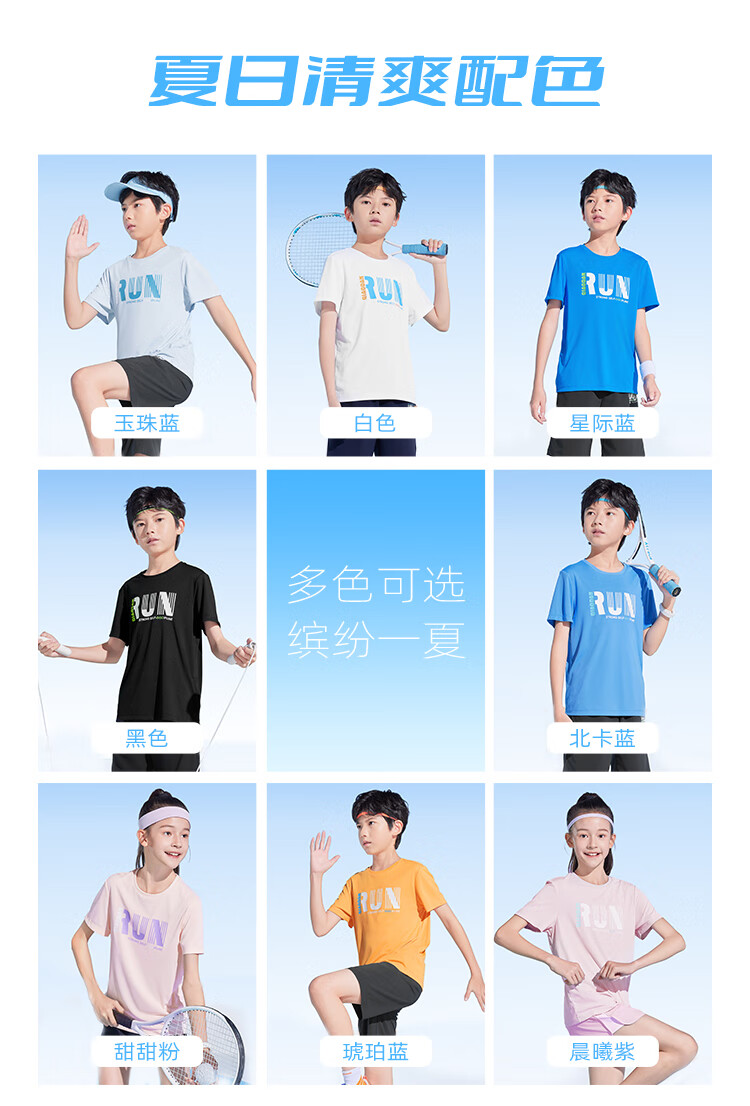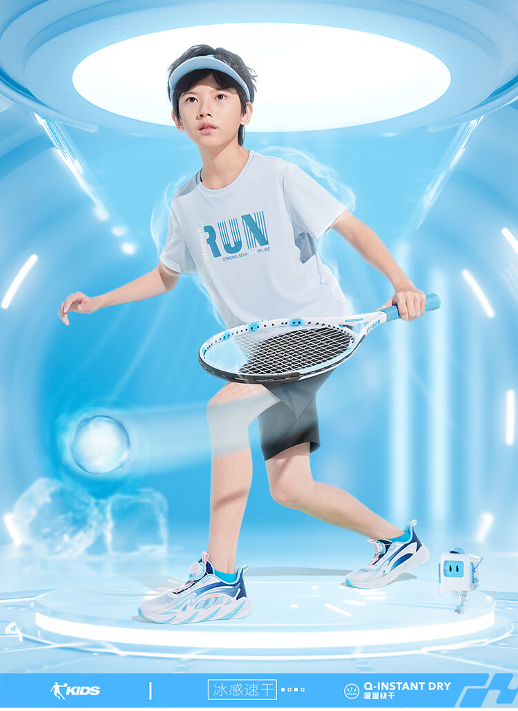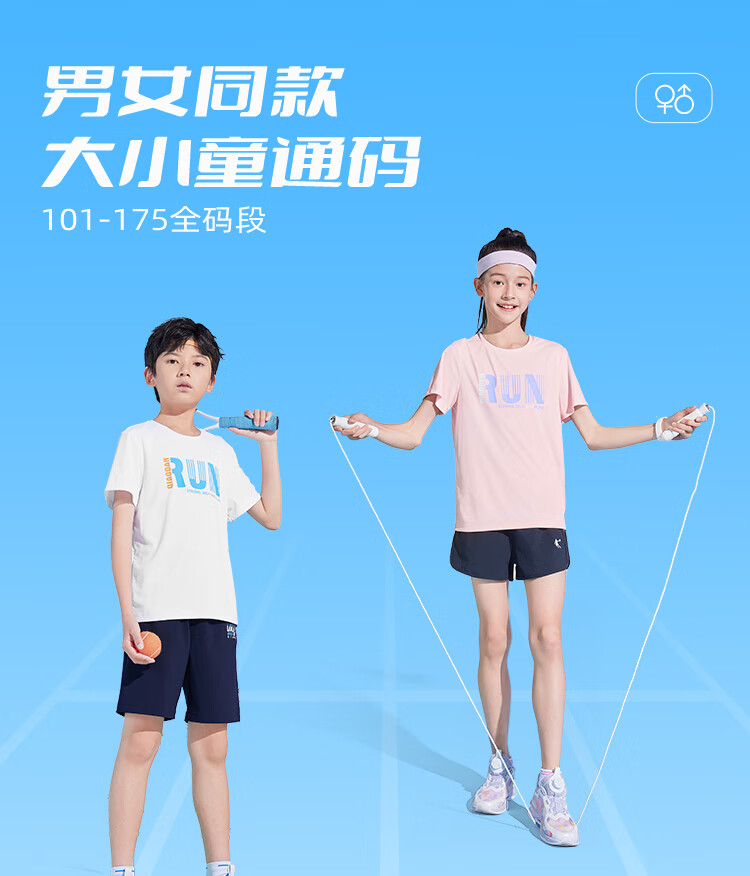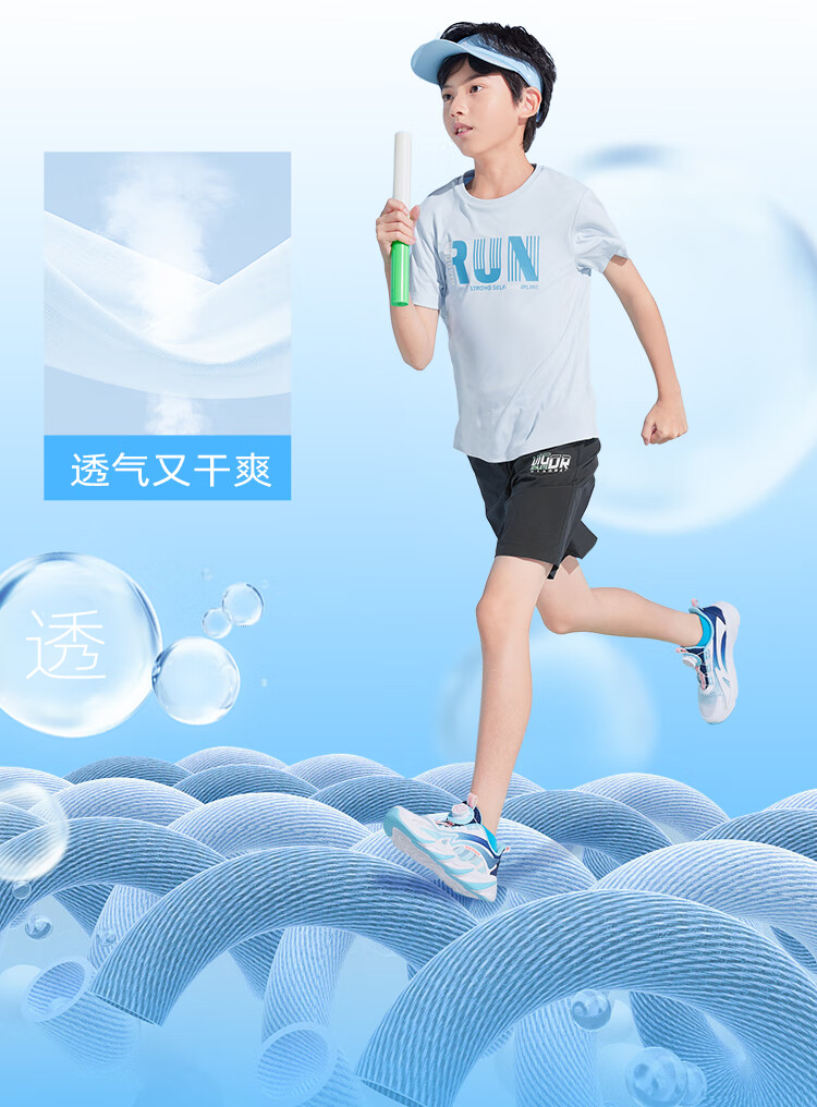乔丹QIAODAN童装男童儿童短袖速干2025夏季新款中大童透气夏装户外T恤 星际蓝 150 cm