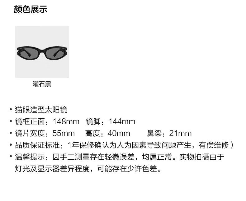 贝尔莎(bertha)猫眼墨镜男高级感近视镜太阳眼镜女防晒紫外线潮 MASS 01 曜石黑