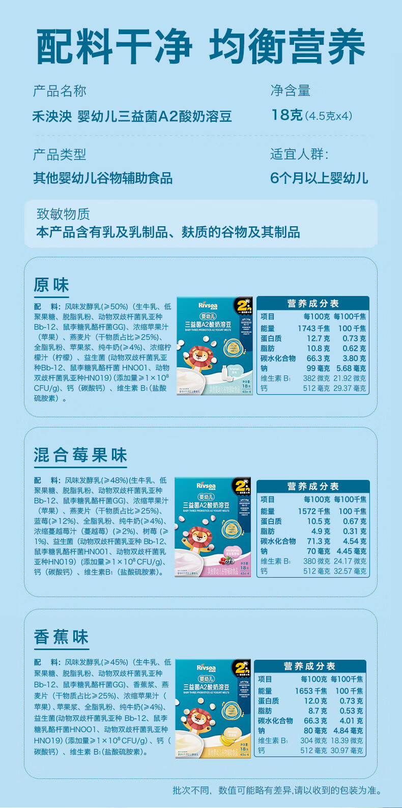 禾泱泱婴幼儿三益菌A2酸奶溶豆原味18g宝宝零食含益生菌入口易溶好吞咽