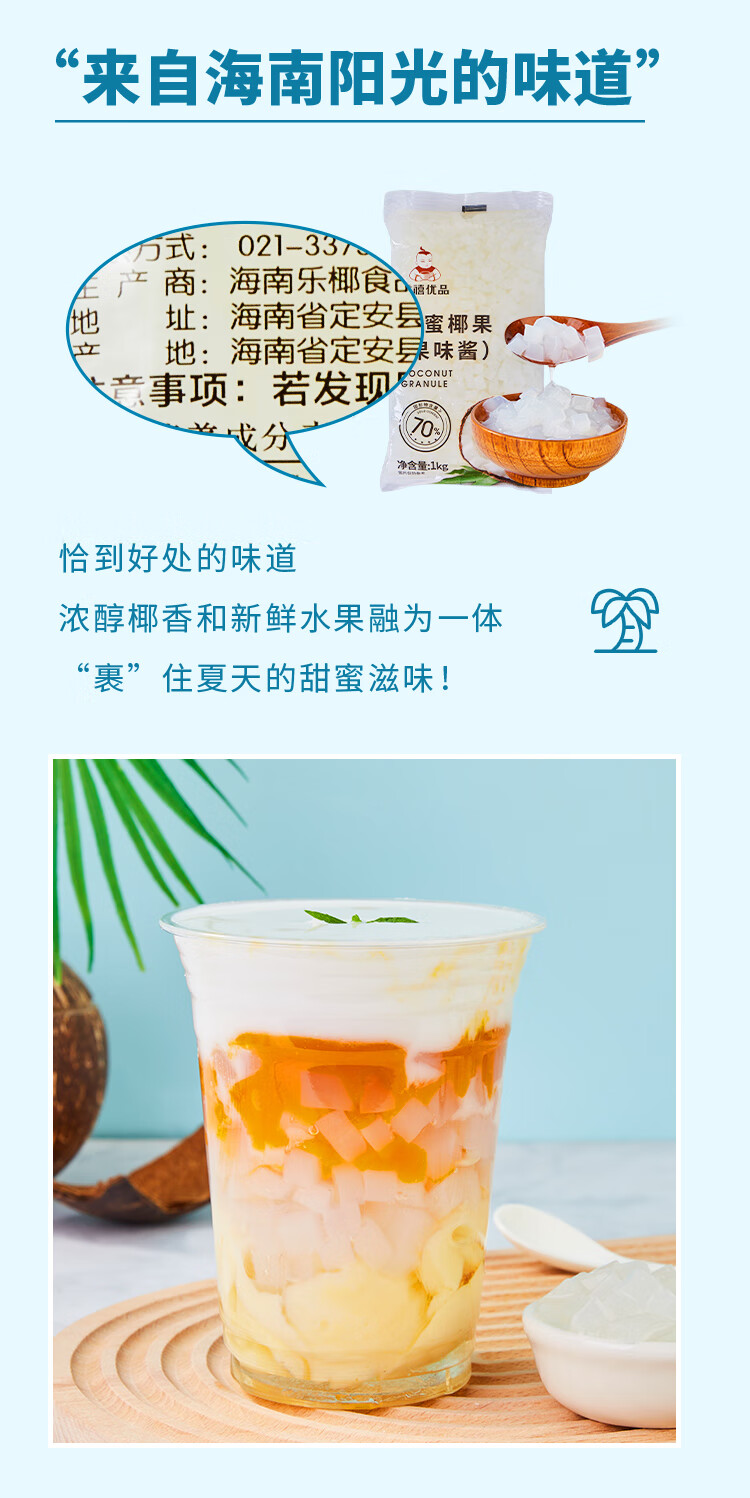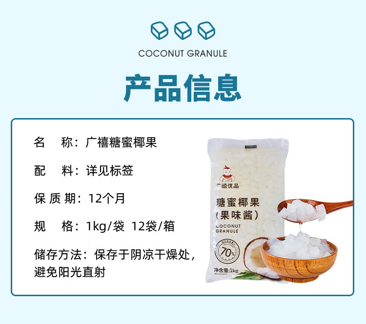 广禧优品椰果粒1kg 椰果肉果冻布丁DIY甜品珍珠奶茶烘焙原料专用