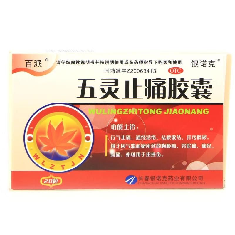 [百派]五灵止痛胶囊 0.3g*20粒 2盒装 治胸痛的药 胸肋软骨炎肋骨炎药肋骨炎肋间神经痛消肿胸椎外翻凸起胸口闷胀疼痛 胸口痛止痛
