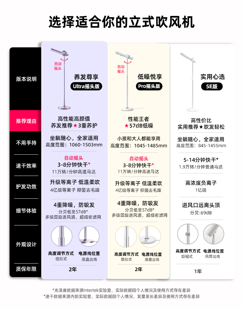 品仕乐立式电吹风机家用恒温冷热负离子护发大功率速干 免手持折叠无线遥控双出风口 皓月白(pro摇头版)