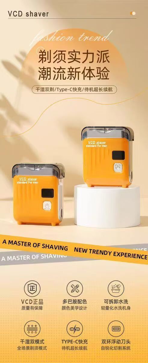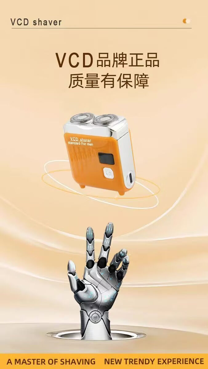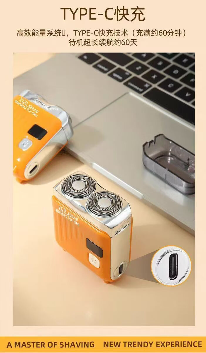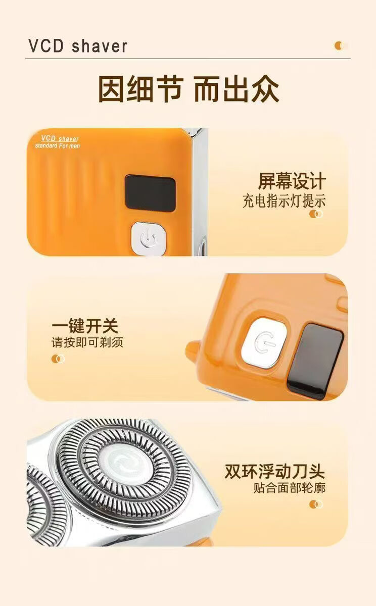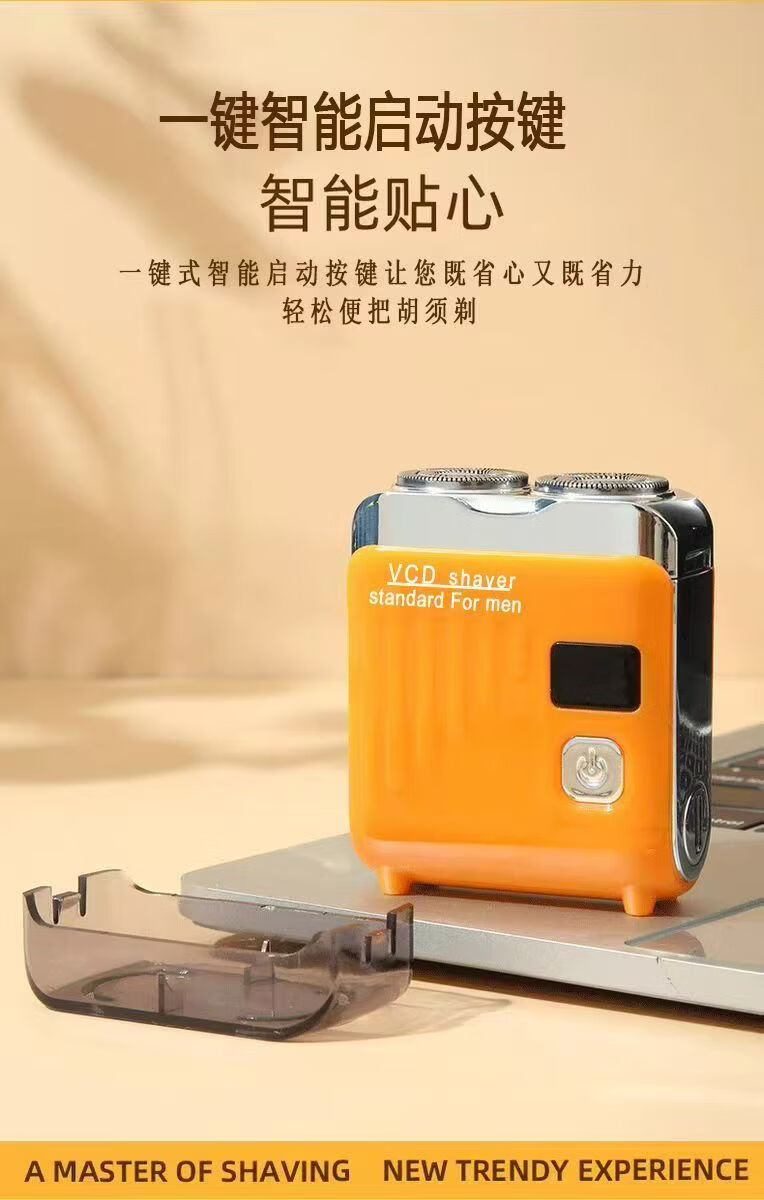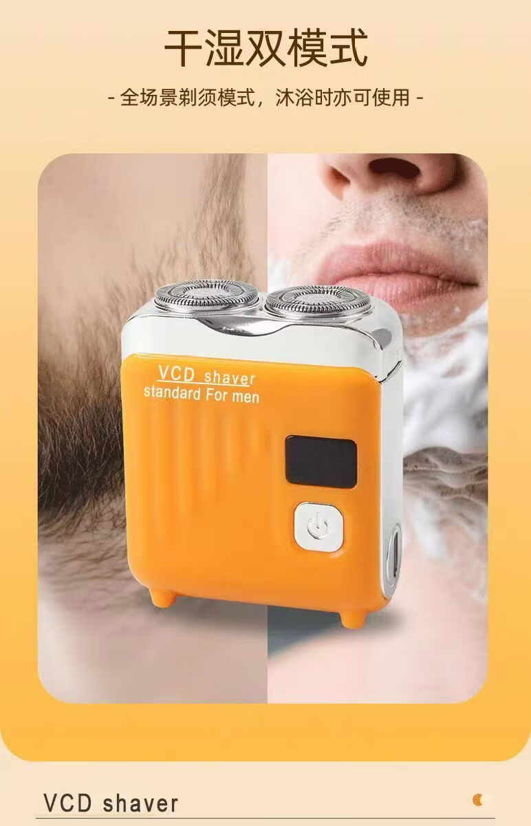 VCD电动剃须刀跨境出口德国外国热销款迷你便携式双刀头电量显示送礼物男朋友刮胡刀高档胡须刀年轻人 黑色尊享版36刃+电量显示