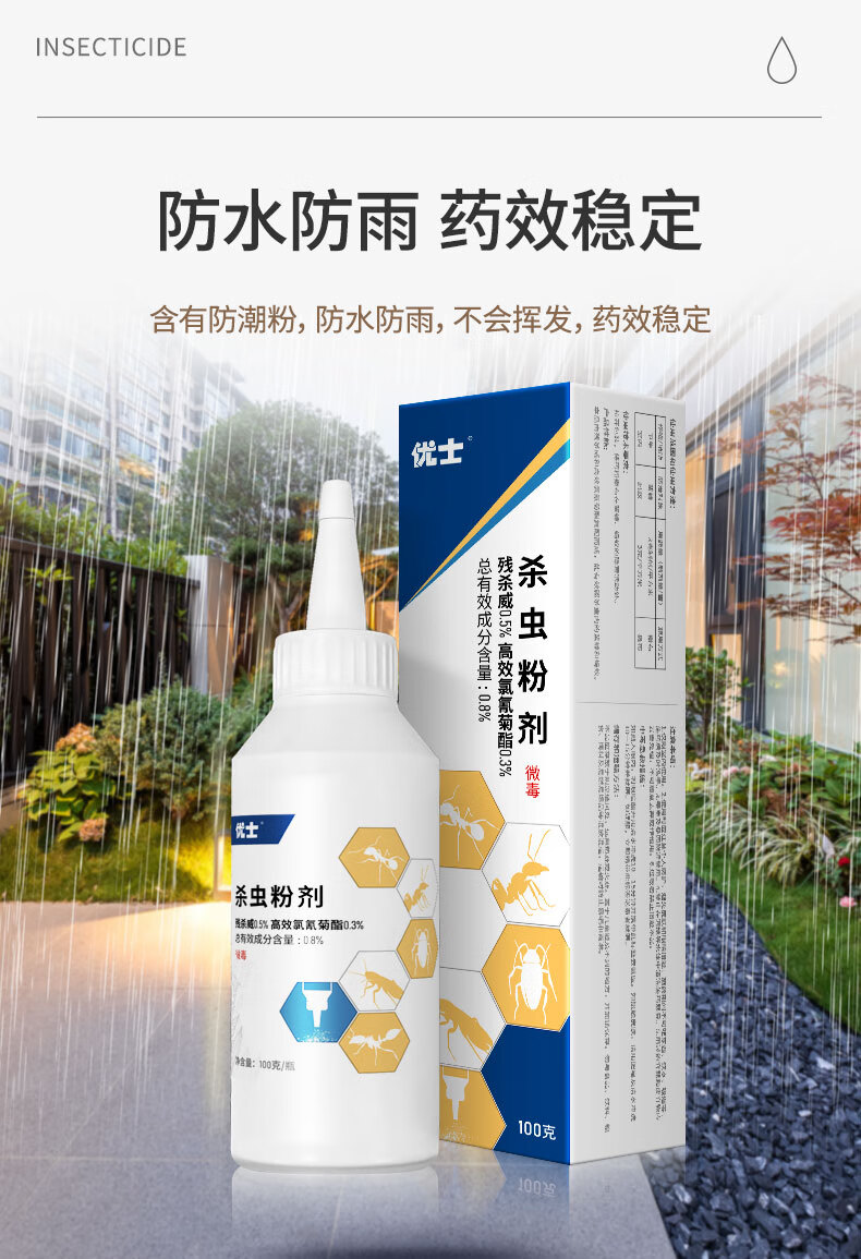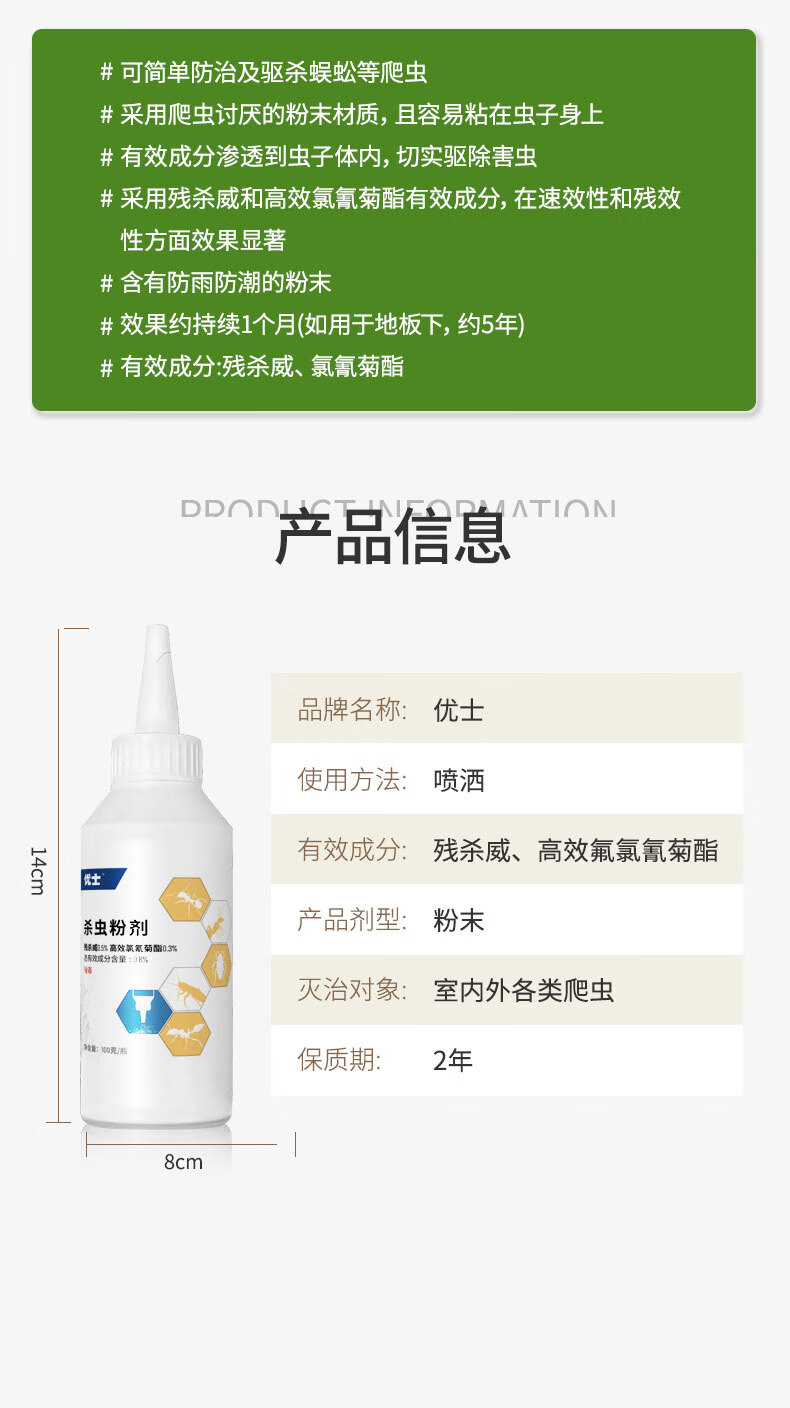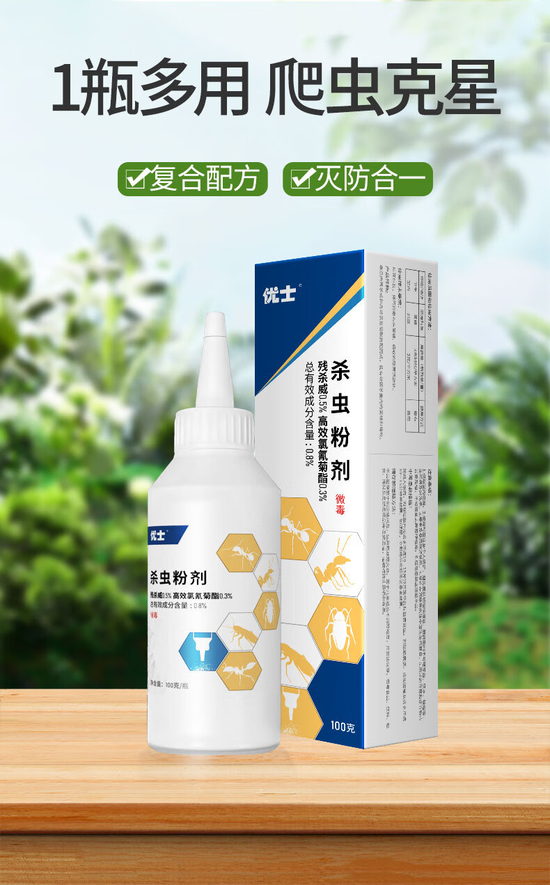 优士杀虫粉剂室内外爬虫蜈蚣蚂蚁防虫药潮虫蟑螂专用药全窝防治传染 100g*2瓶