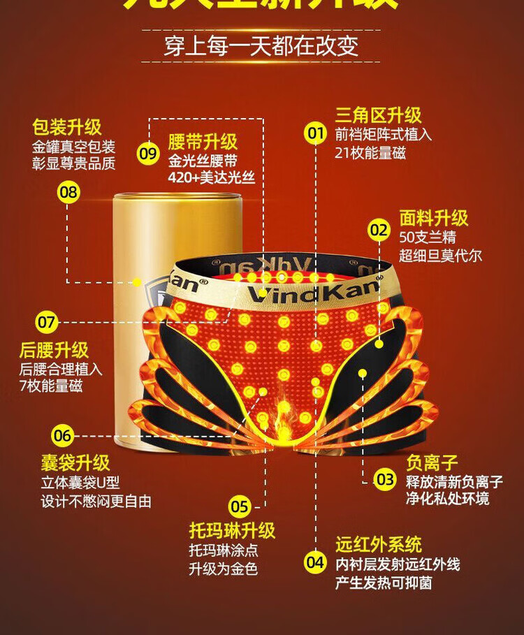 威定康(VindKan)英国卫裤官方高档男士内裤莫代尔磁石疗能量大粗硬长多功能生理裤 威猛升级2灰1白 3条 4XL (适合体重176-210斤穿)