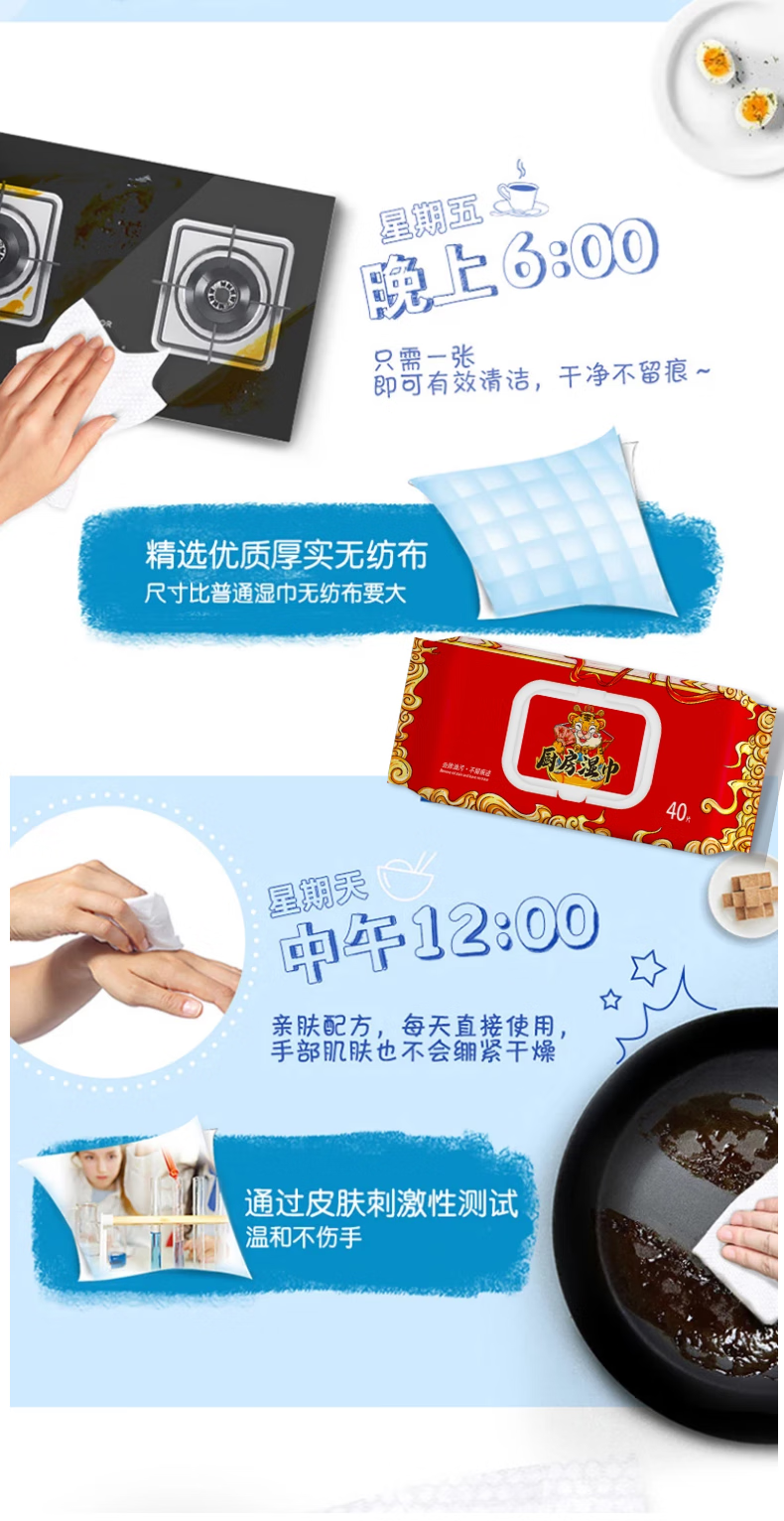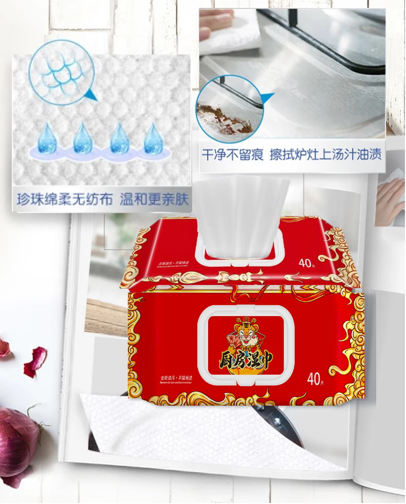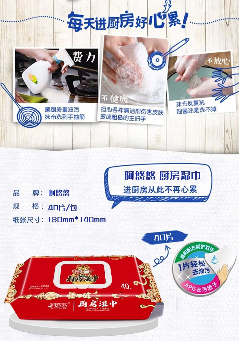 啊悠悠厨房湿巾去油去污专用纸巾厨房用纸一次性抹布大包带盖湿纸巾 厨房湿巾*3包(120片)