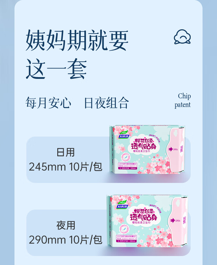 妇炎洁樱花丝柔卫生巾日夜组合装姨妈巾经期超薄透气纳米银抑菌芯片 【到手50片】樱花日用10包*5片