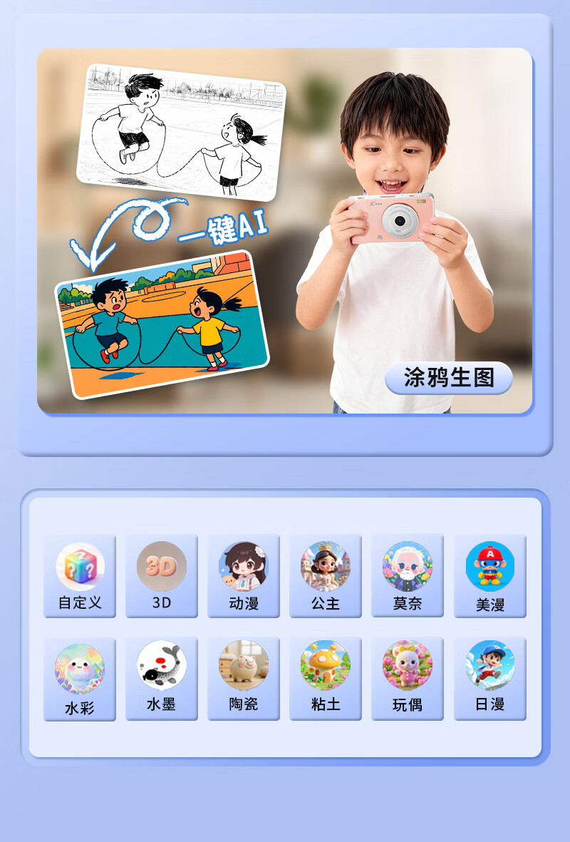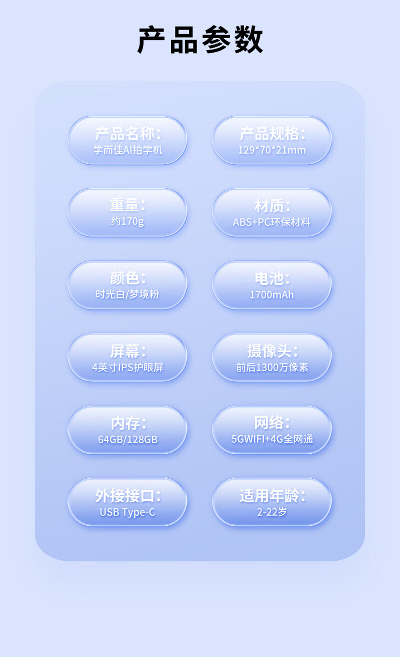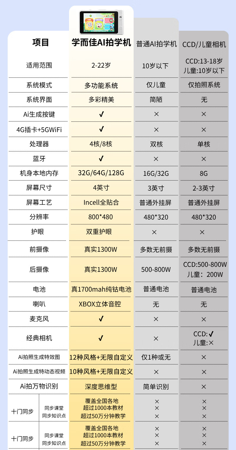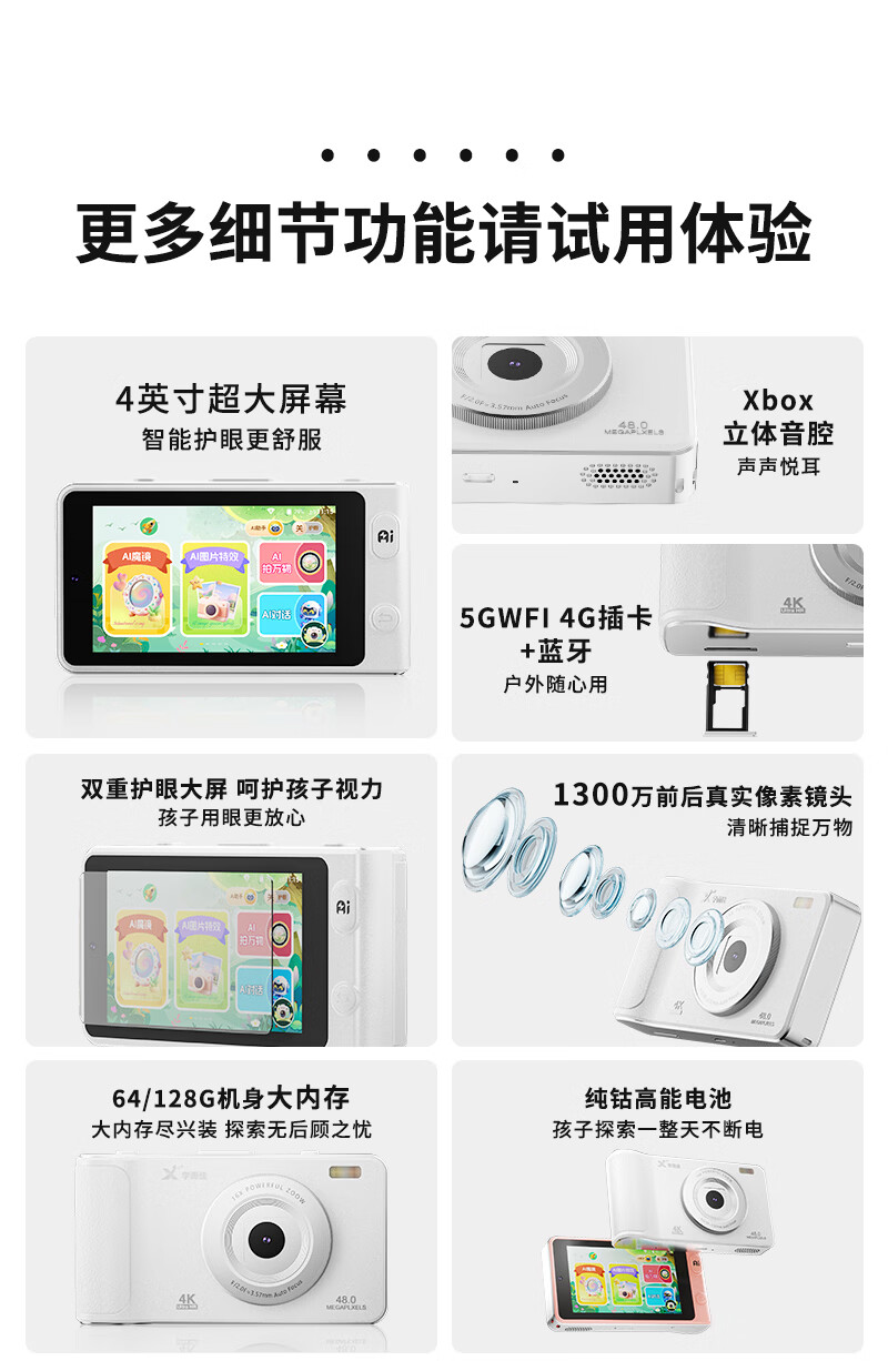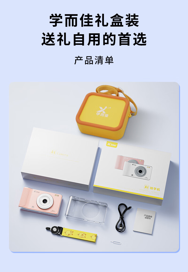 学而佳AI拍学机CCD高像素智能相机儿童人工玩具学习机早教机故事机点读机家教机学练机英语单词机 时光白 K6(64G)多千元学习机内容+语音唤醒
