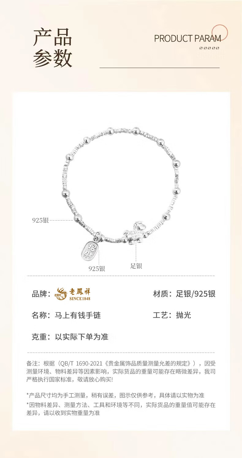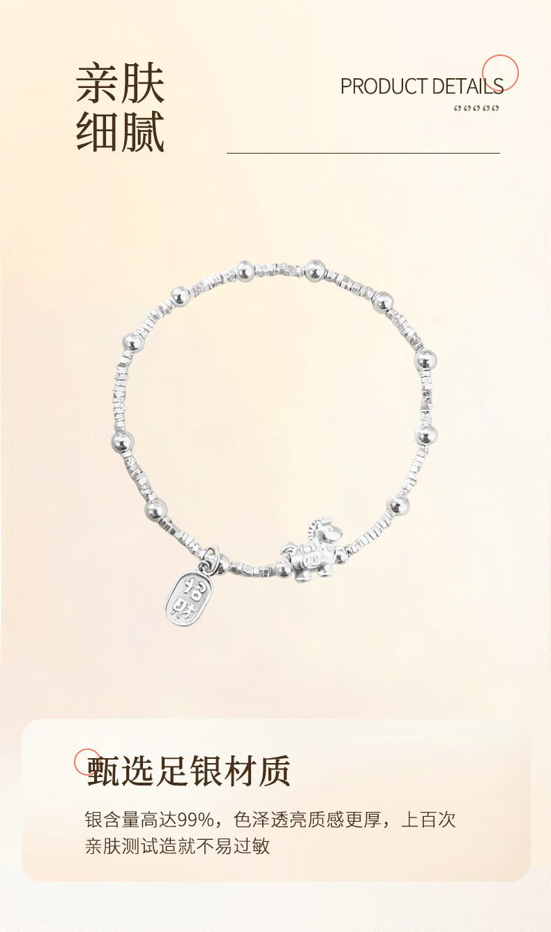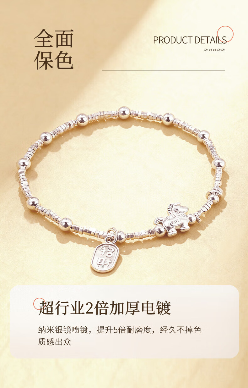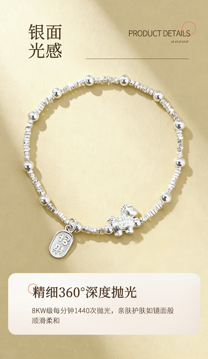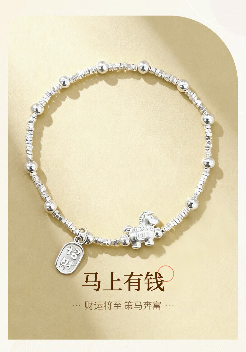 老凤祥925银马上招财手链女2026新款时尚手饰生日马情人节礼物送女朋友 925银马上有钱手链【品牌礼盒】