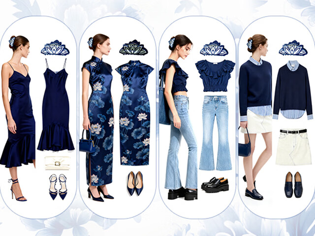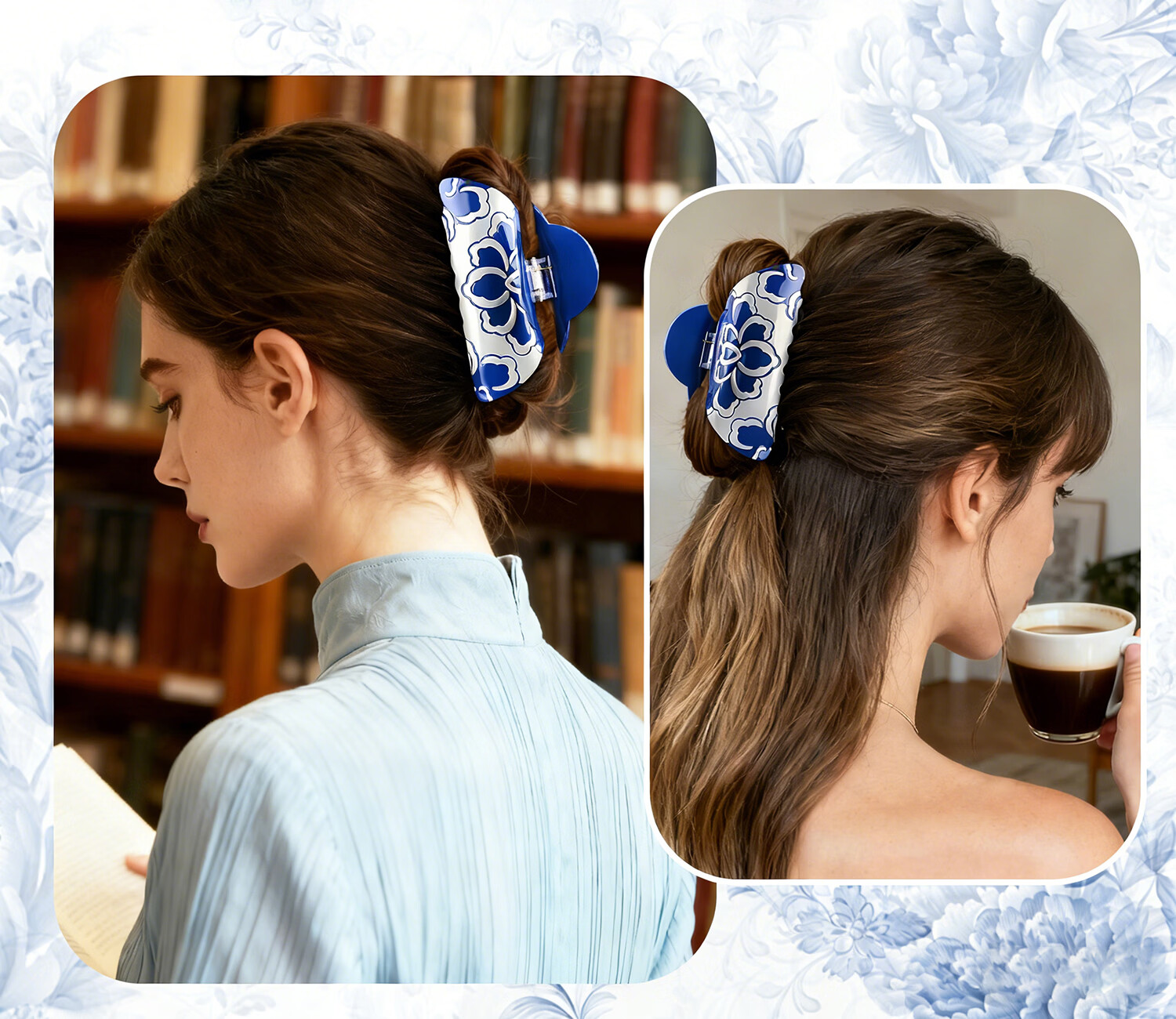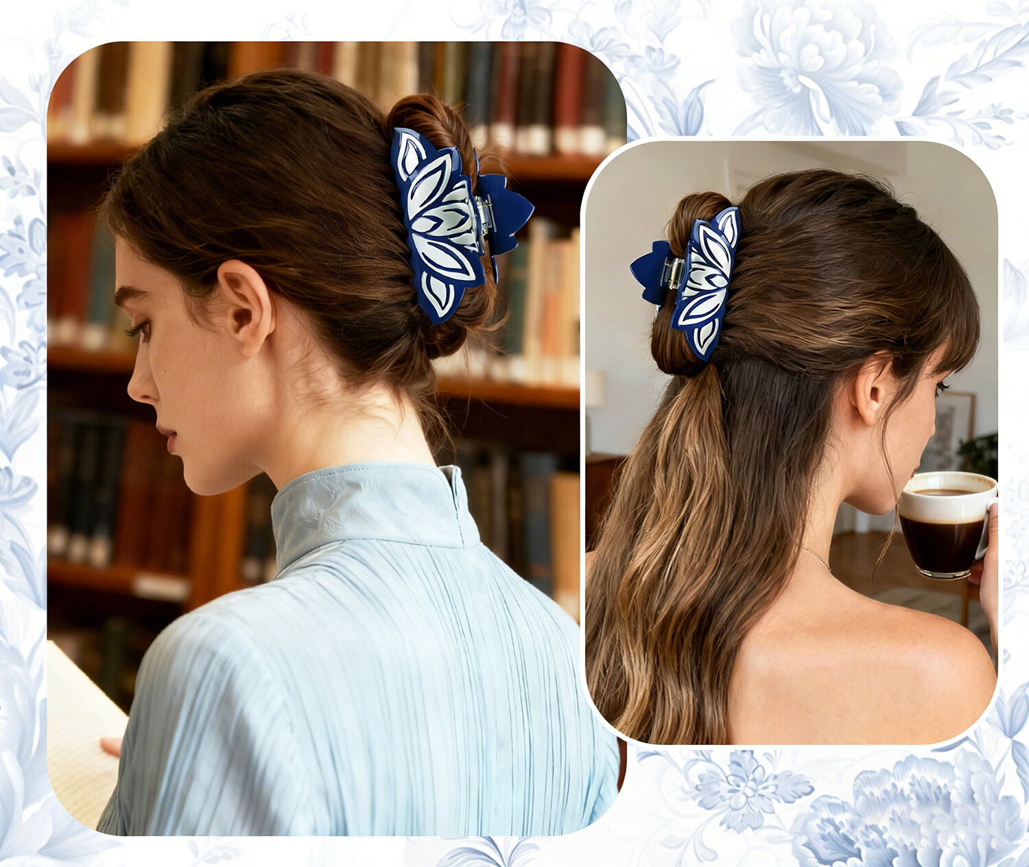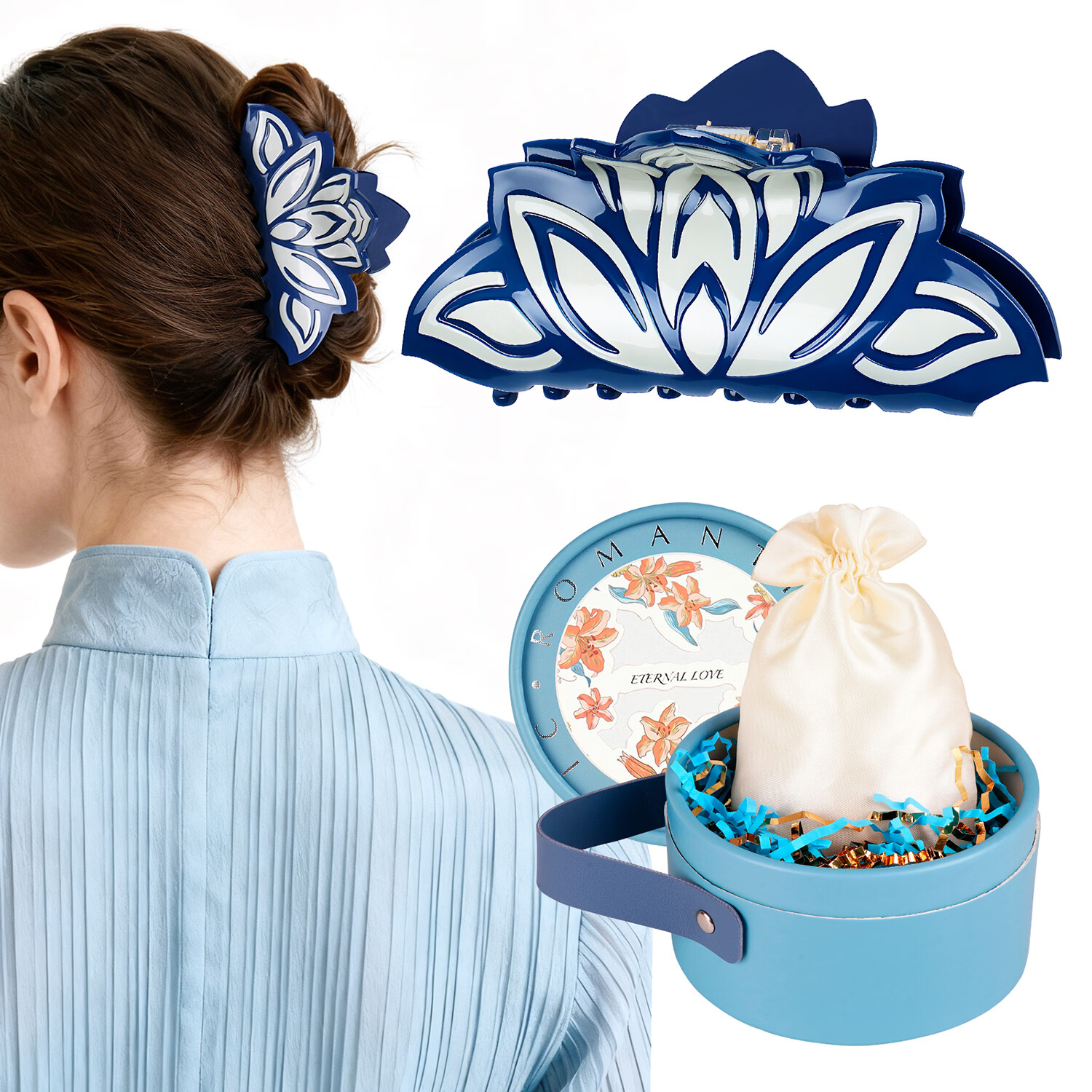 TOCESS国风青花瓷抓夹 蓝白撞色立体发夹 复古大尺寸发抓 礼盒装 莲花 1件套
