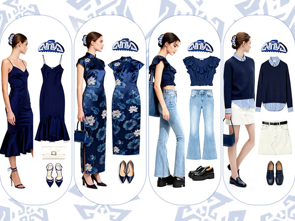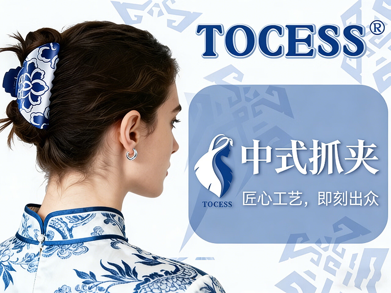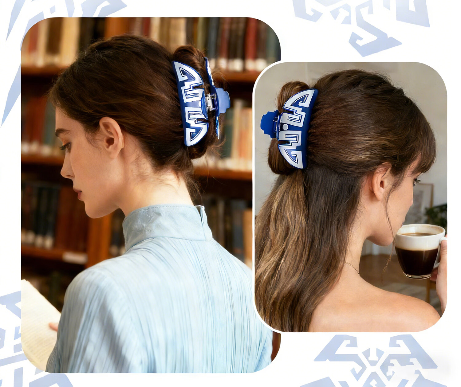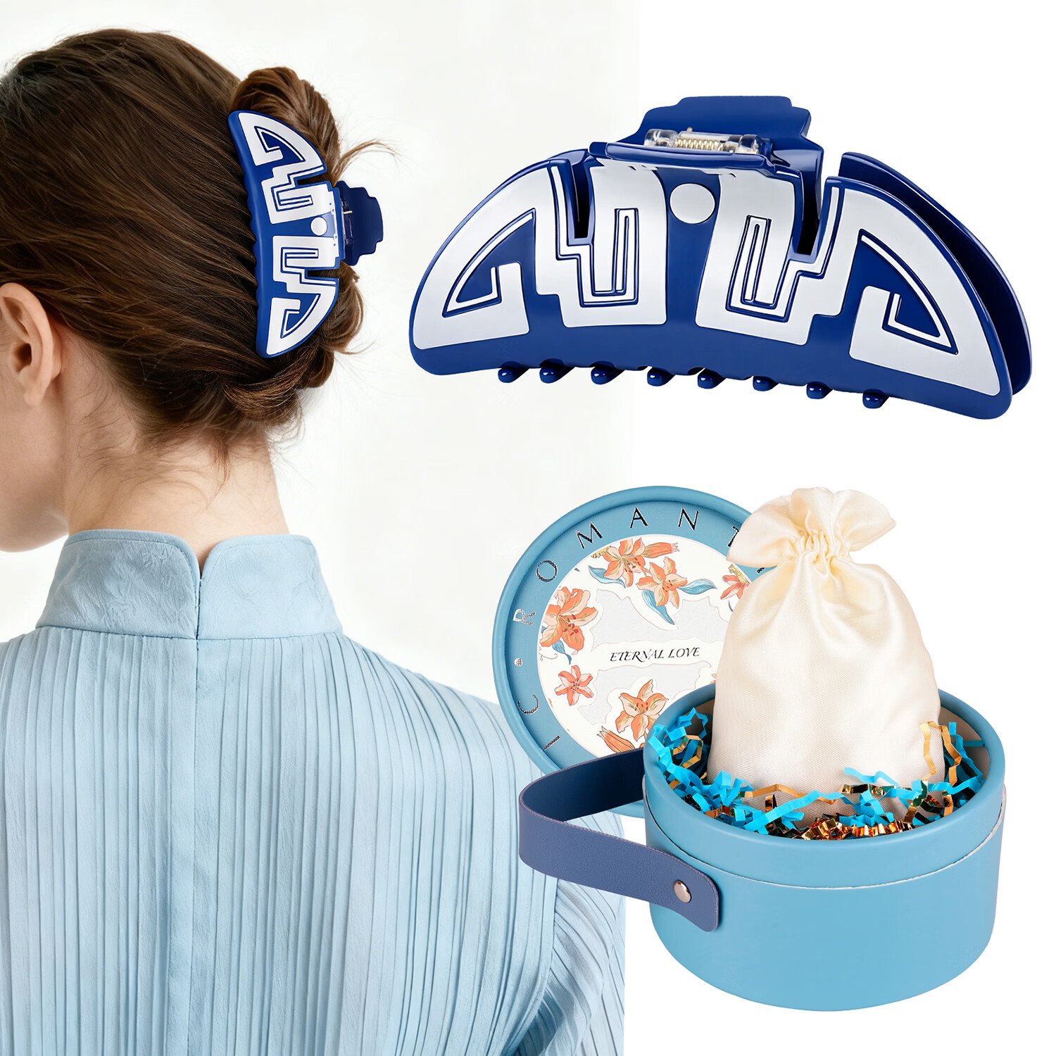 TOCESS国风青花瓷抓夹 蓝白撞色立体发夹 复古大尺寸发抓 礼盒装 古剑图 1件套