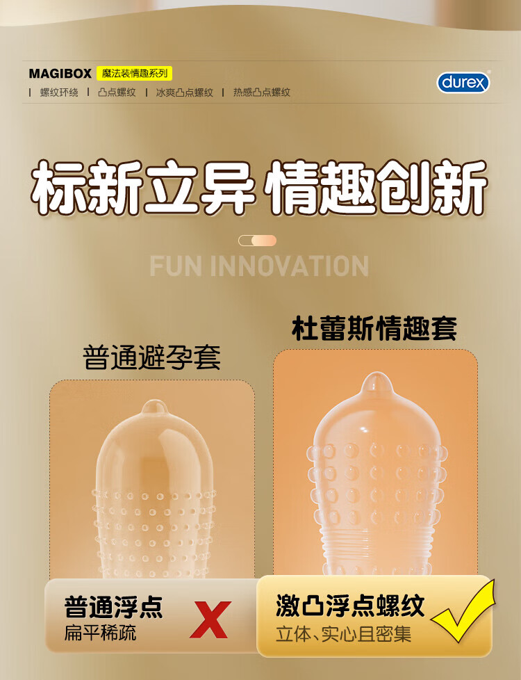 杜蕾斯(durex)魔法情趣避孕套狼牙大颗粒超强刺激凸点螺纹安全套持久超薄玻尿酸 情趣刺激体验【18只】魔法情趣18