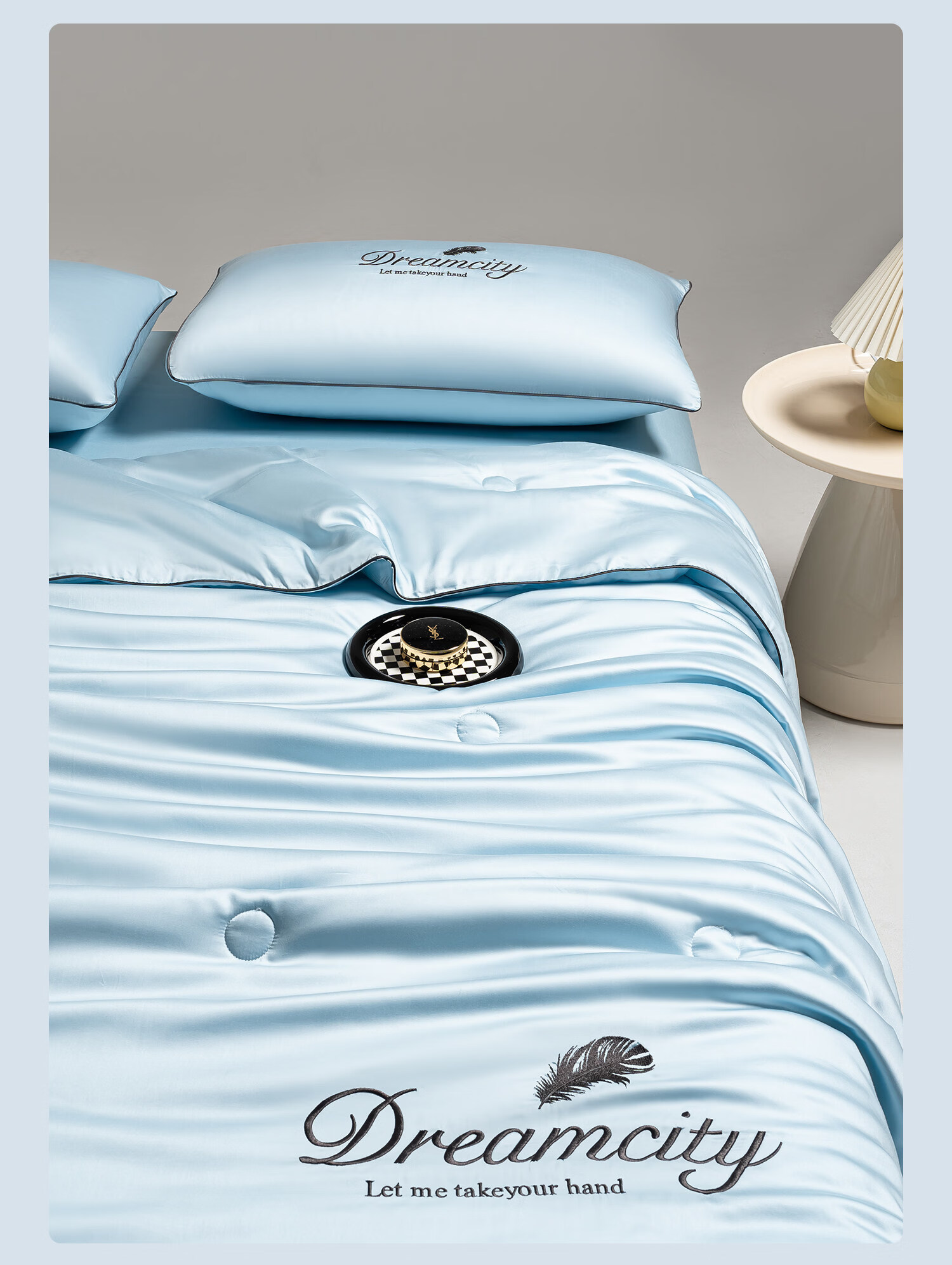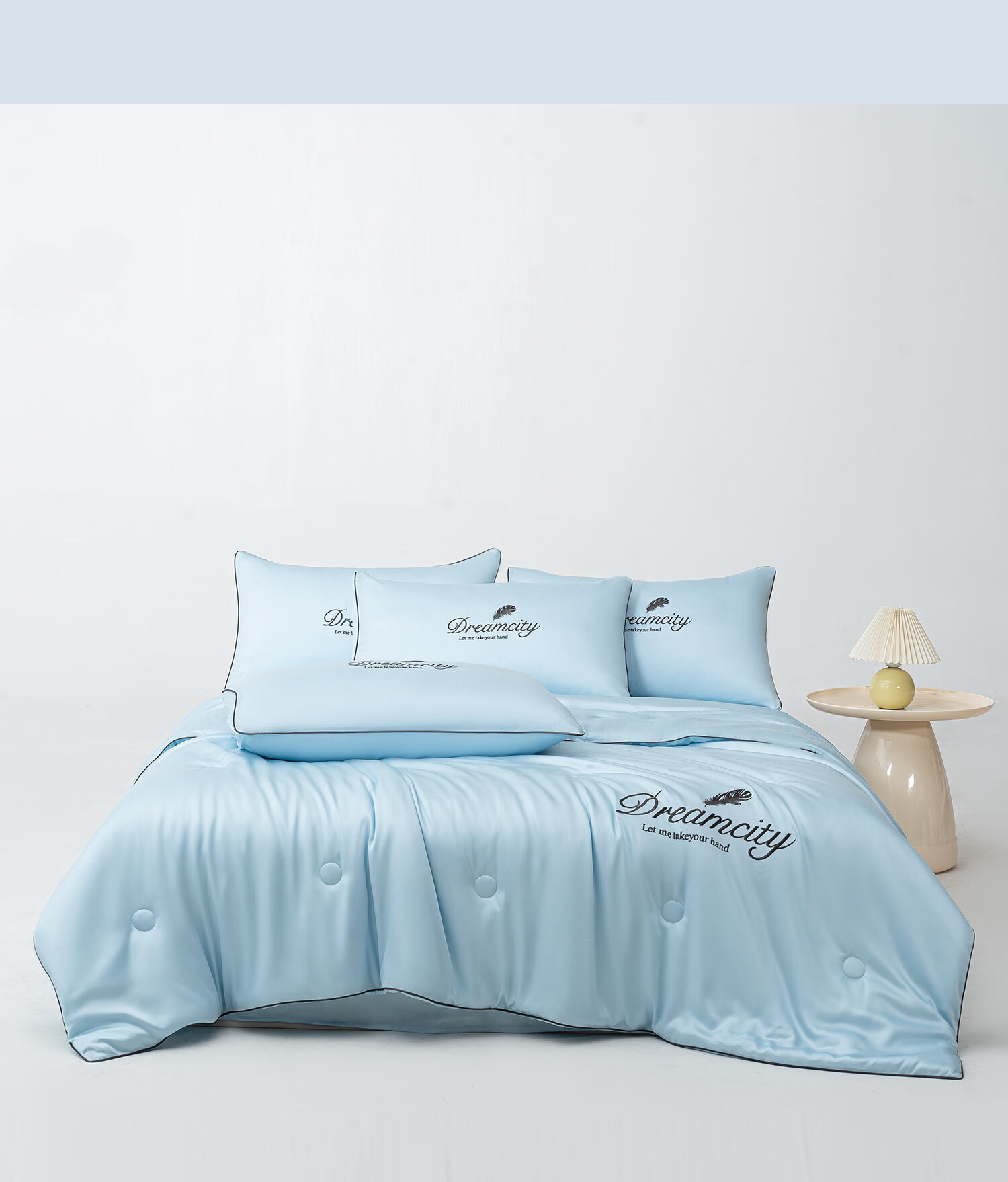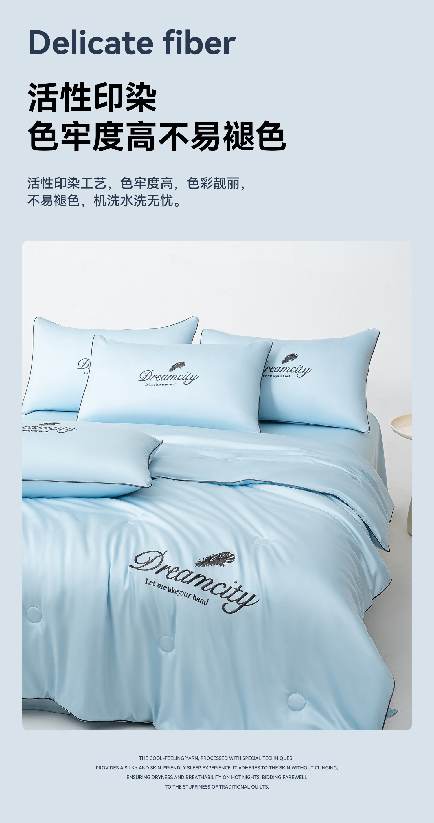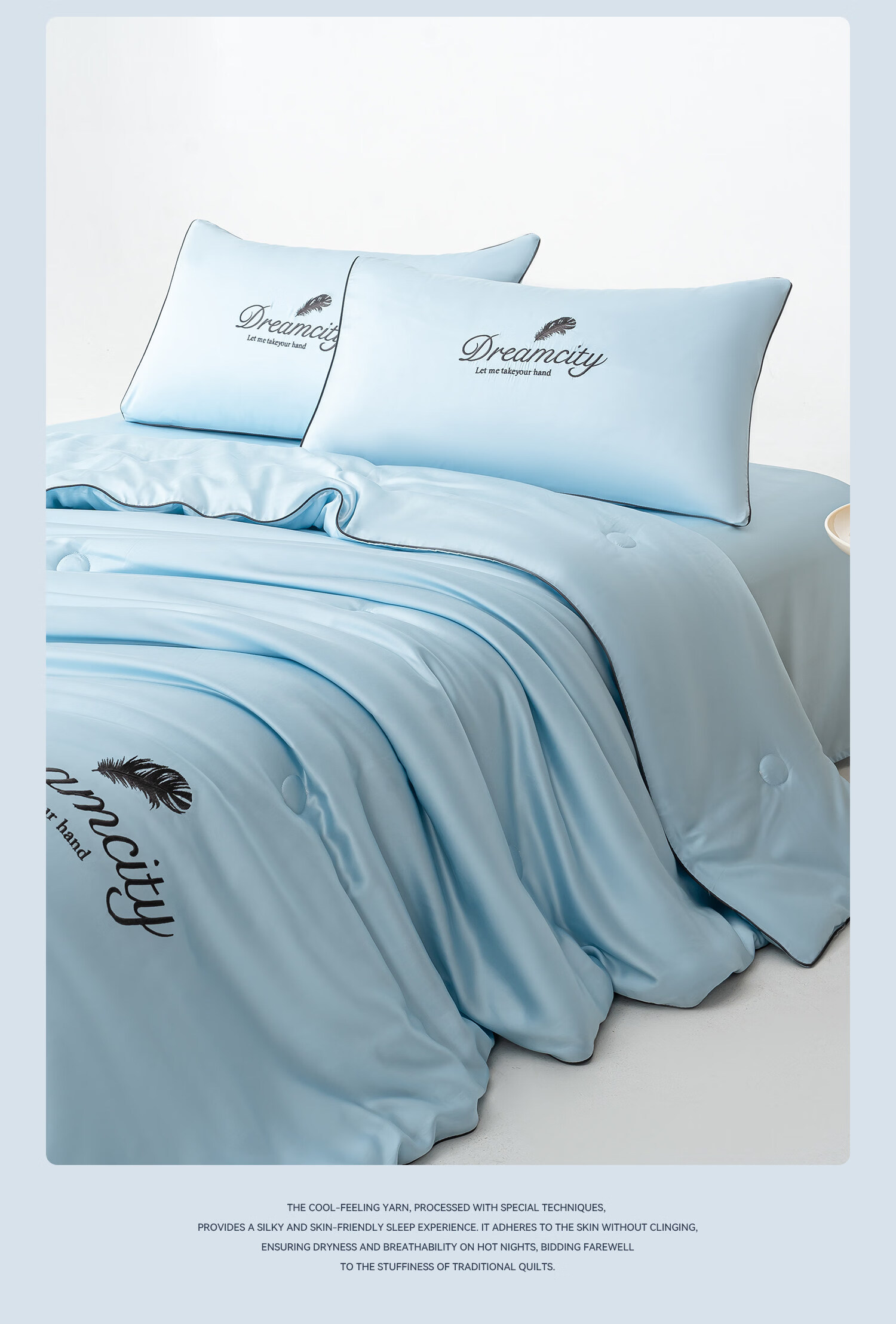 猫人(MiiOW)夏季凉感冰丝夏被空调被 可机水洗夏凉被四件套单人薄被子 刺绣-天空兰 单夏被:150*200cm