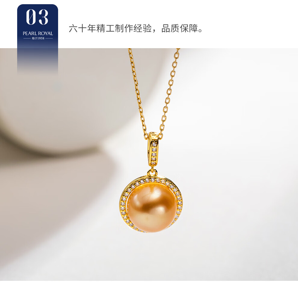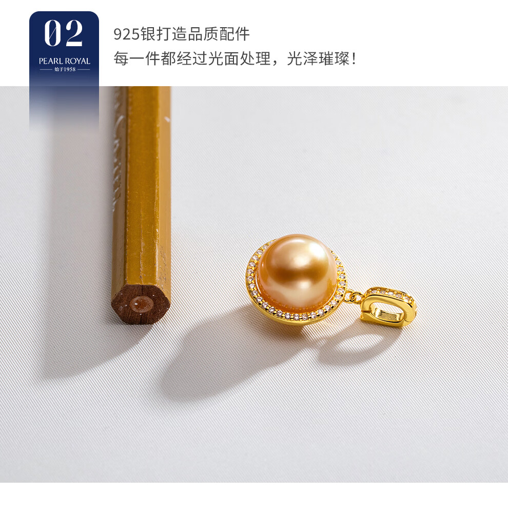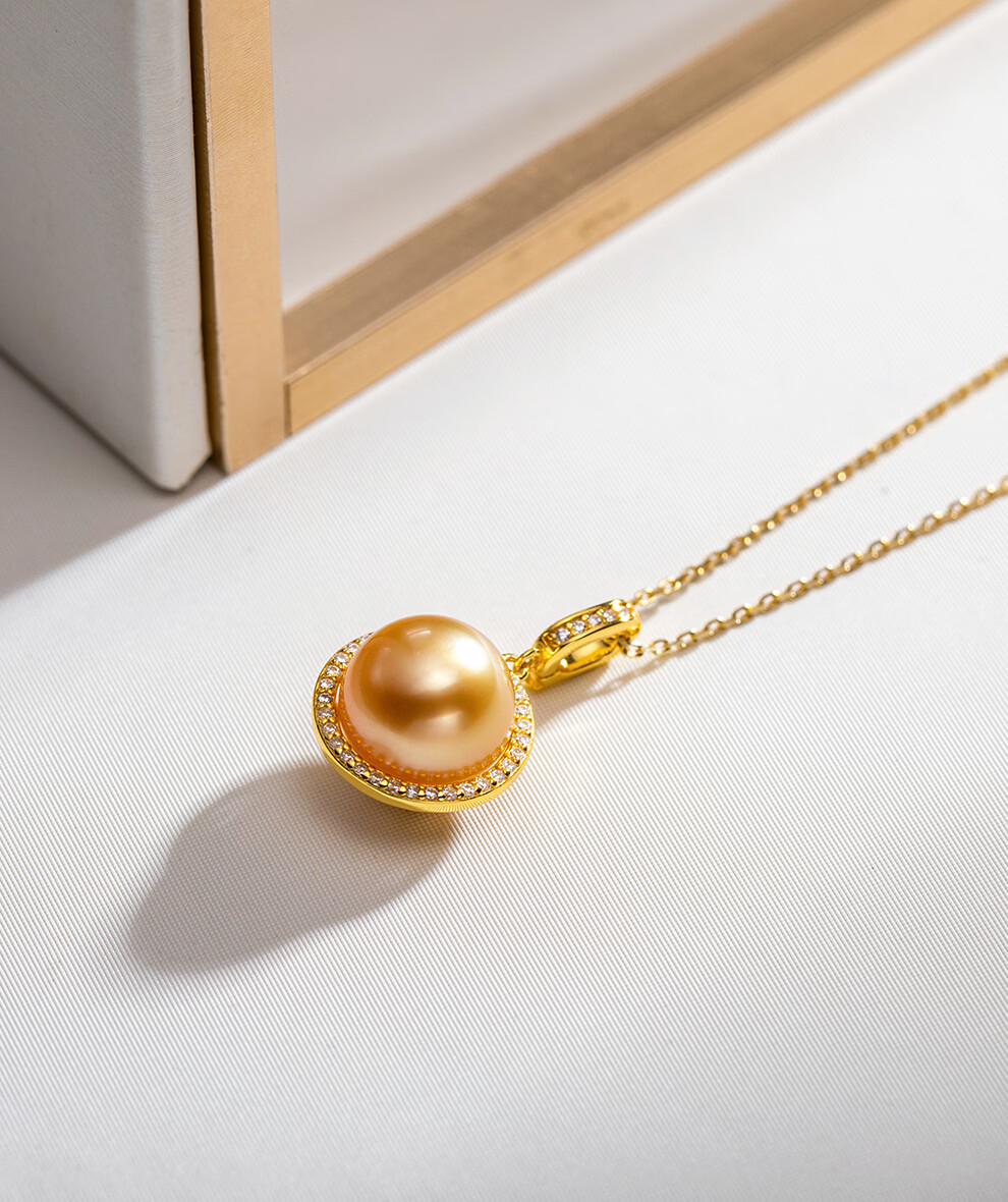 南珠宫垂雪925银淡水珍珠耳环强光圆形媲美澳白耳钩高级感新年礼物送礼 金色款 11.0-12.0mm