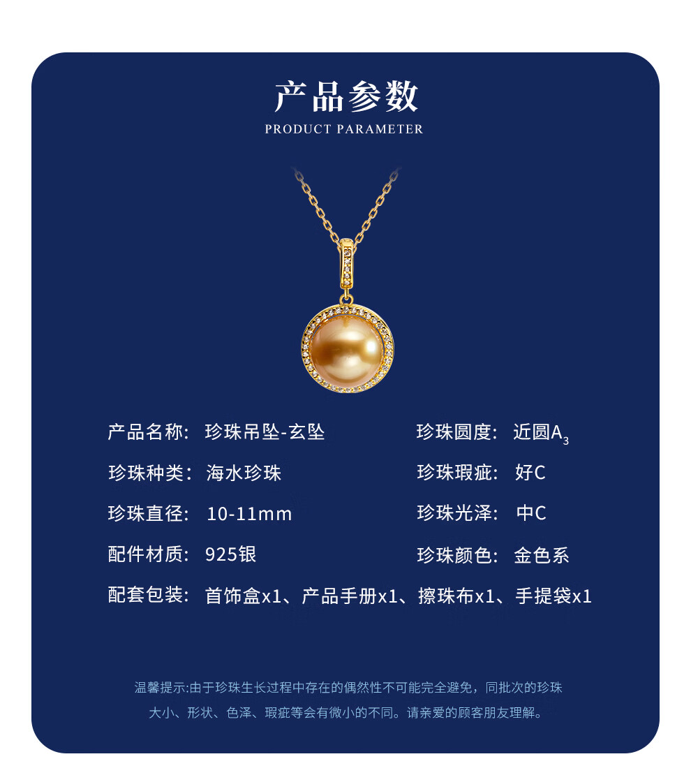 南珠宫玄坠925银海水珍珠吊坠南洋金珠项链精致典雅高级感生日礼物 大溪地黑珍珠吊坠 9.0-10.0mm
