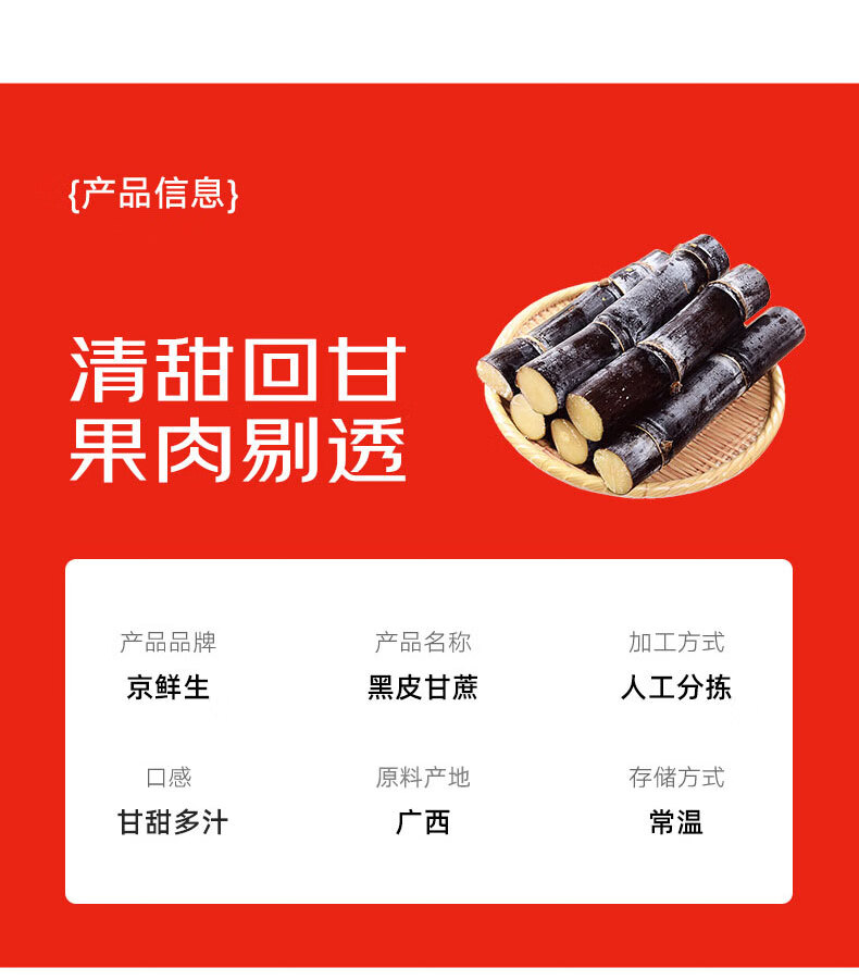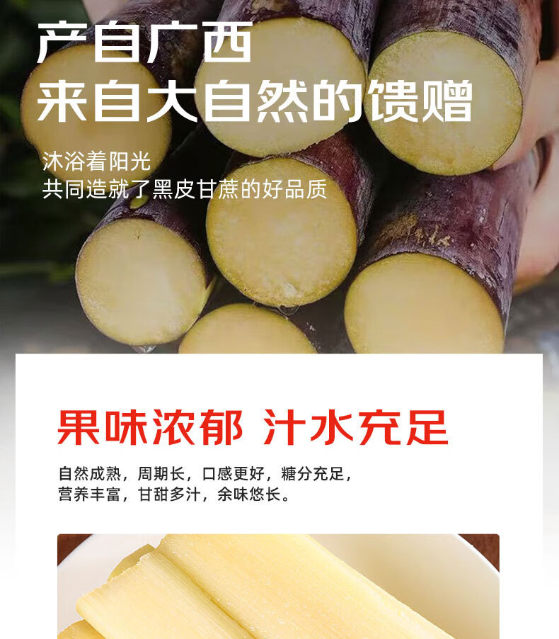 京鲜生 广西黑皮甘蔗净重5斤装 生鲜水果源头直发包邮