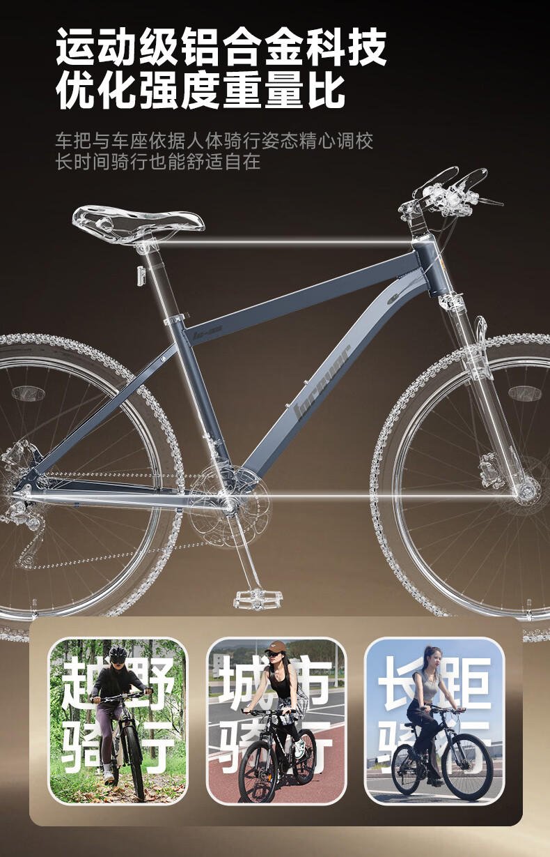 永久自行车成人山地车自行车学生男女铝合金变速公路自行车油碟单车 【钢架/全套轴承】摩天灰 24速 26寸【推荐155-185cm】