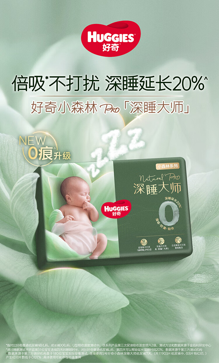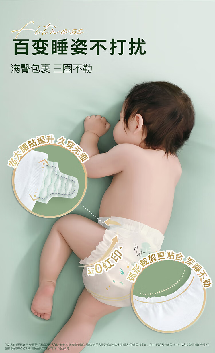 好奇(Huggies)深睡大师纸尿裤NB60(5kg以下)尿不湿小森林Pro【新生顶配更深睡】
