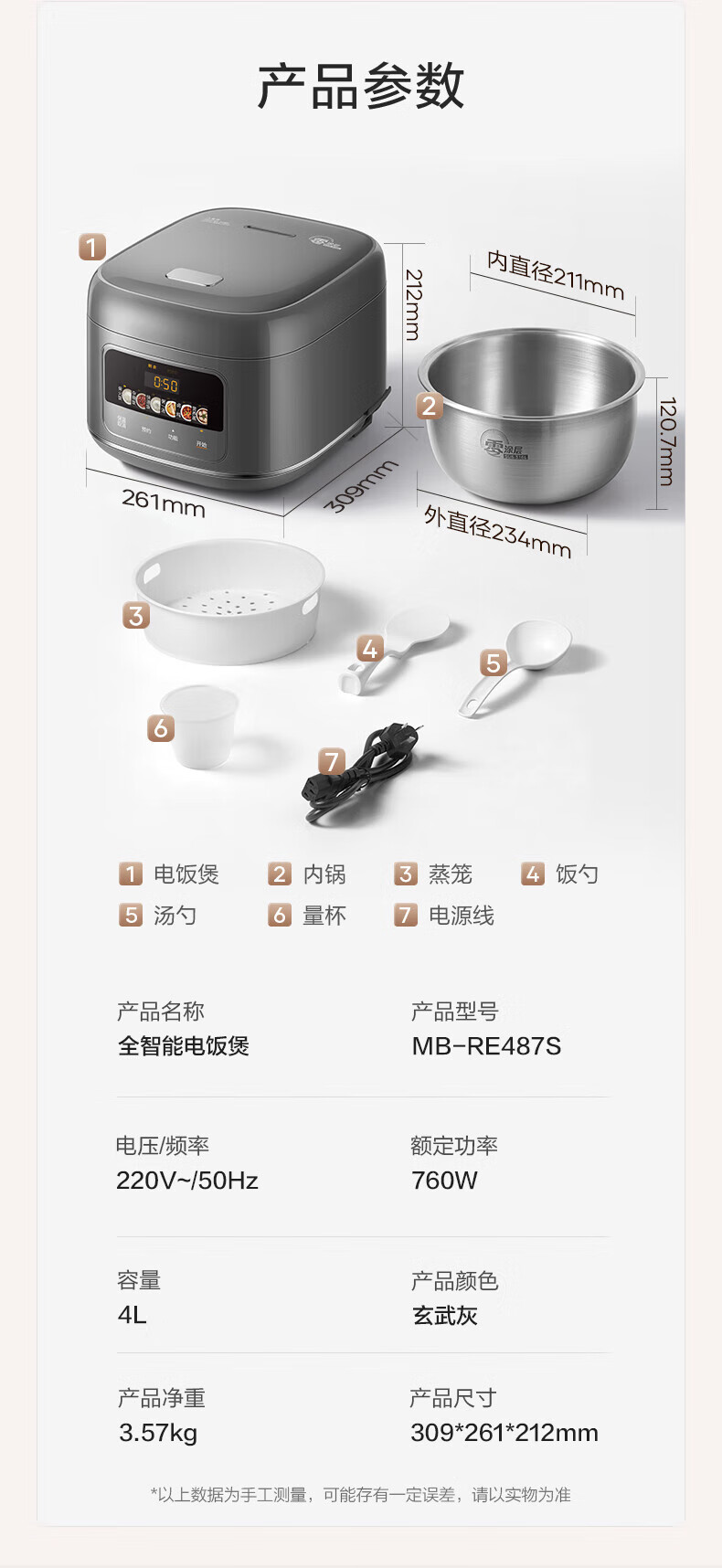 美的(Midea)电饭煲大布丁0涂层电饭锅4升316L不锈钢内胆3-4人家用多功能无涂层微压智能预约RE487S品牌官方