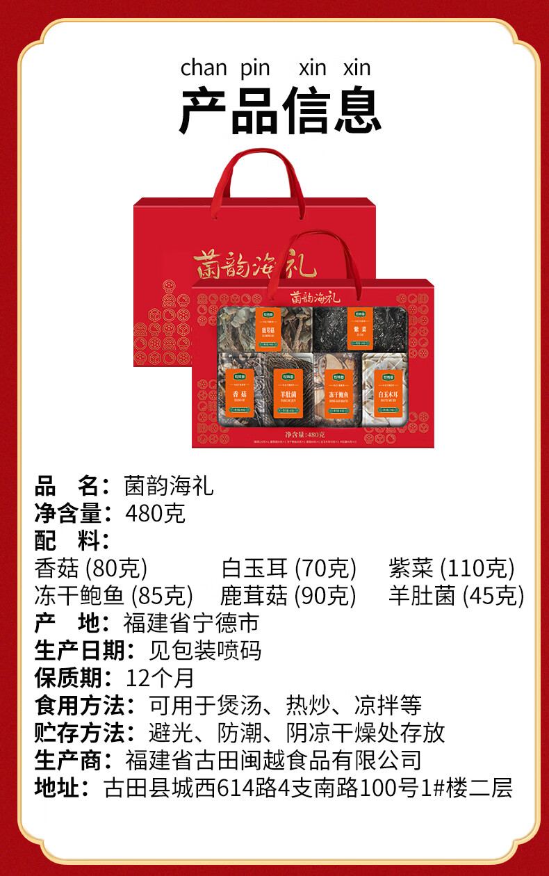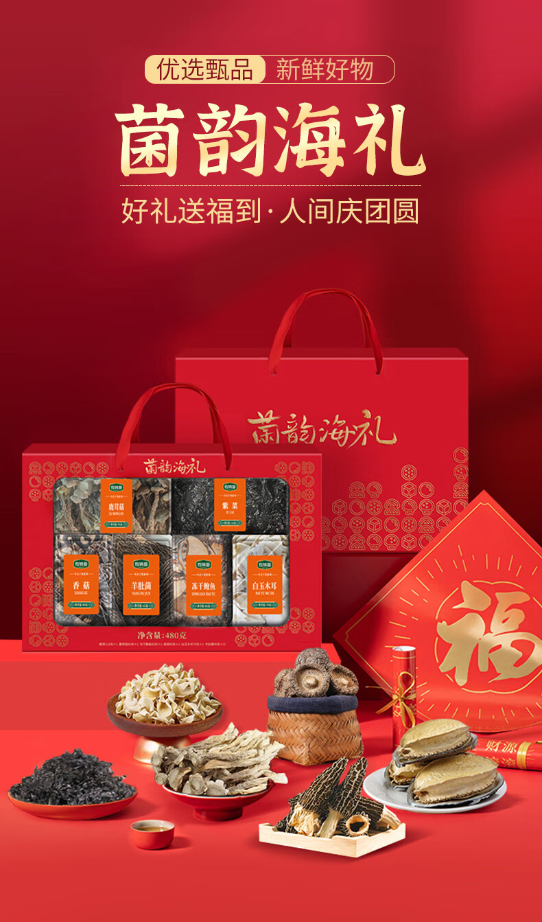 珍锦荟【福建产地】菌韵海礼480g鲍鱼羊肚菌年货企业送长辈礼盒源头直发