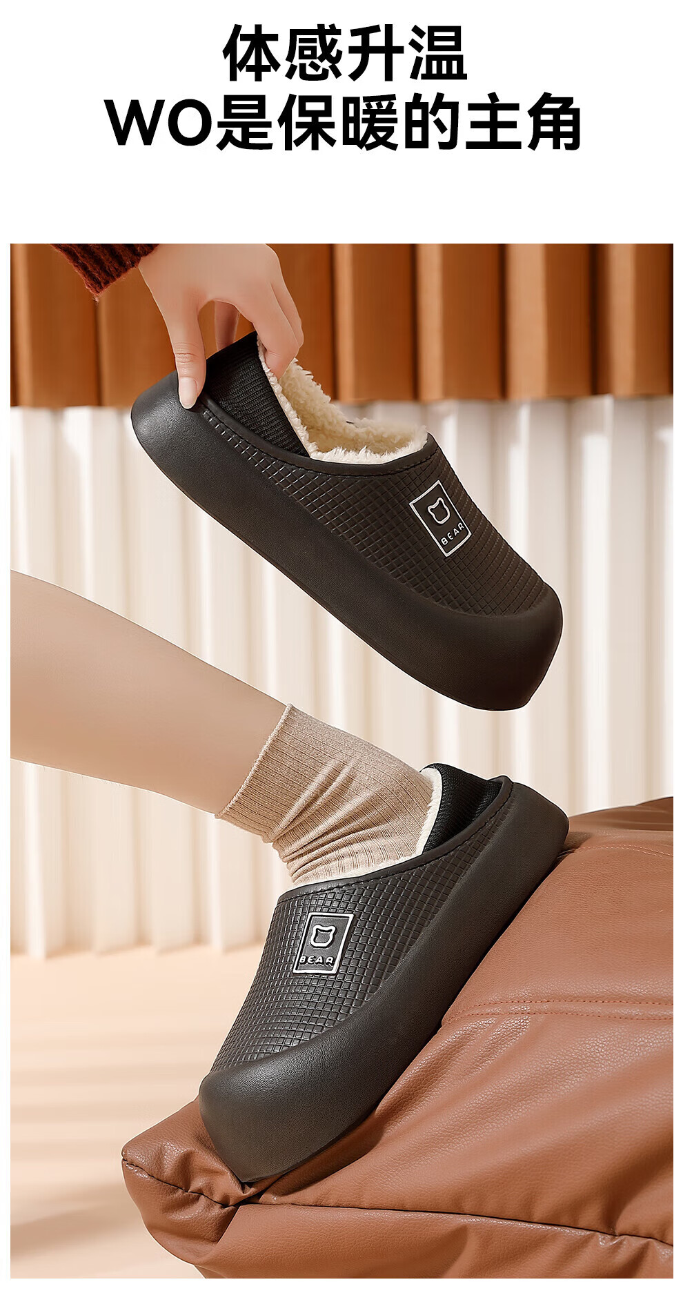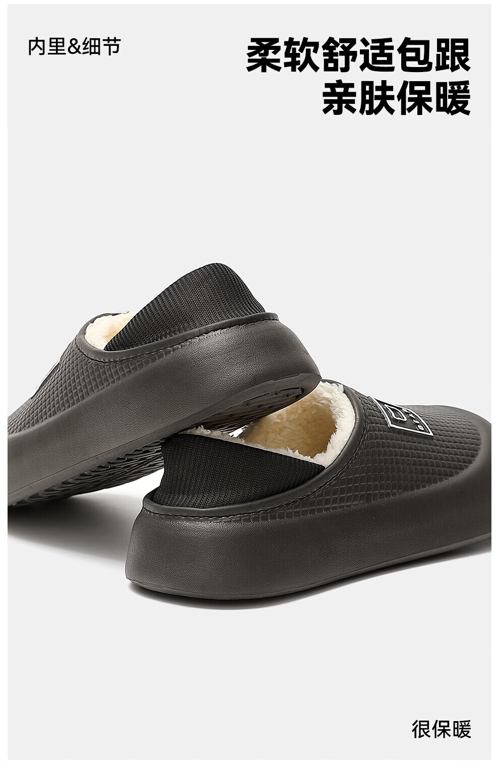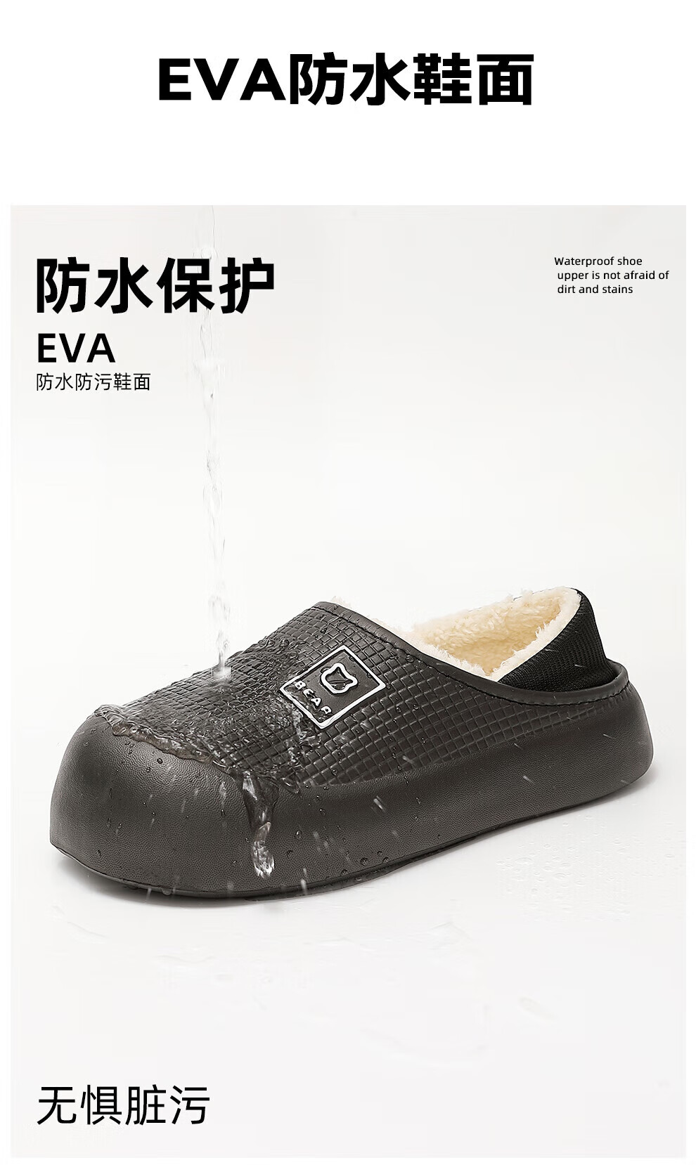 FZT户外穿防水棉拖鞋女士厚底秋冬季防滑加绒保暖情侣懒人棉鞋男士 黑色【保暖升级/三代抗菌】 44-45 适合43-44
