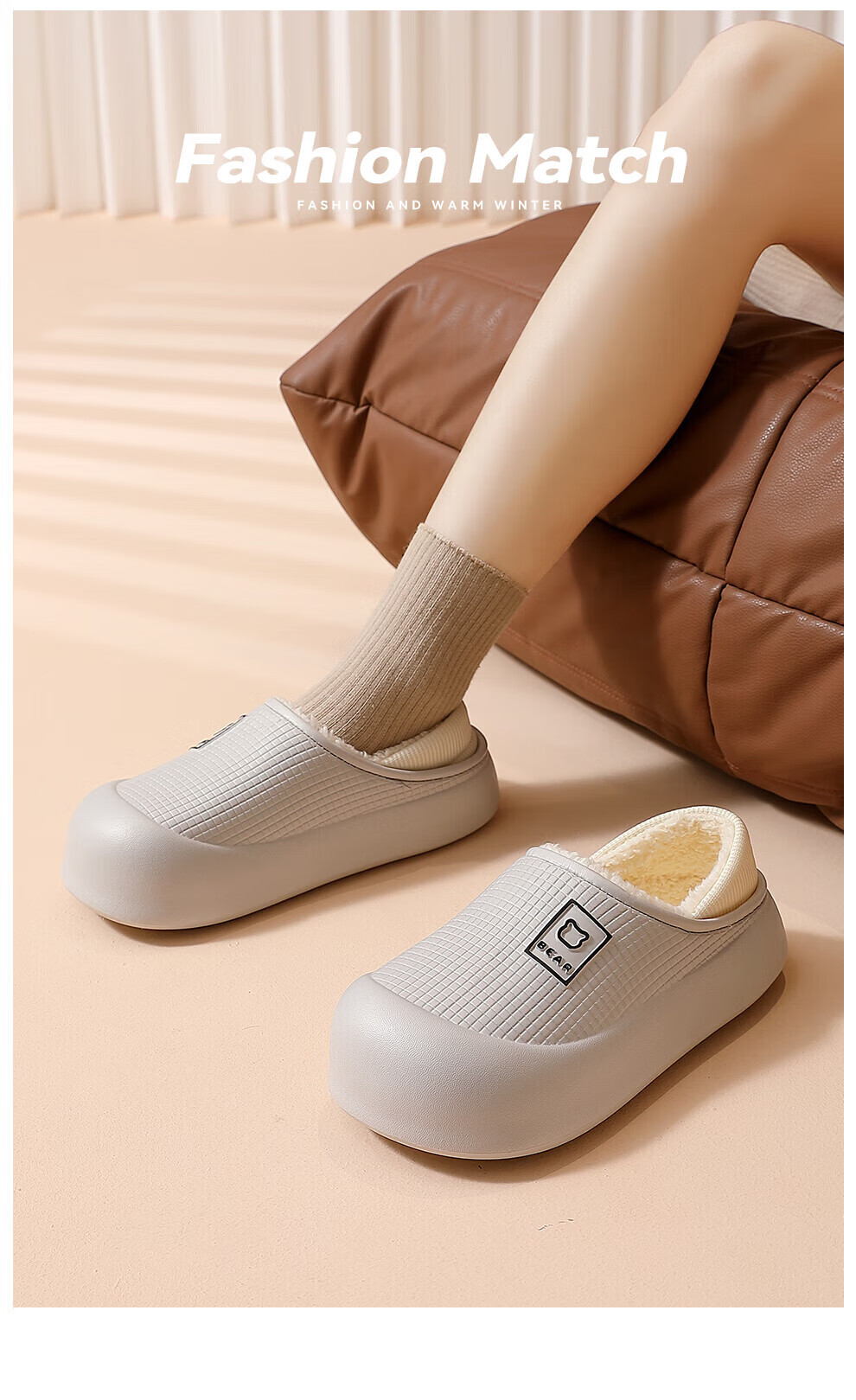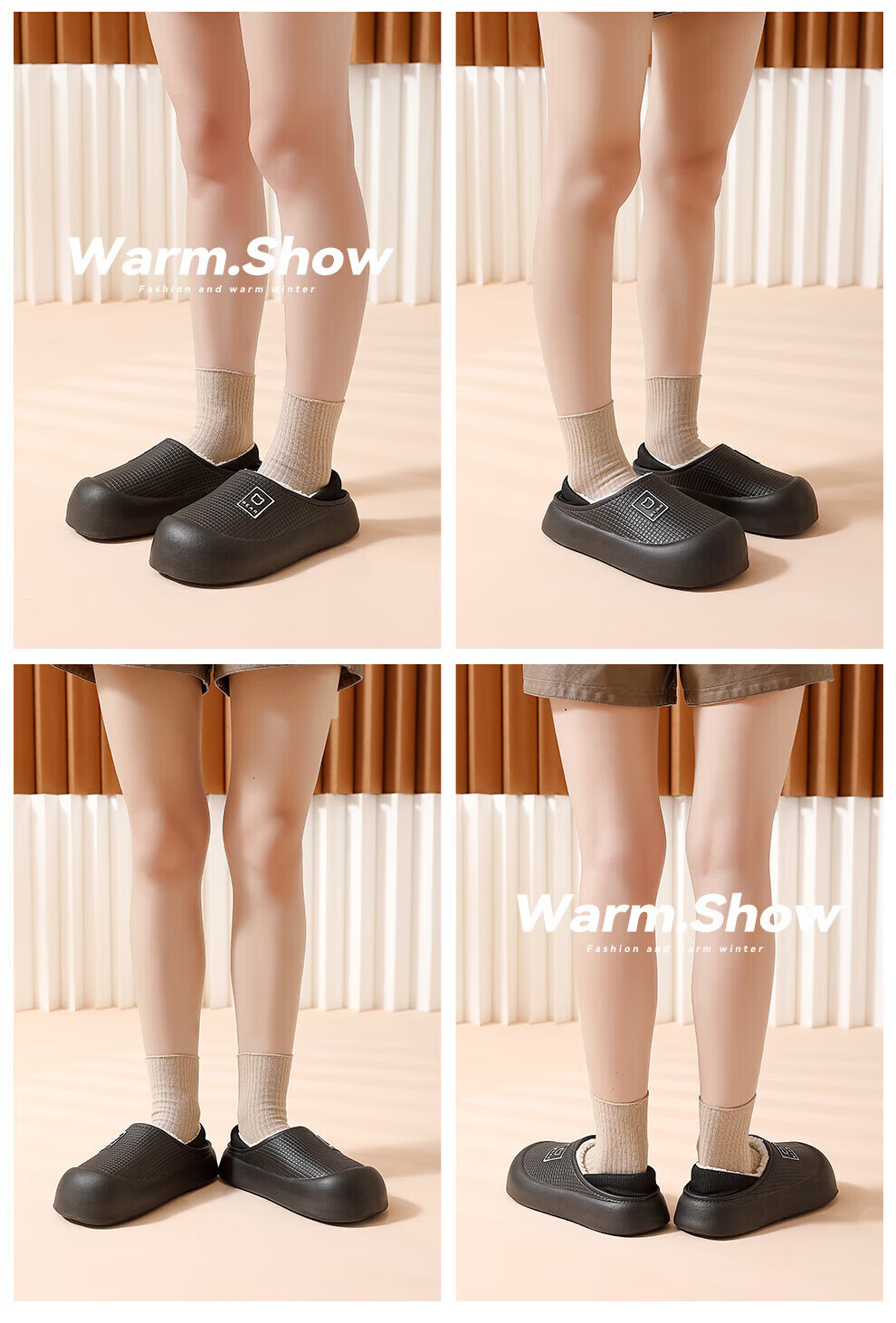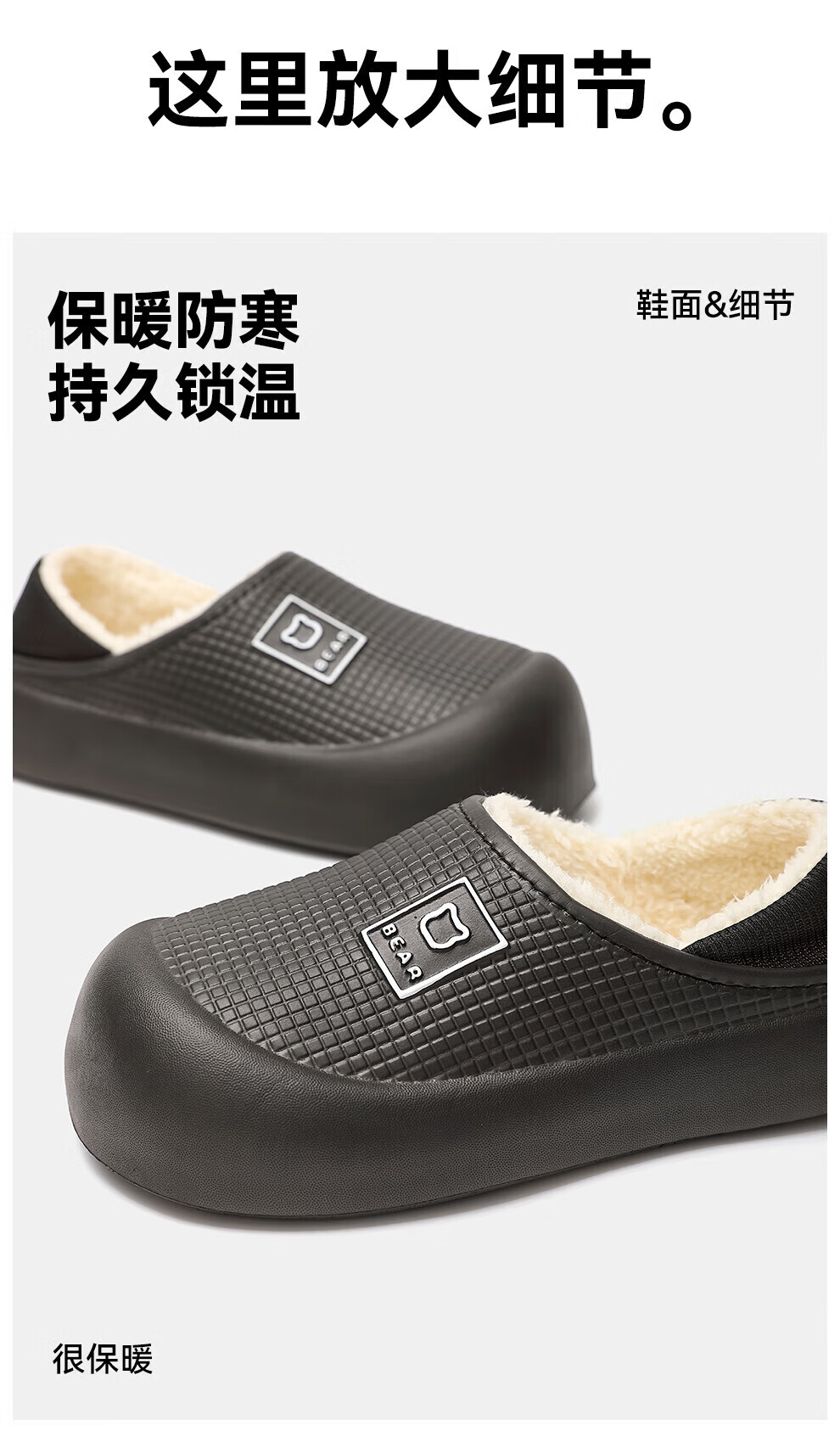 FZT户外穿防水棉拖鞋女士厚底秋冬季防滑加绒保暖情侣懒人棉鞋男士 黑色【保暖升级/三代抗菌】 44-45 适合43-44