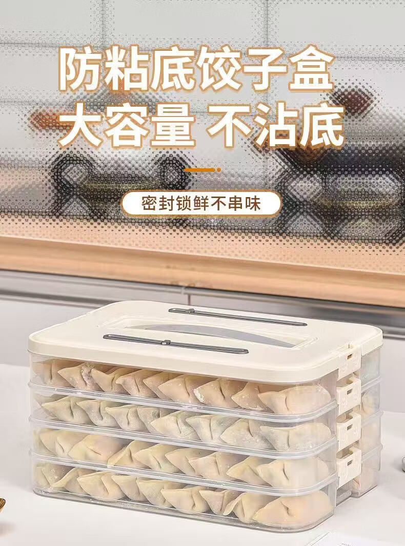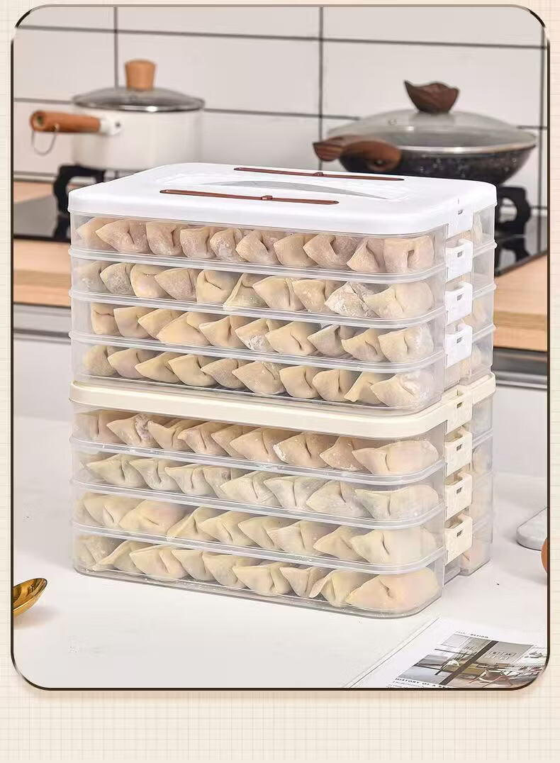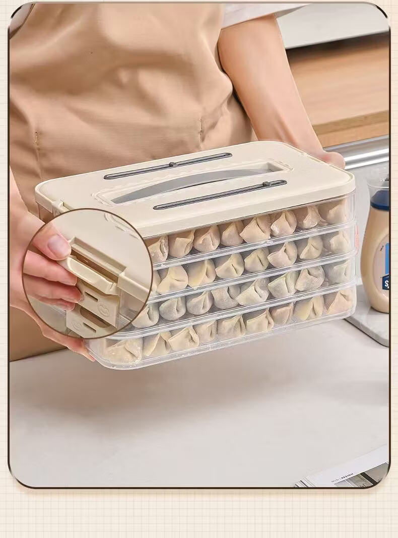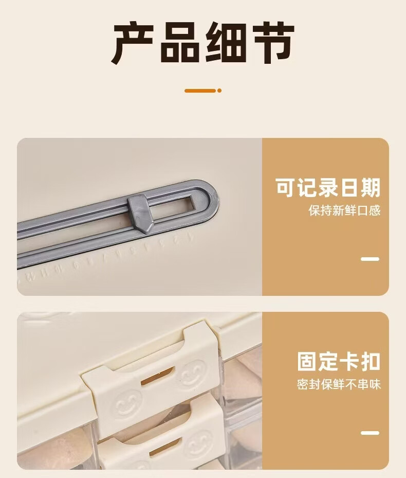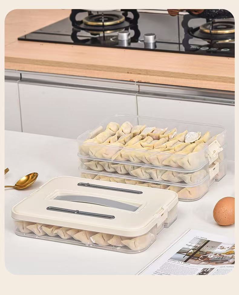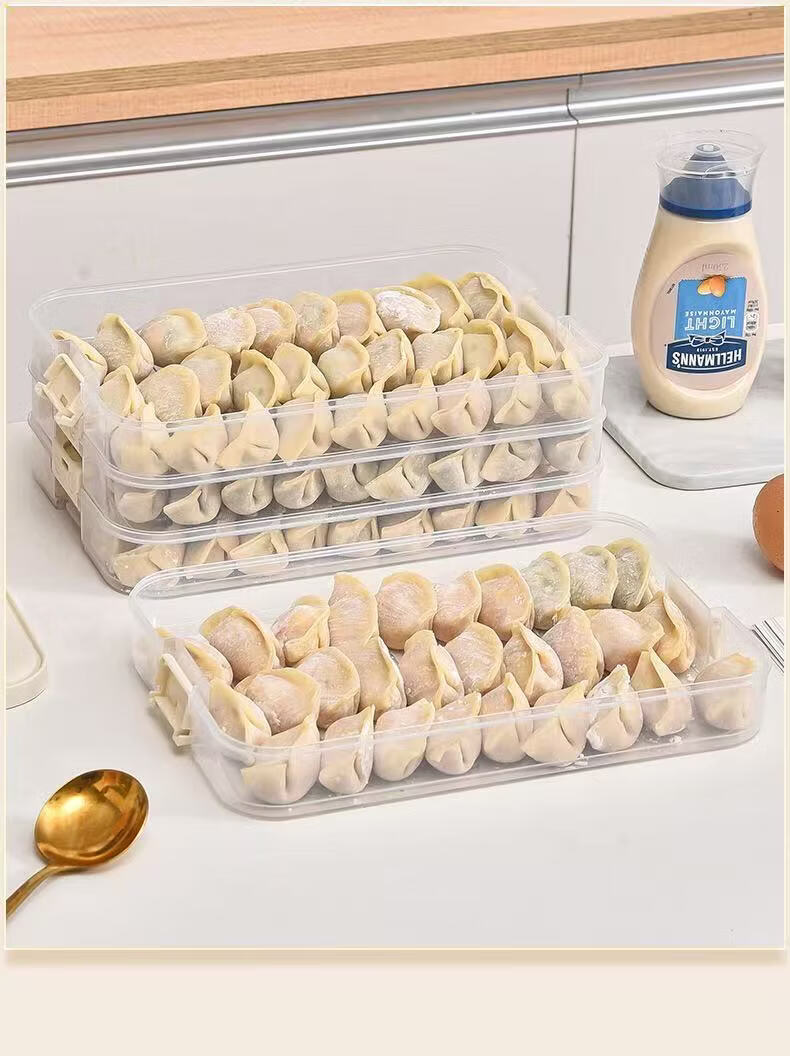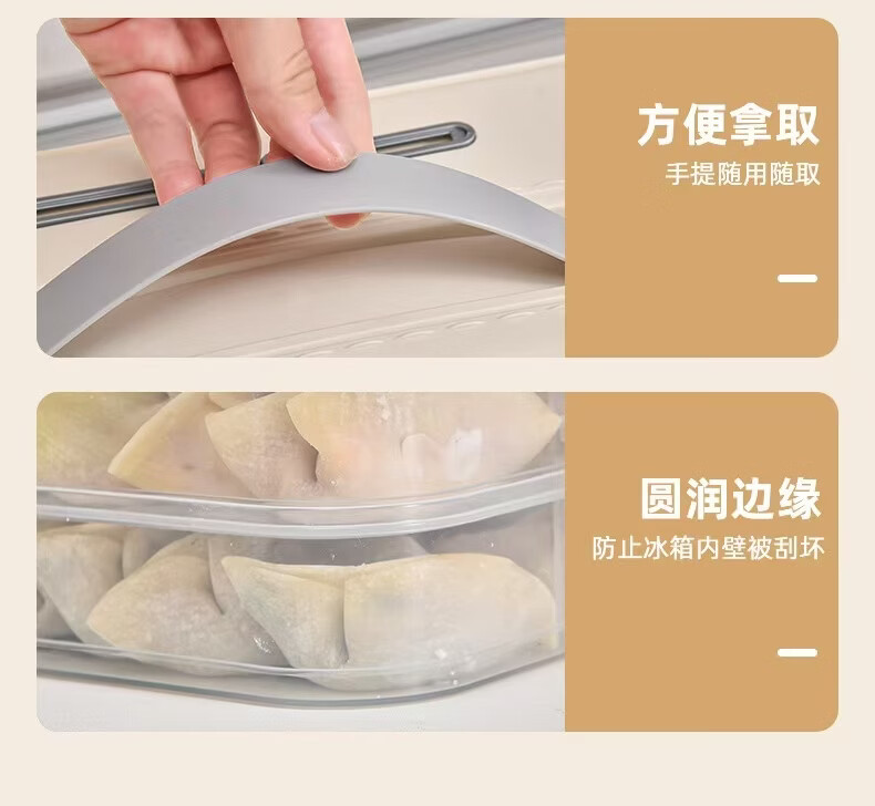 洋臣食品级饺子盒家用馄饨水饺冷冻盒专用多层保鲜盒厨房冰箱收纳盒 白色奶白色 2层 【随机发货】