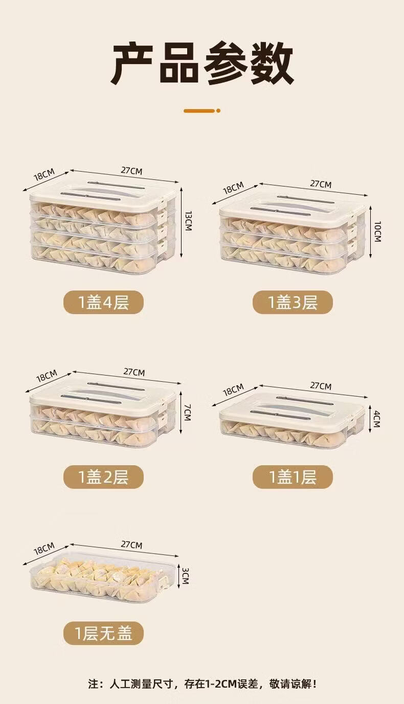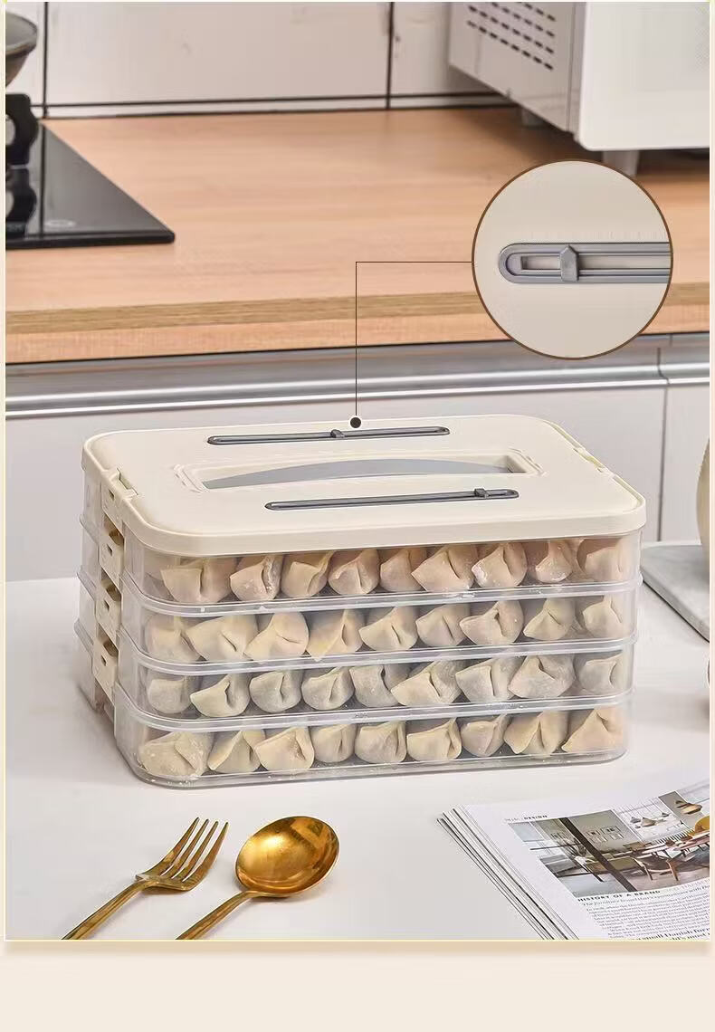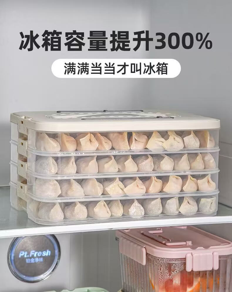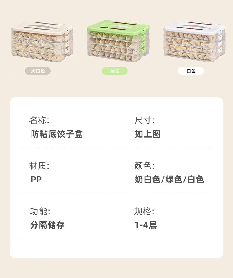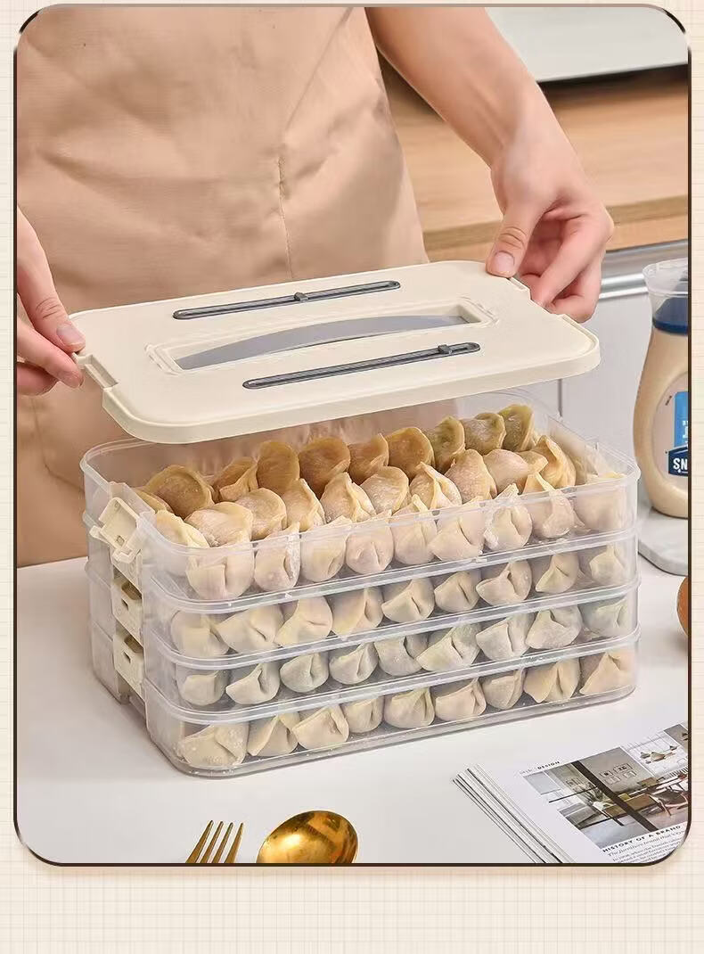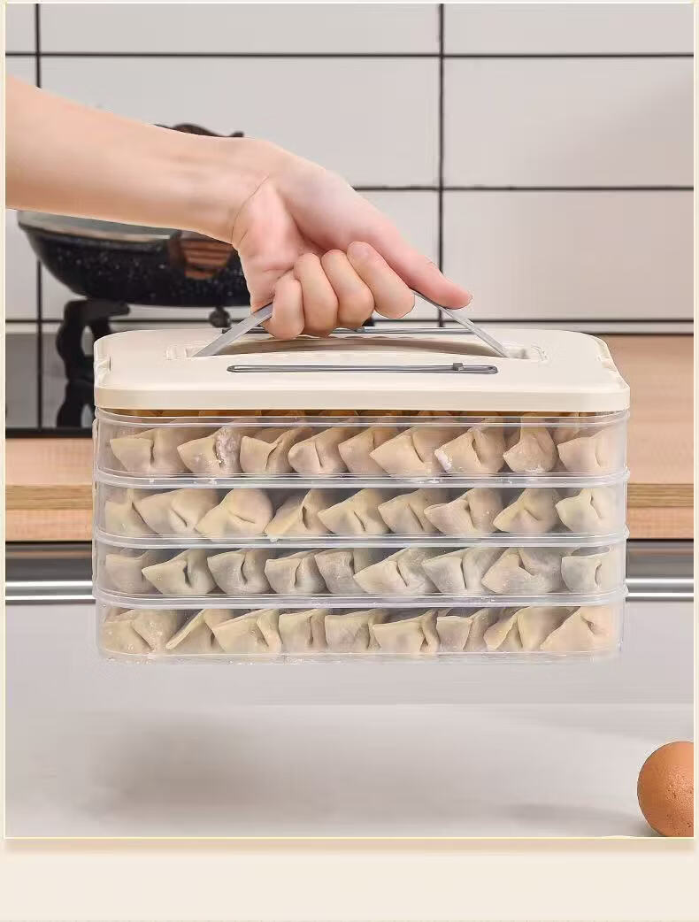 洋臣食品级饺子盒家用馄饨水饺冷冻盒专用多层保鲜盒厨房冰箱收纳盒 白色奶白色 2层 【随机发货】