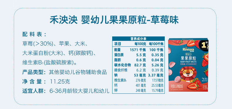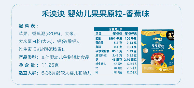 禾泱泱婴幼儿果果原粒香蕉味11.25g高钙宝宝零食小巧练抓握6月+