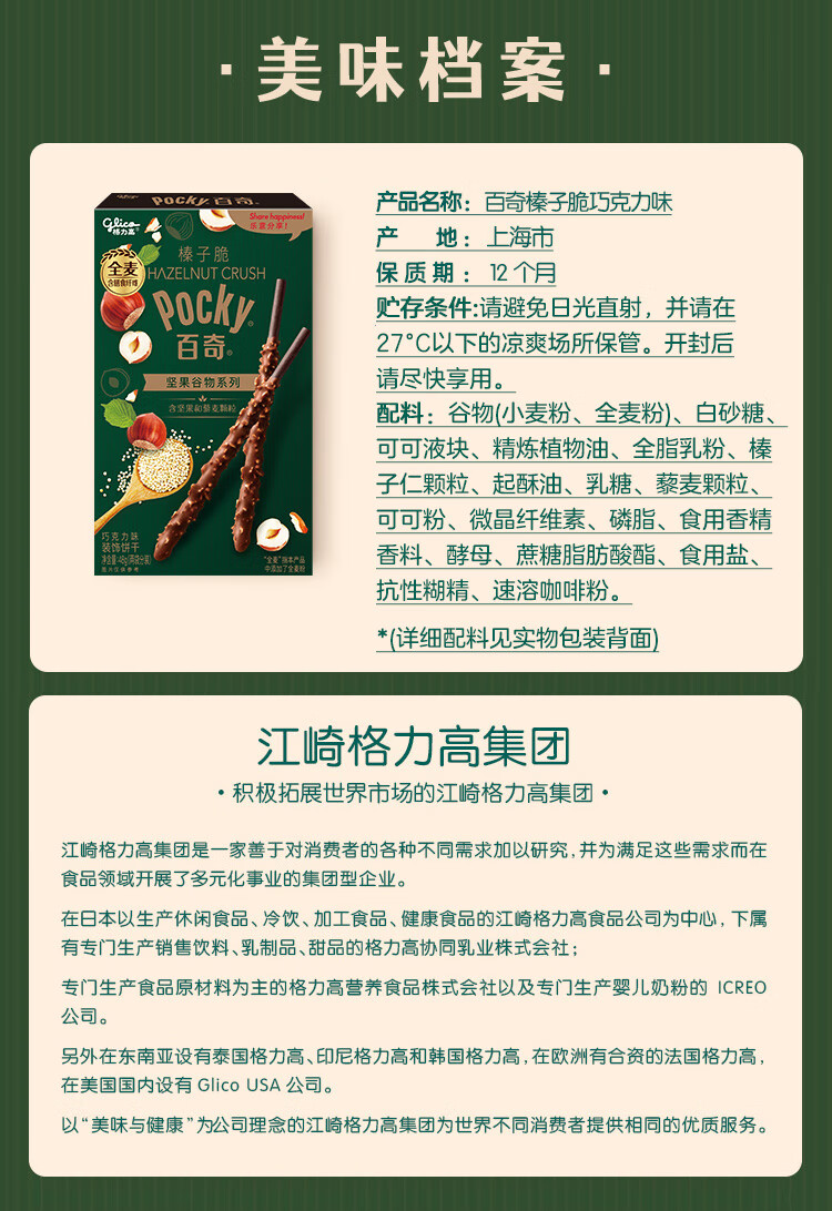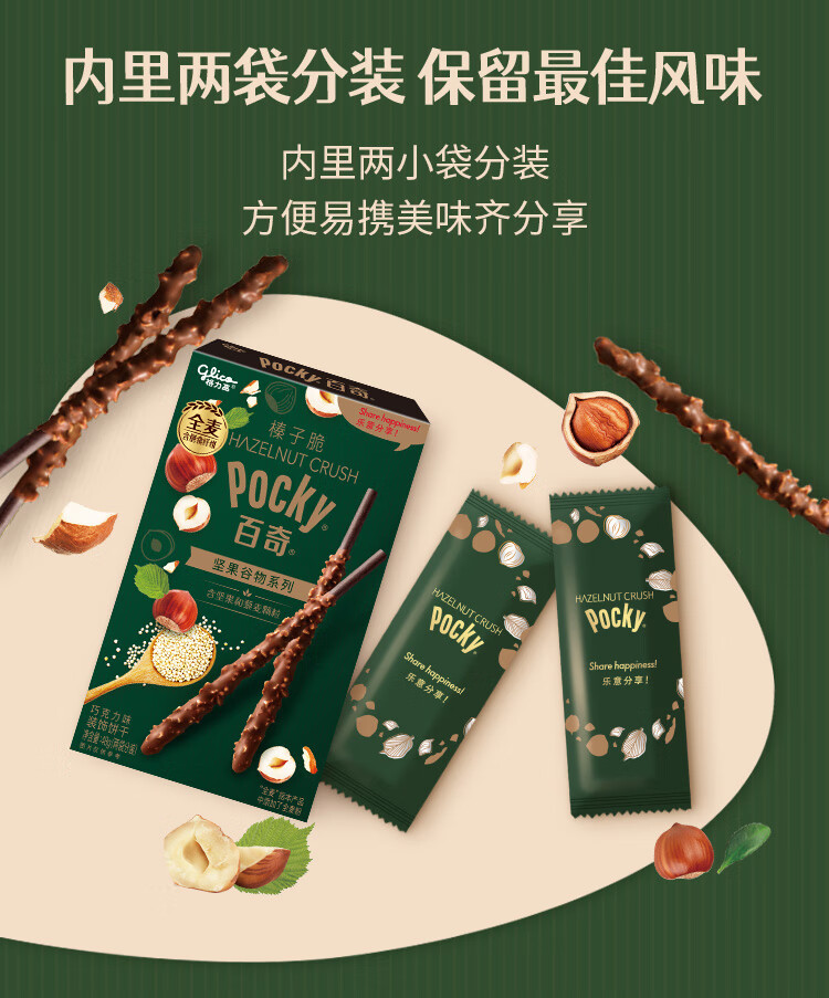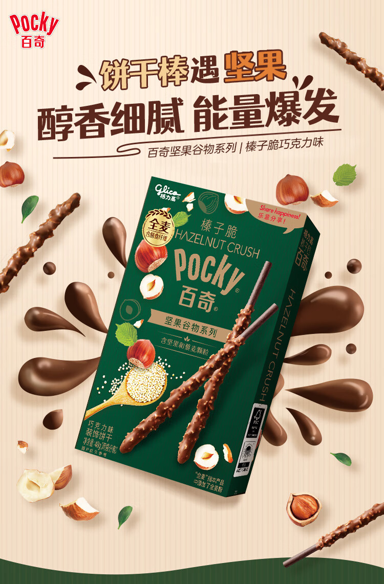 格力高(Glico)【刘宪华推荐】百奇坚果谷物系列 榛子脆巧克力味48g*1盒