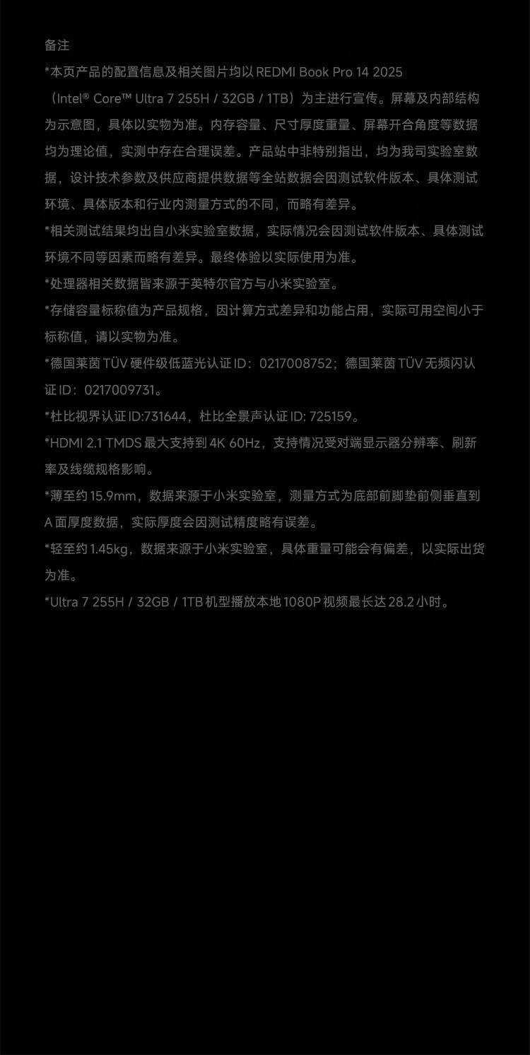小米(MI)【直播间领500券】笔记本电脑 红米REDMI Book Pro 14 2025轻薄本高性能酷睿2代Ultra5 32G 1T